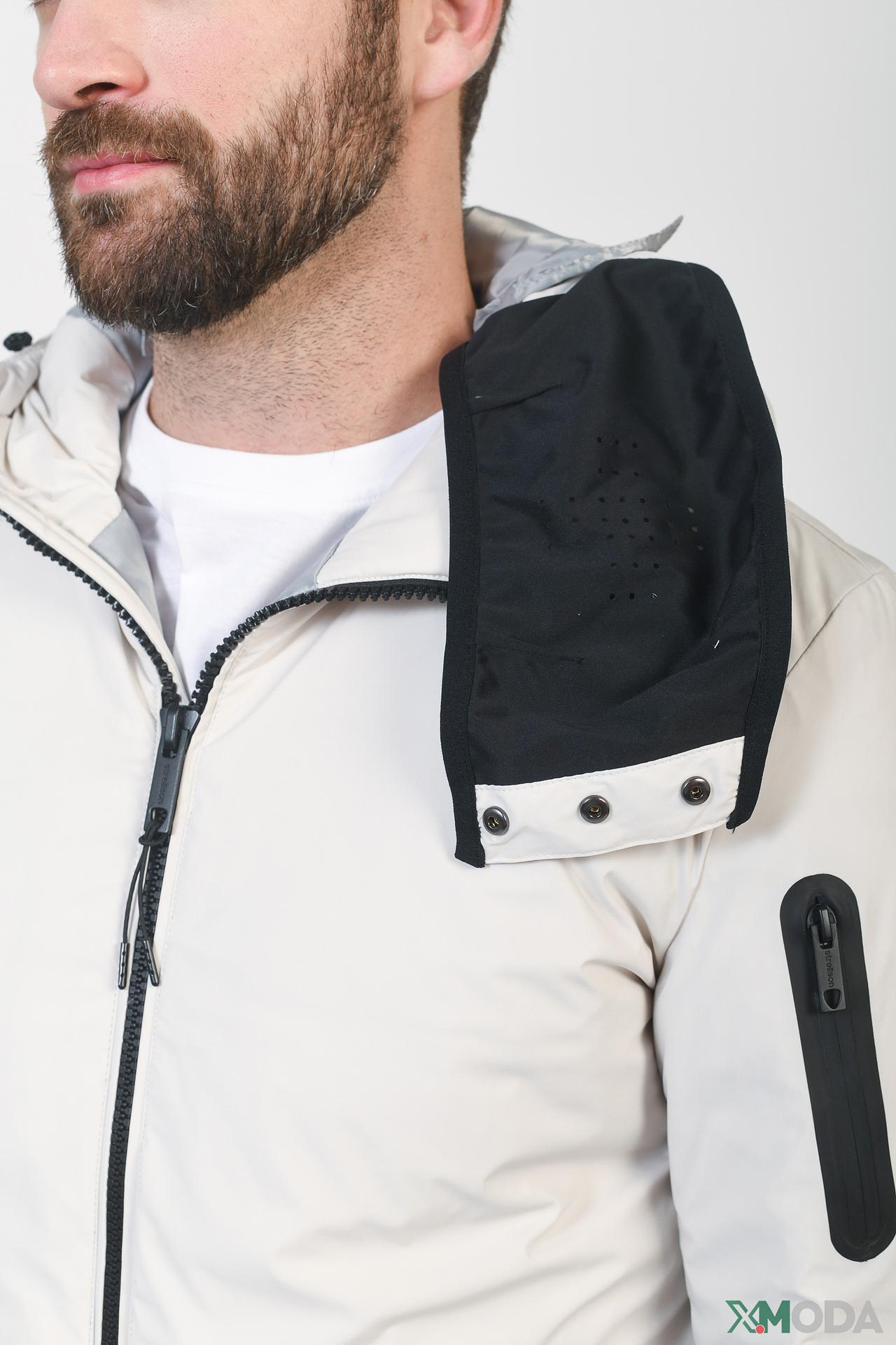Куртка Strellson светло-бежевая с черными молниями и капюшоном