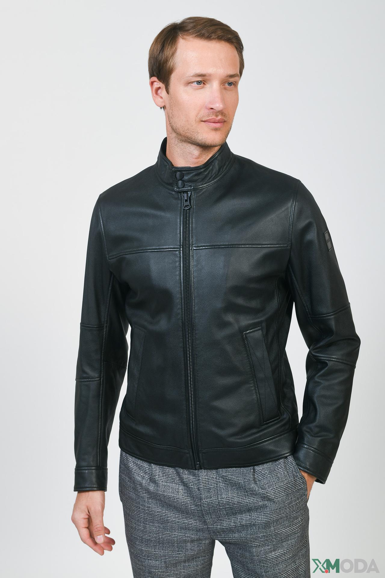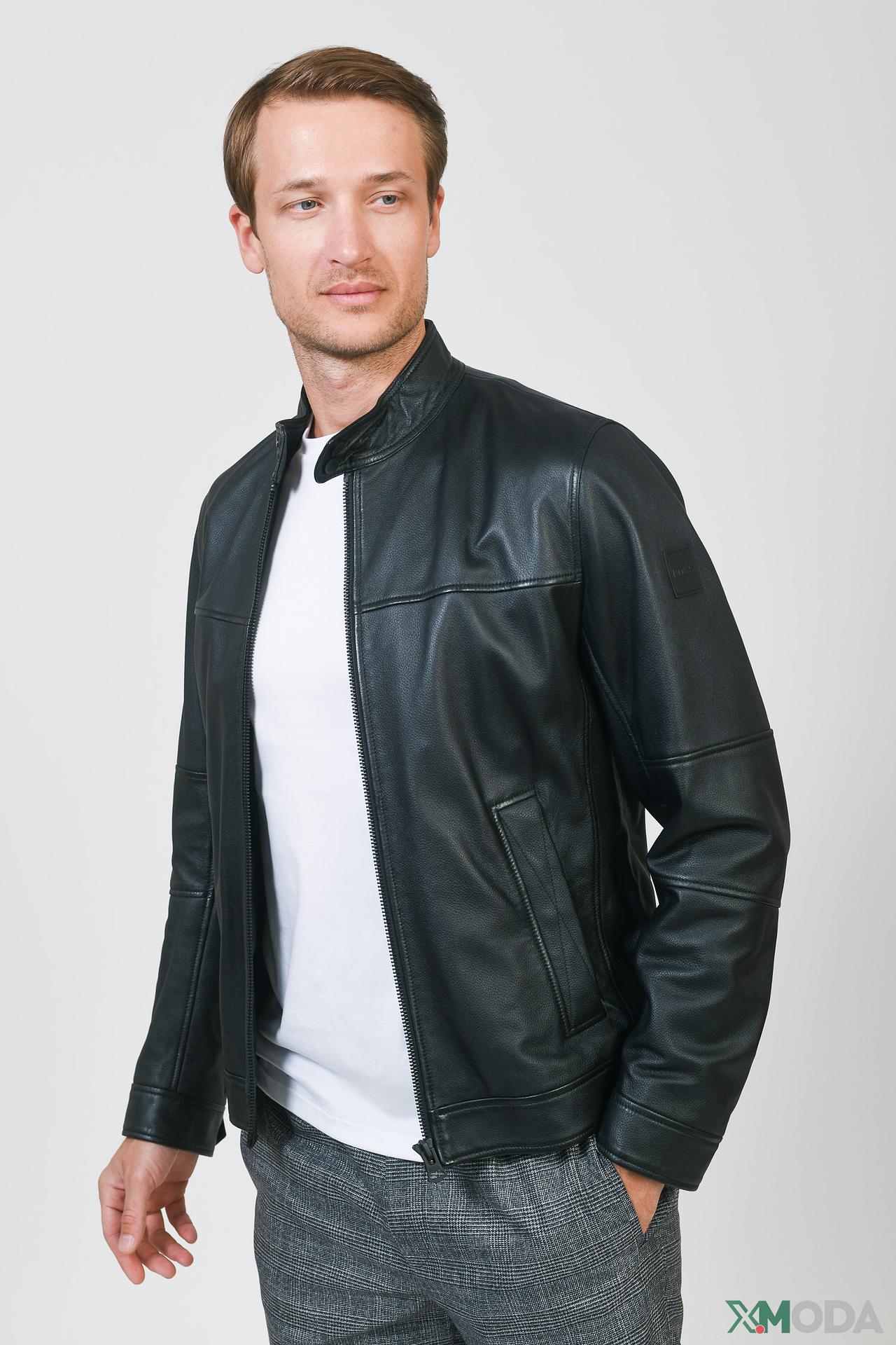 Куртка мужская черного цвета от бренда Boss. Модель выполнена приталенным фасоном. Изделие дополнено округлым воротом стойка с заклёпками, застежка молния, втачными, длинными рукавами с манжетами на заклепки, передними кокетками, боковыми карманами, задней кокеткой, средним швом и рельефами, выходившие из проймы рукавов. Низ задней части куртки дополнен эластичной лентой. Состав: 100% кожа. Изделии из натуральной кожи всегда создают трендовые образы.
