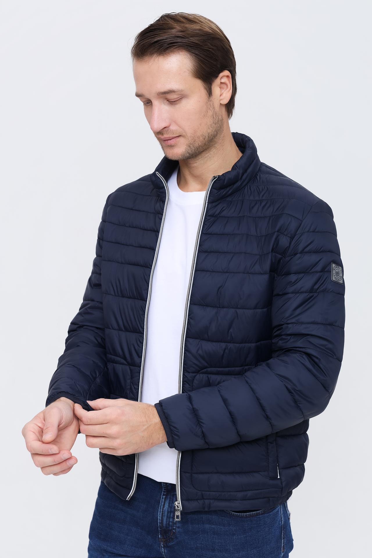 Куртка Bugatti синяя стеганая с логотипом на рукаве