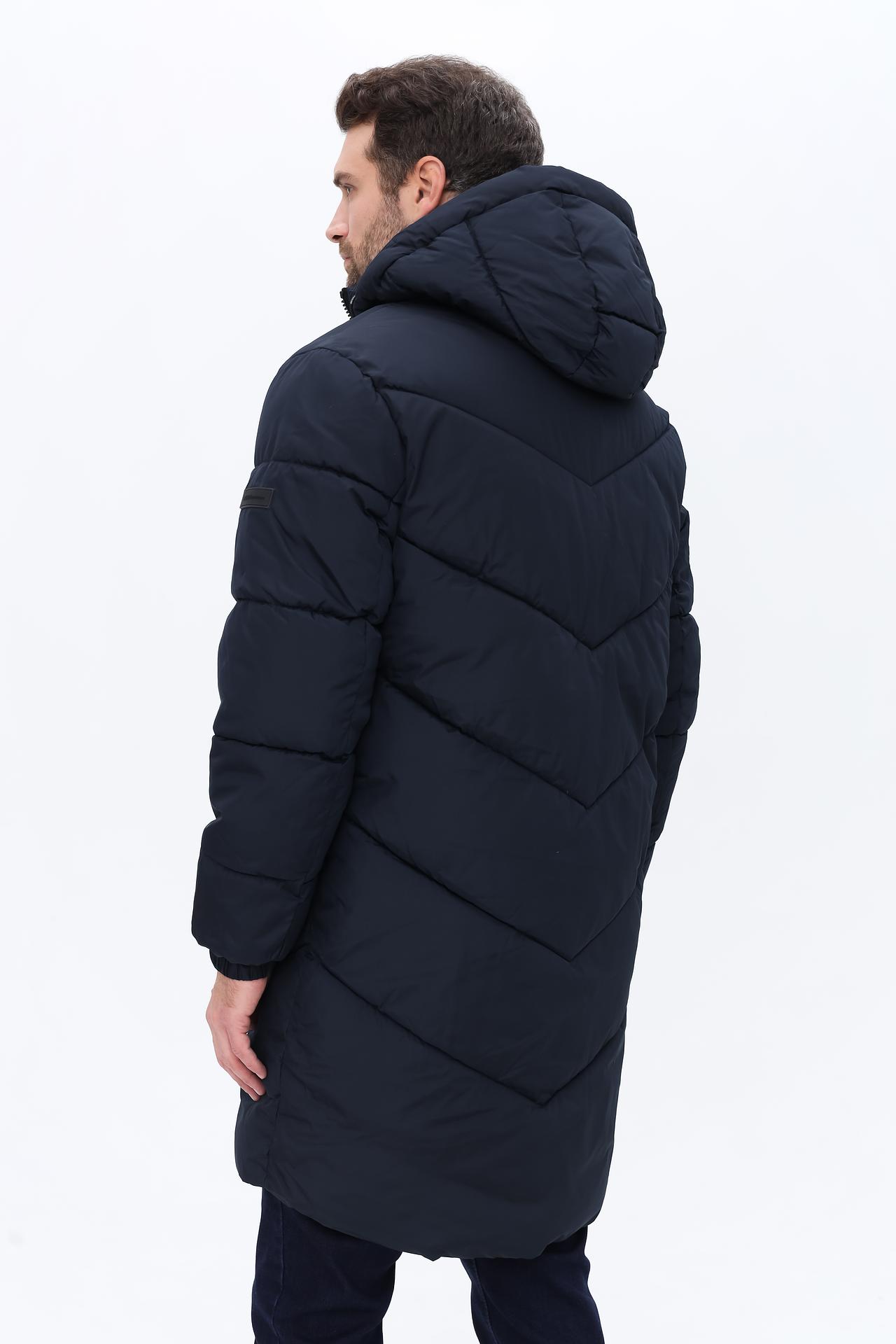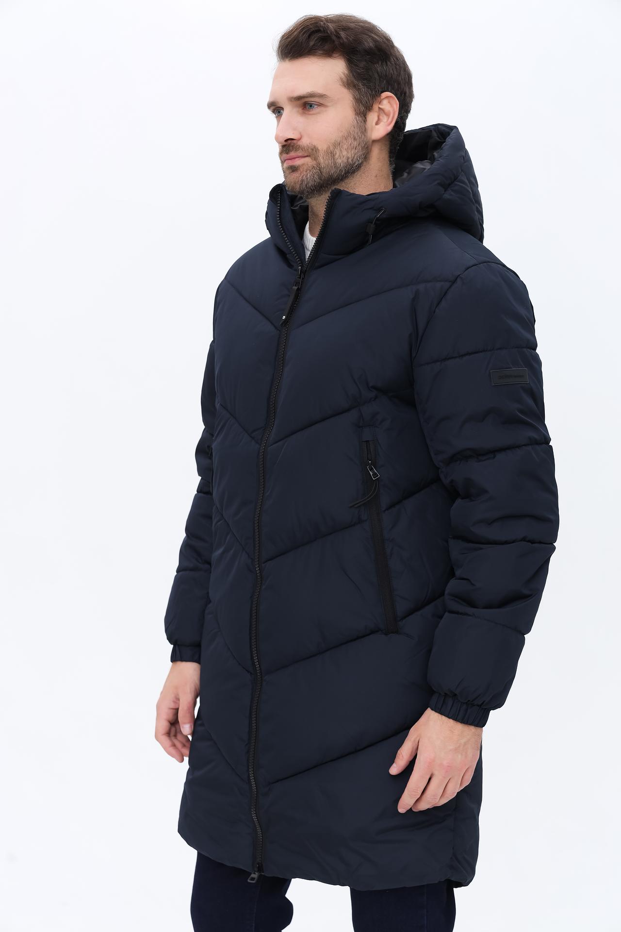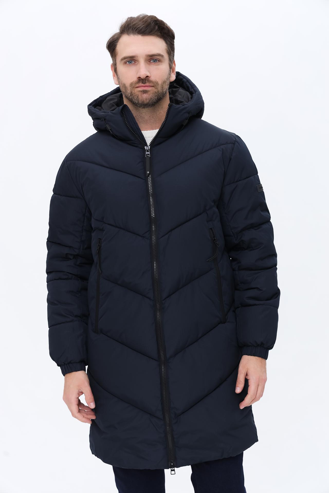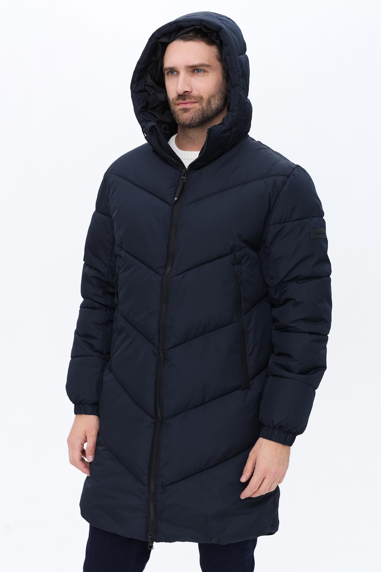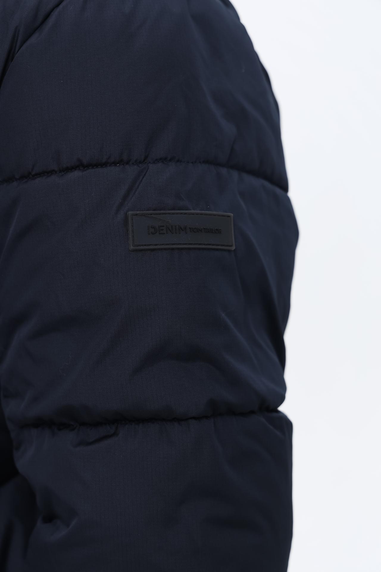 Пальто Tom Tailor длинное стеганное тёмно-синее с капюшоном