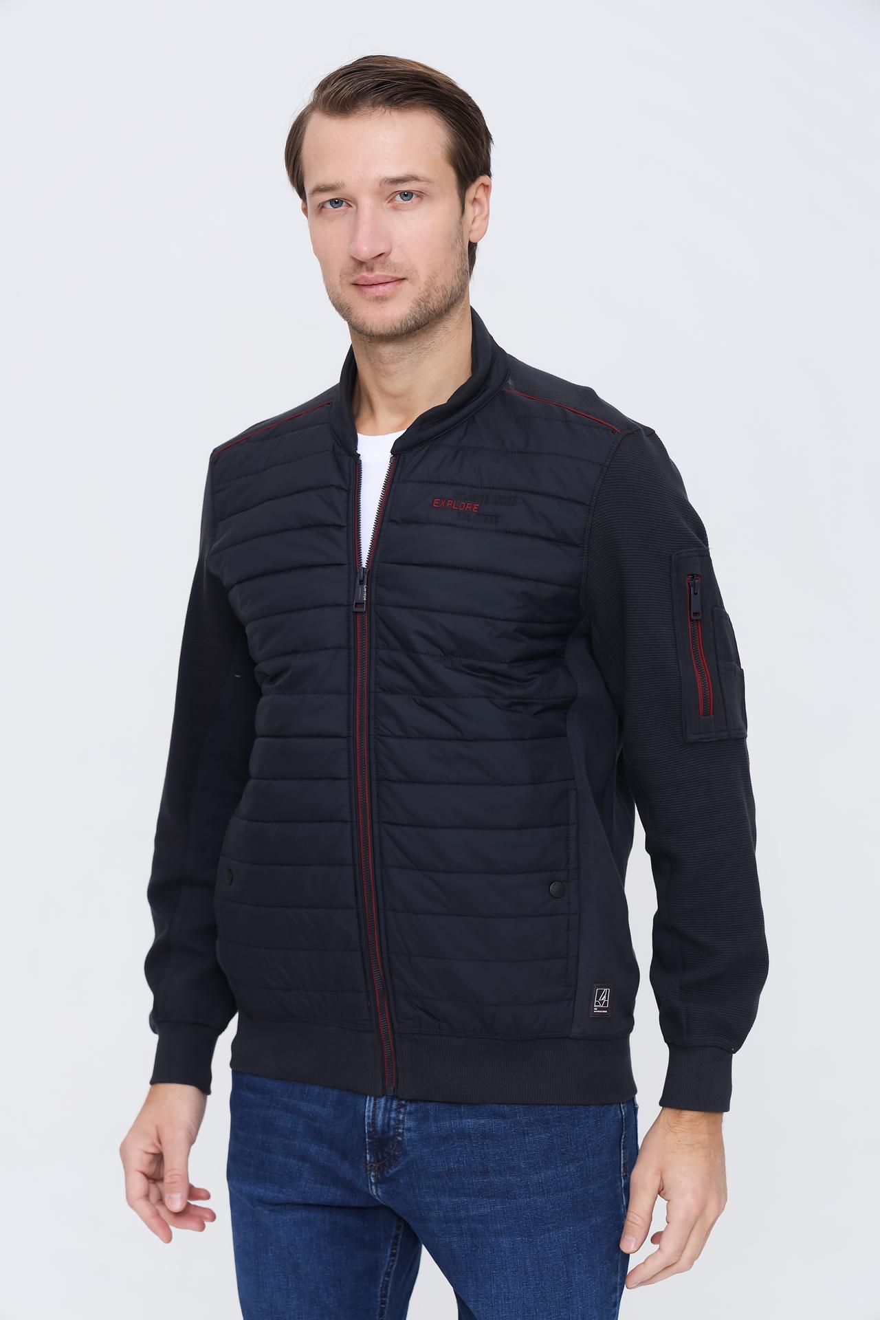 - Дизайн: Современный бомбер с контрастной отделкой вдоль молнии и на плечах добавляет образу динамичности. Стеганая передняя часть и трикотажные рукава и спинка создают интересный текстурный контраст.