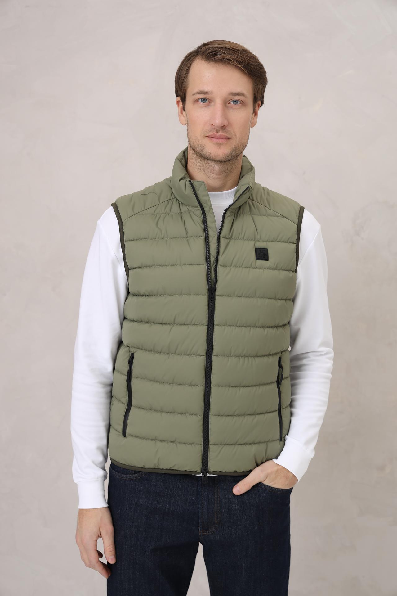 - Стильный Дизайн: Классический крой и универсальный зелёный оттенок делают этот жилет легко комбинируемым с различными элементами гардероба. Матовый чёрный патч с логотипом бренда на груди добавляет акцент и узнаваемость.