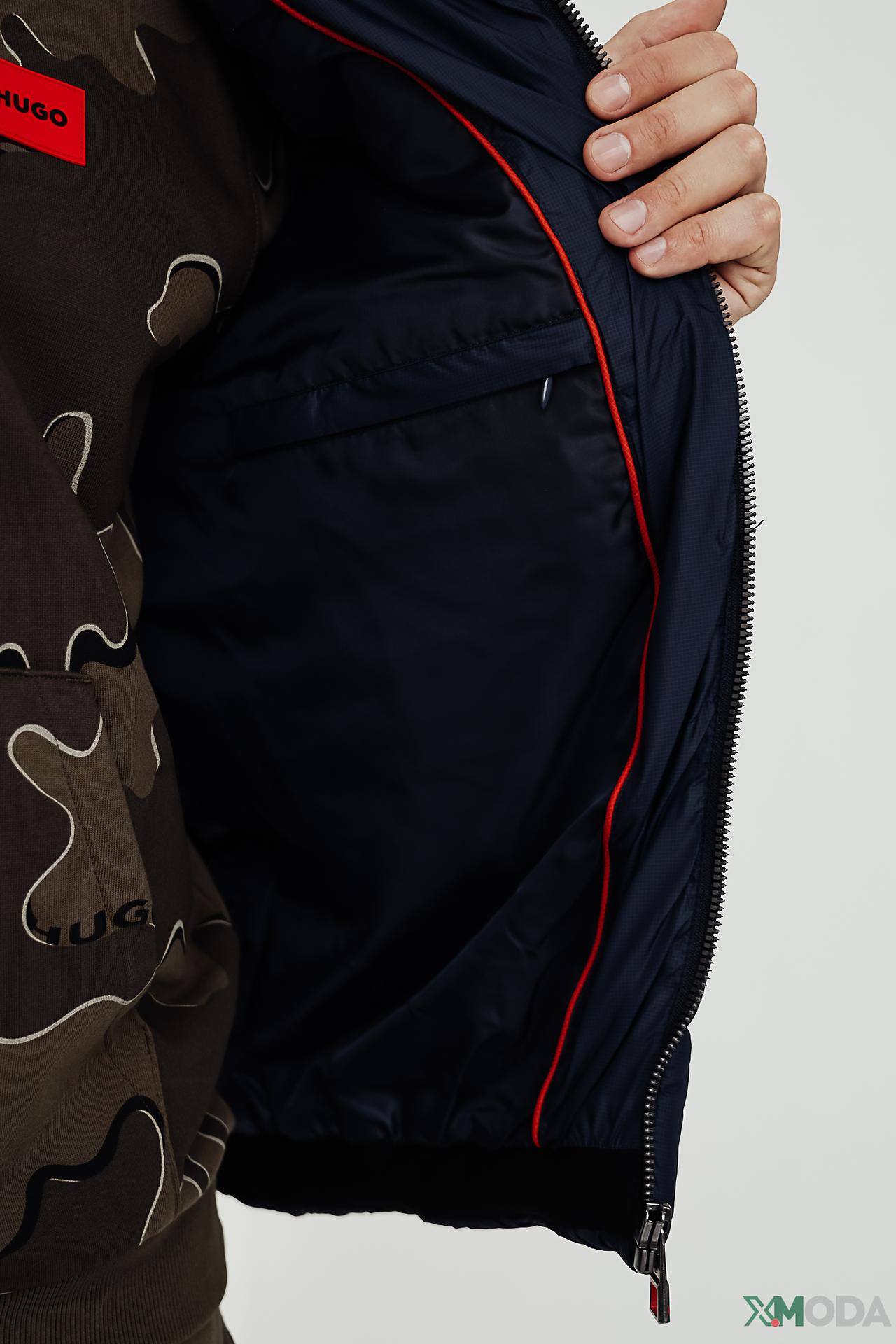 - Функциональный дизайн: Модель оснащена удобной застежкой на молнии по всей длине, высоким воротником-стойкой для дополнительной защиты шеи и несколькими карманами. На груди расположен вертикальный карман на молнии, а по бокам — два вместительных кармана на кнопках.