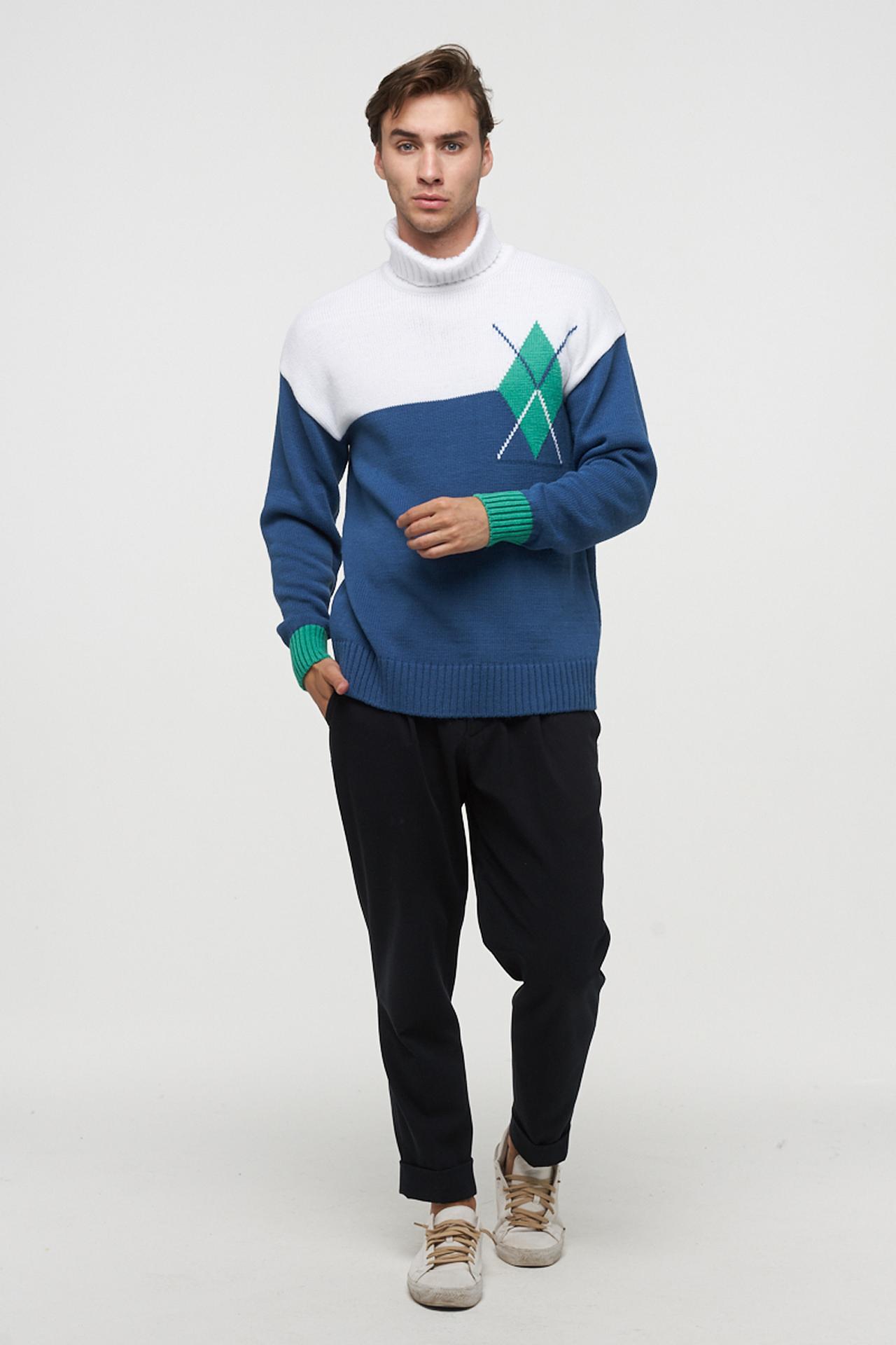 - Универсальный дизайн. Сочетание синего, белого и зеленого цветов, а также ромбовидный узор, делают эту водолазку стильным акцентом в вашем образе.