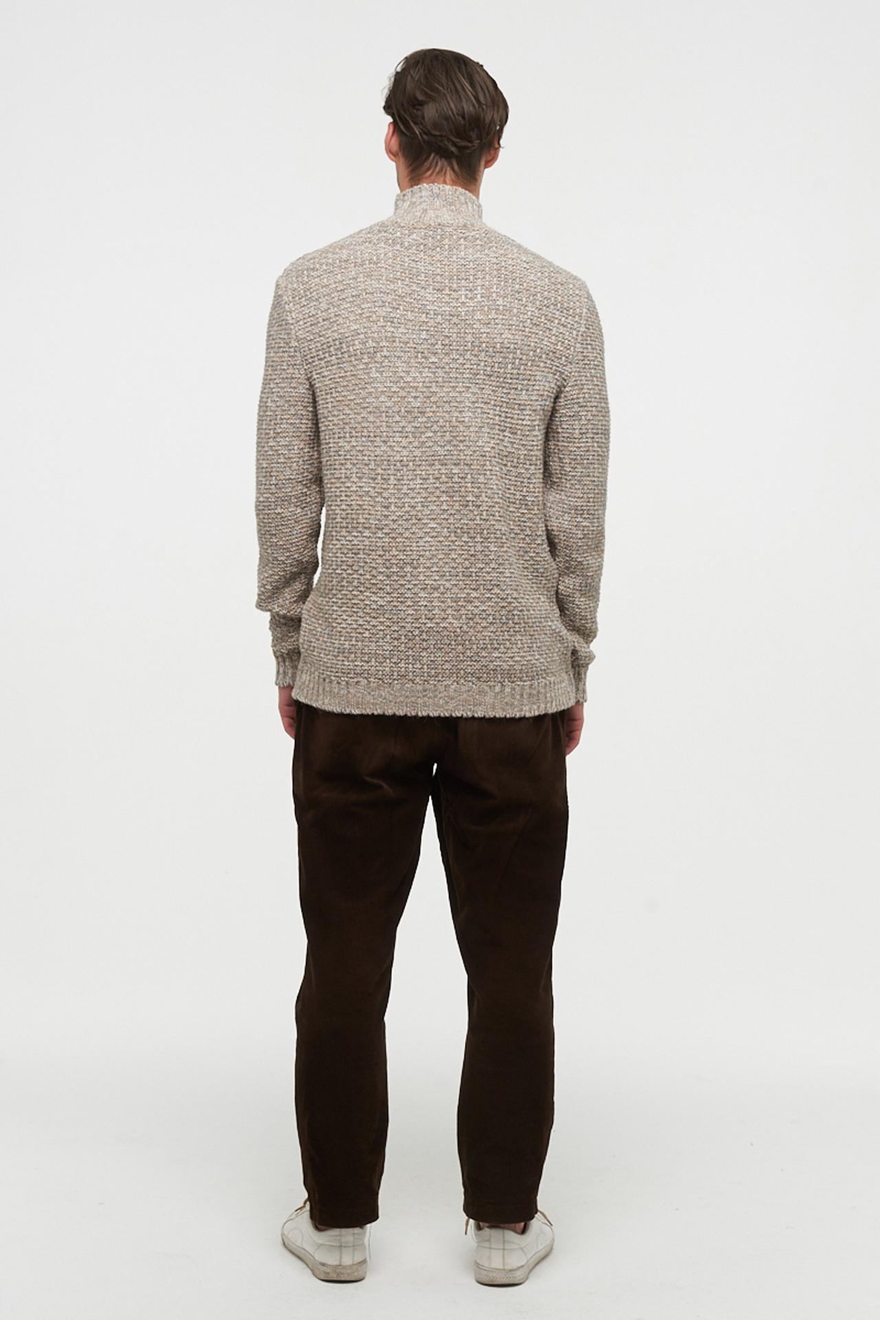 - Универсальный дизайн. Модель отличается классическим кроем и нейтральным бежевым меланжевым оттенком, легко комбинирующимся с брюками, джинсами и верхней одеждой. Это универсальный джемпер для создания разнообразных повседневных и офисных образов.
