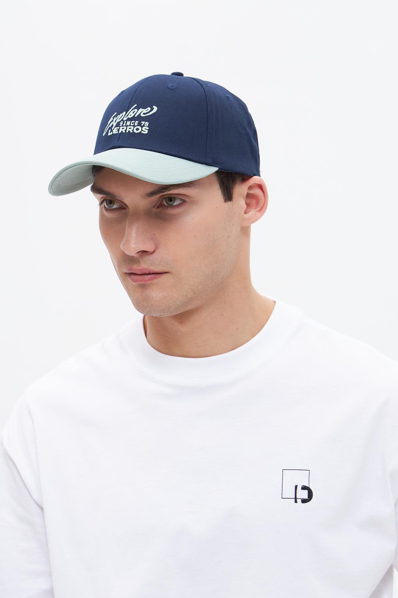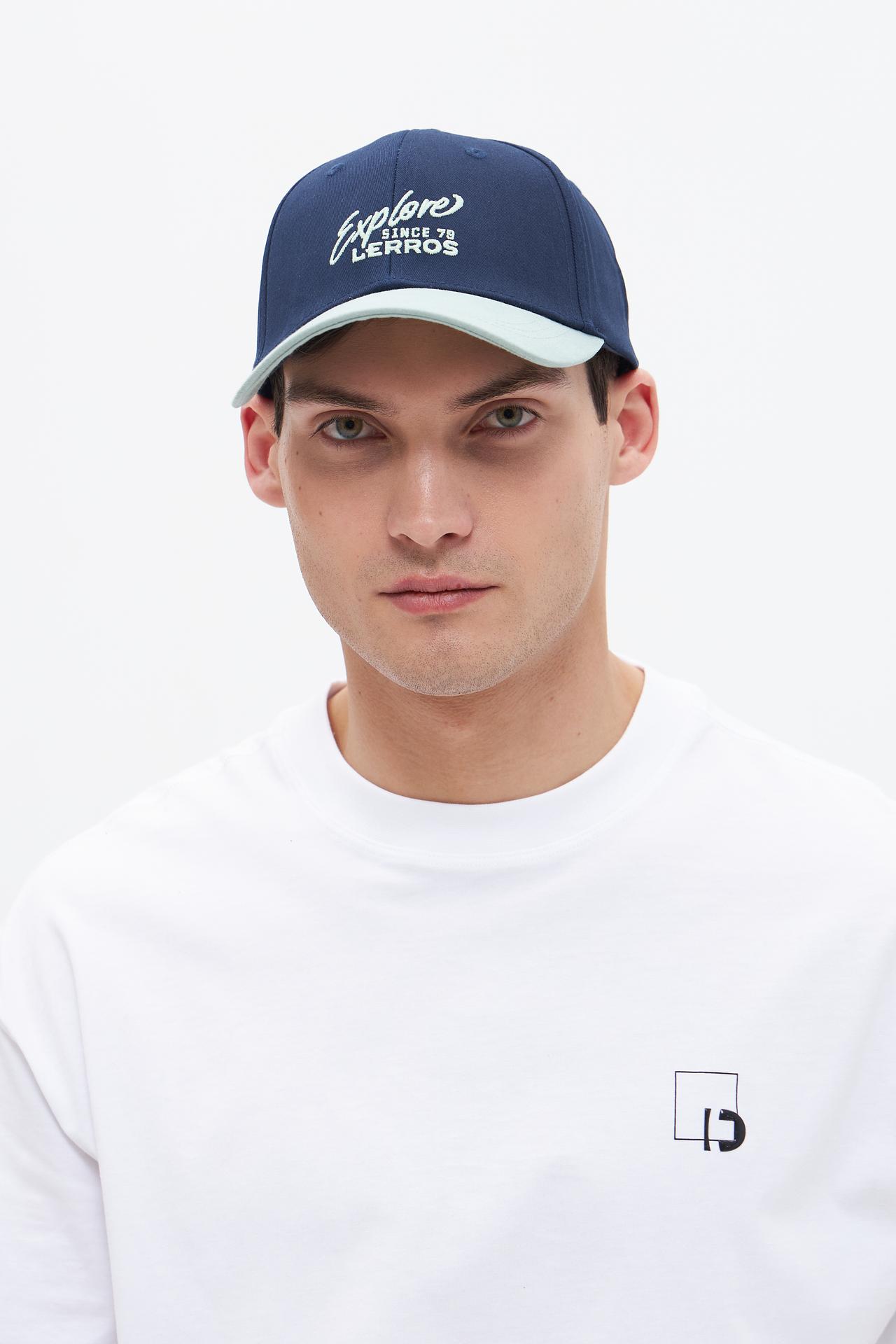 Бейсболка Lerros синяя с логотипом и контрастным козырьком