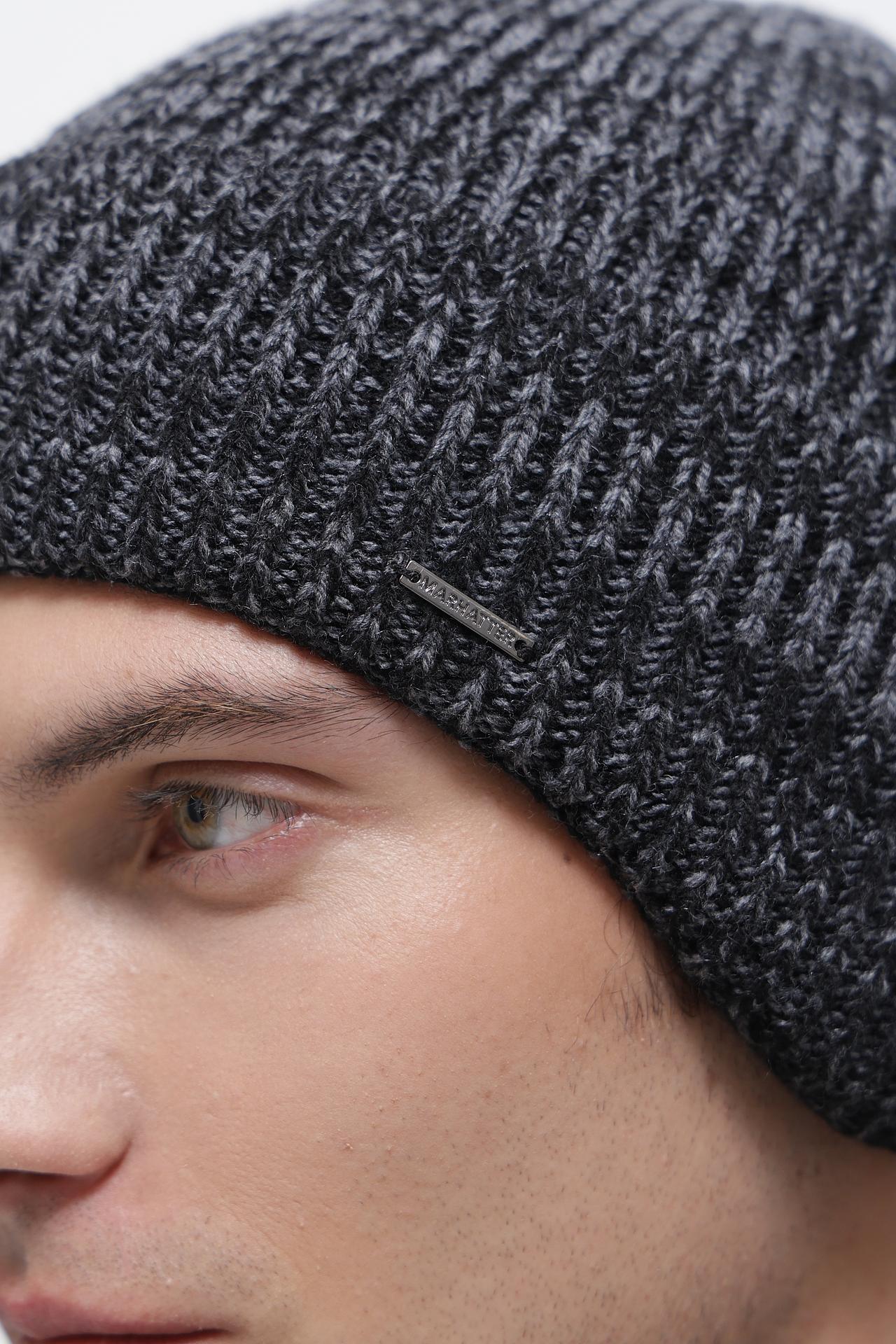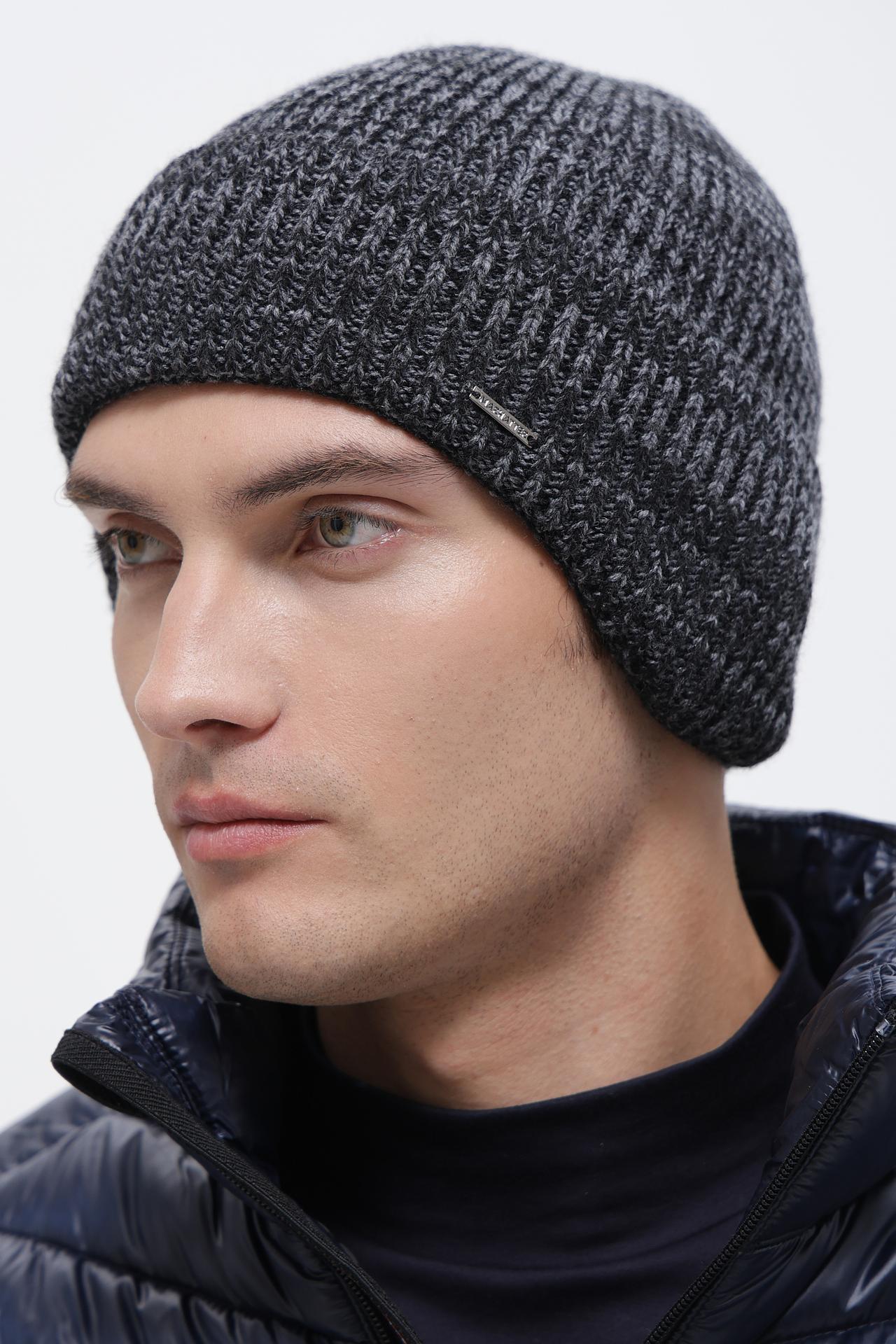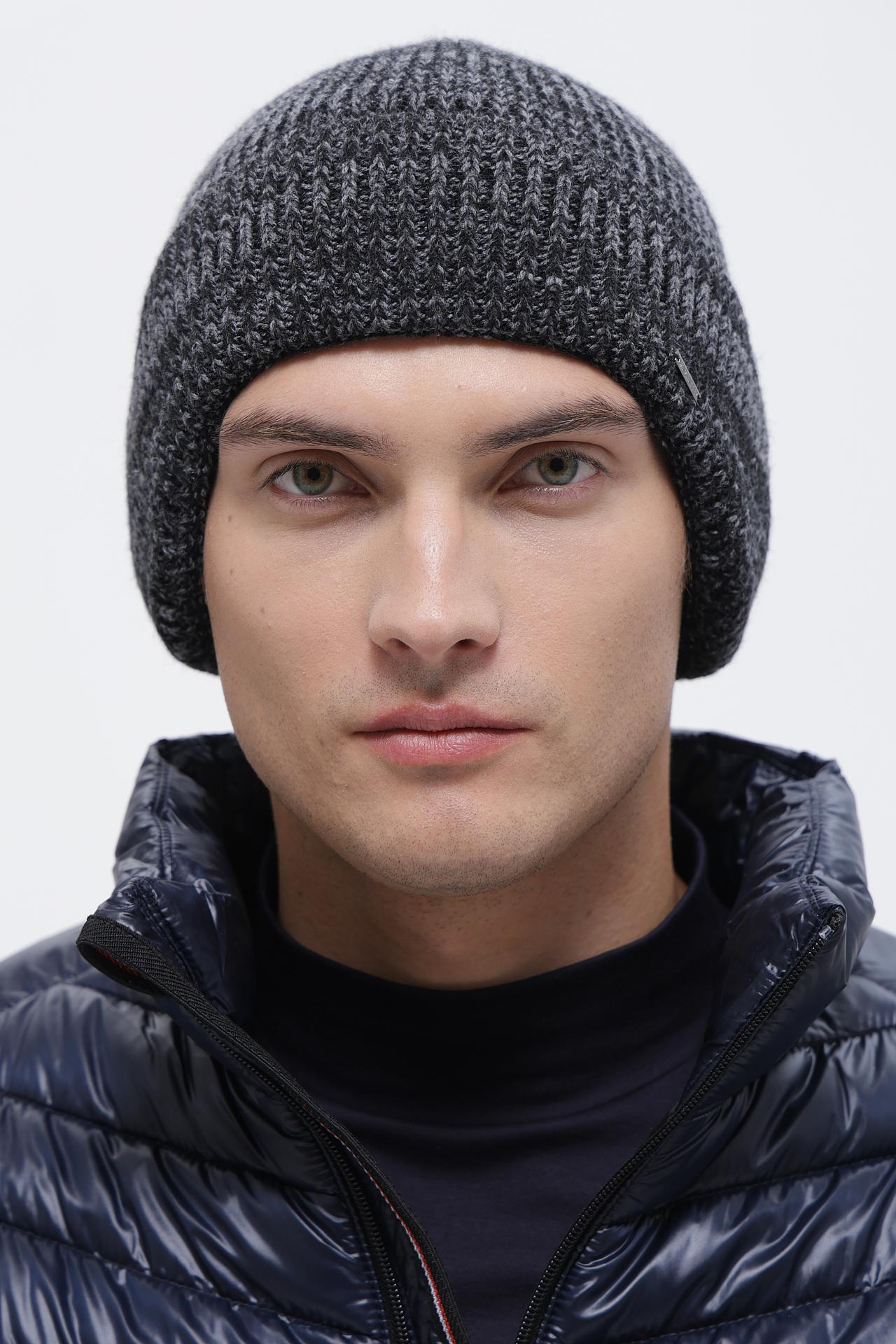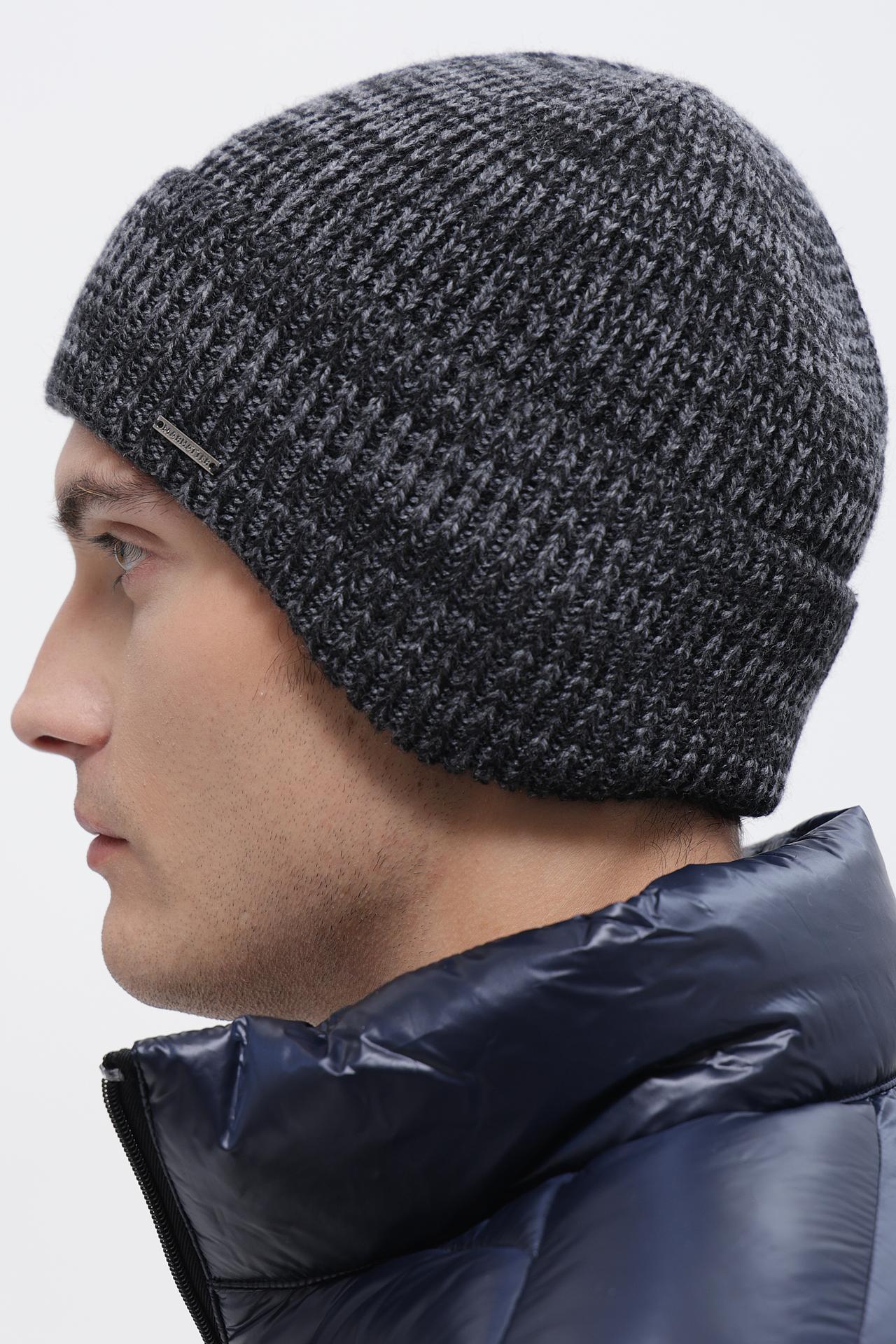 - Дизайн: Классическая модель с плотной вязкой и отворотом, дополненная лаконичным металлическим шильдом с логотипом бренда. Меланжевый узор придает шапке особый шарм и делает ее актуальной в любом сезоне.