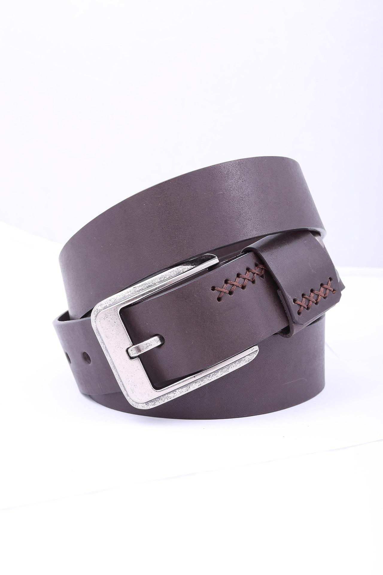 Ремень Mosko коричневый, с пряжкой под античное серебро и прострочкой