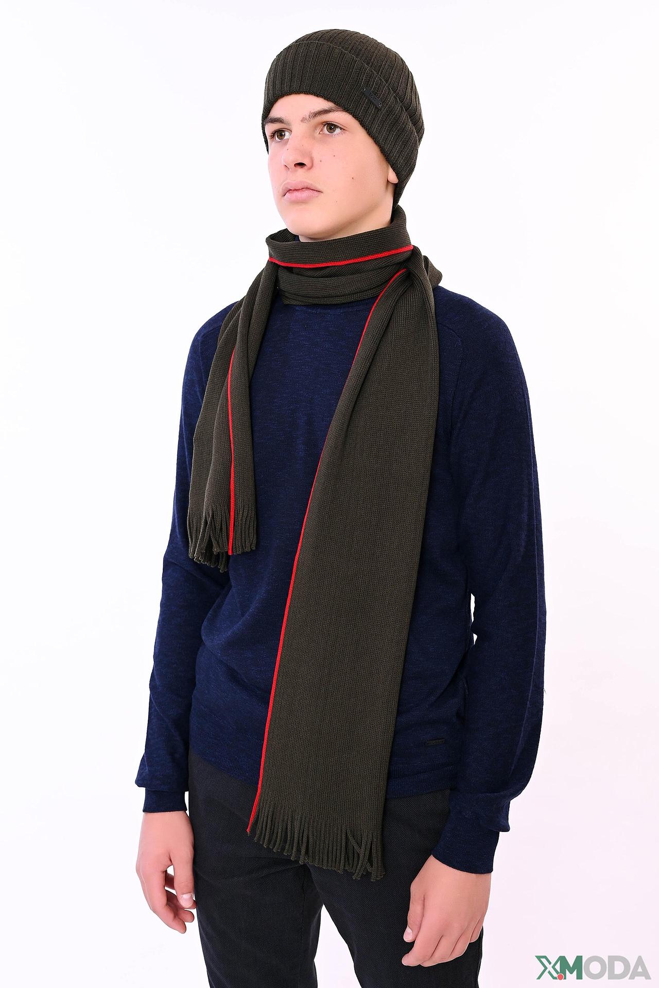- Универсальный дизайн. Оливковый цвет с тонкой красной полосой делает этот шарф подходящим как для деловых, так и для повседневных образов.