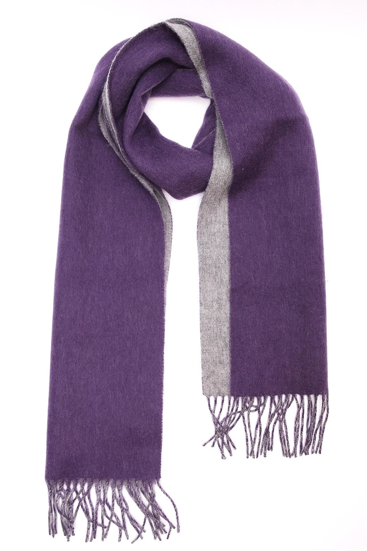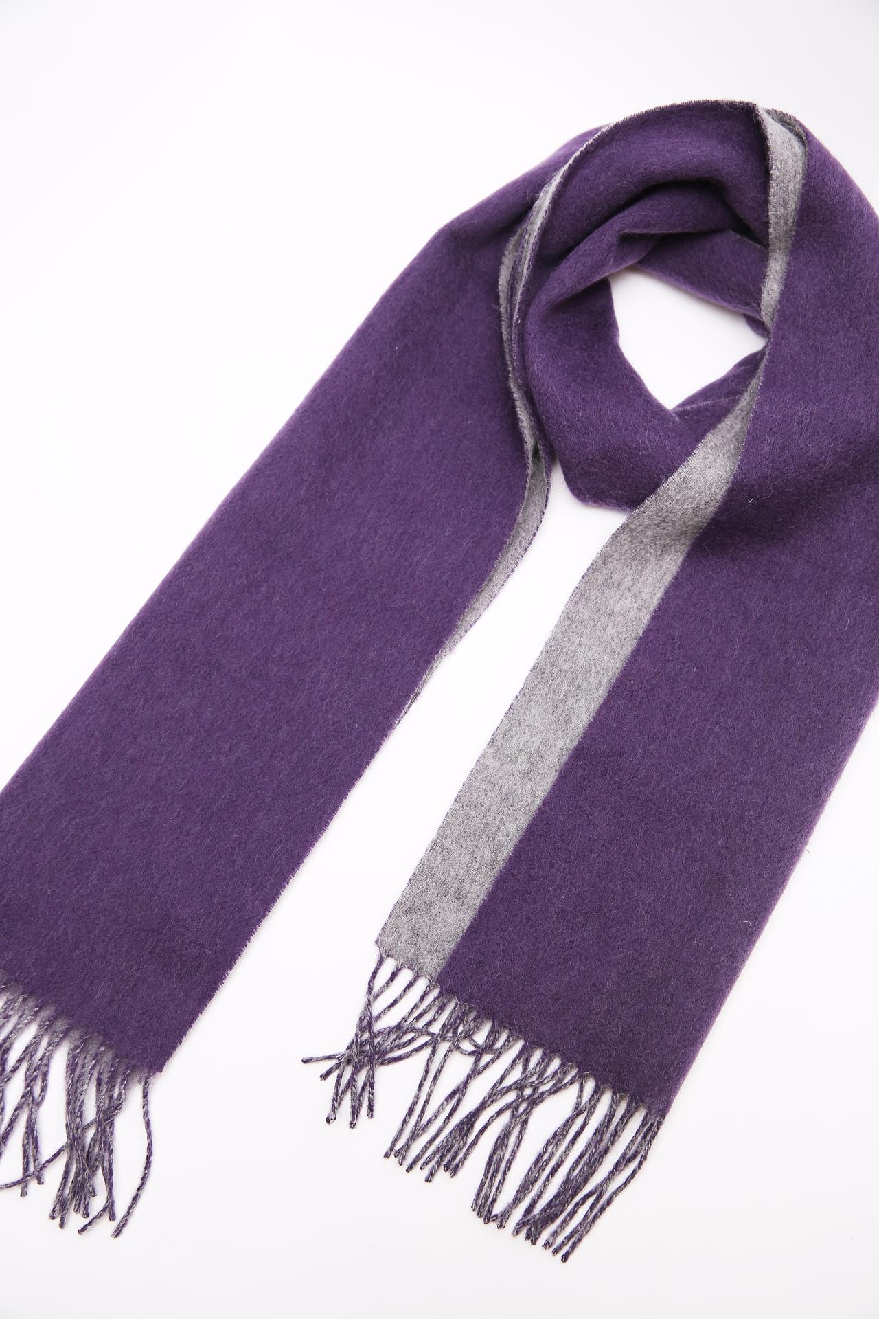 Шарф двухсторонний фирмы Just Valeri. Модель средней ширины. С одной стороны шарф серого цвета, с другой - сиреневого, по краям расположена бахрома.. Такую модель можно носить с плащами и пальто.