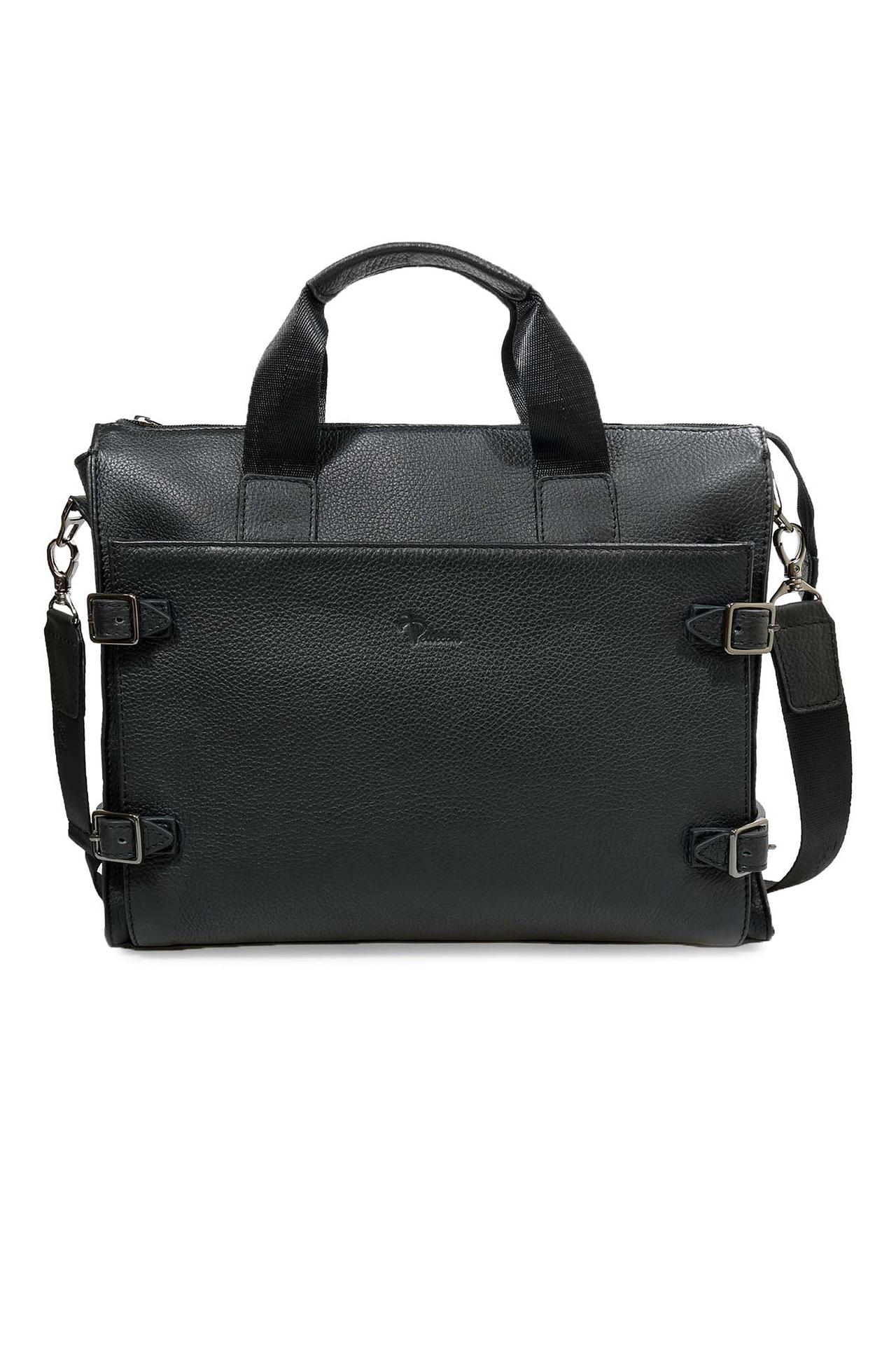 - Дизайн: Классическая форма портфеля дополнена стильными ремешками с пряжками, которые придают изделию уникальный и запоминающийся вид. Черный цвет и минималистичный логотип бренда гармонично вписываются в любой деловой образ.