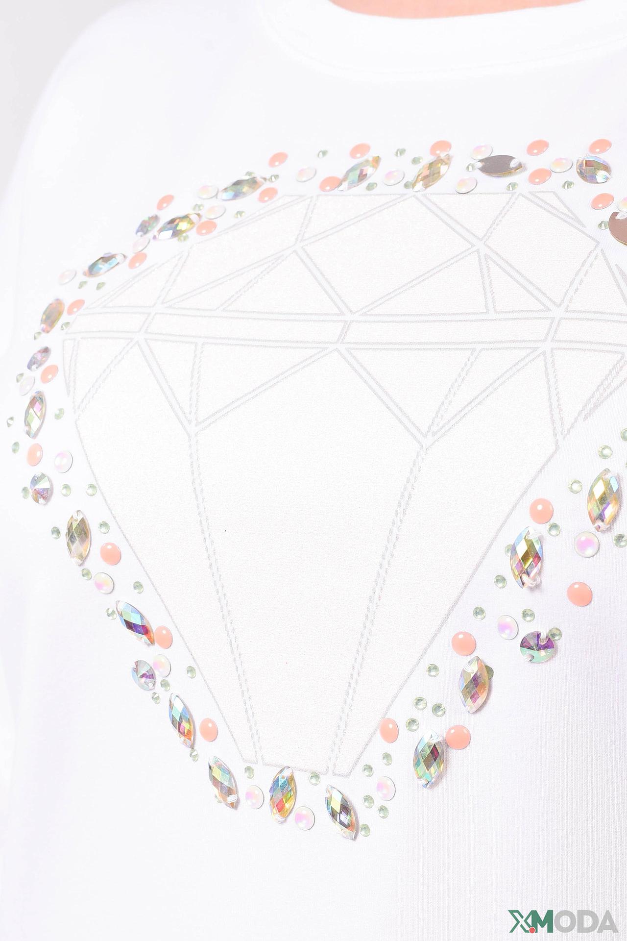 Базовый белый пуловер от Pezzo — незаменимая вещь в гардеробе современной женщины. Модель выполнена из приятного к телу материала с добавлением эластана, что обеспечивает комфортную посадку и свободу движений. Оригинальный принт в виде бриллианта, украшенный сверкающими стразами и бусинами, добавляет изделию изысканности и модного акцента. Пуловер отлично сочетается как с повседневными джинсами, так и с элегантными брюками или юбками, создавая стильные и актуальные образы.
