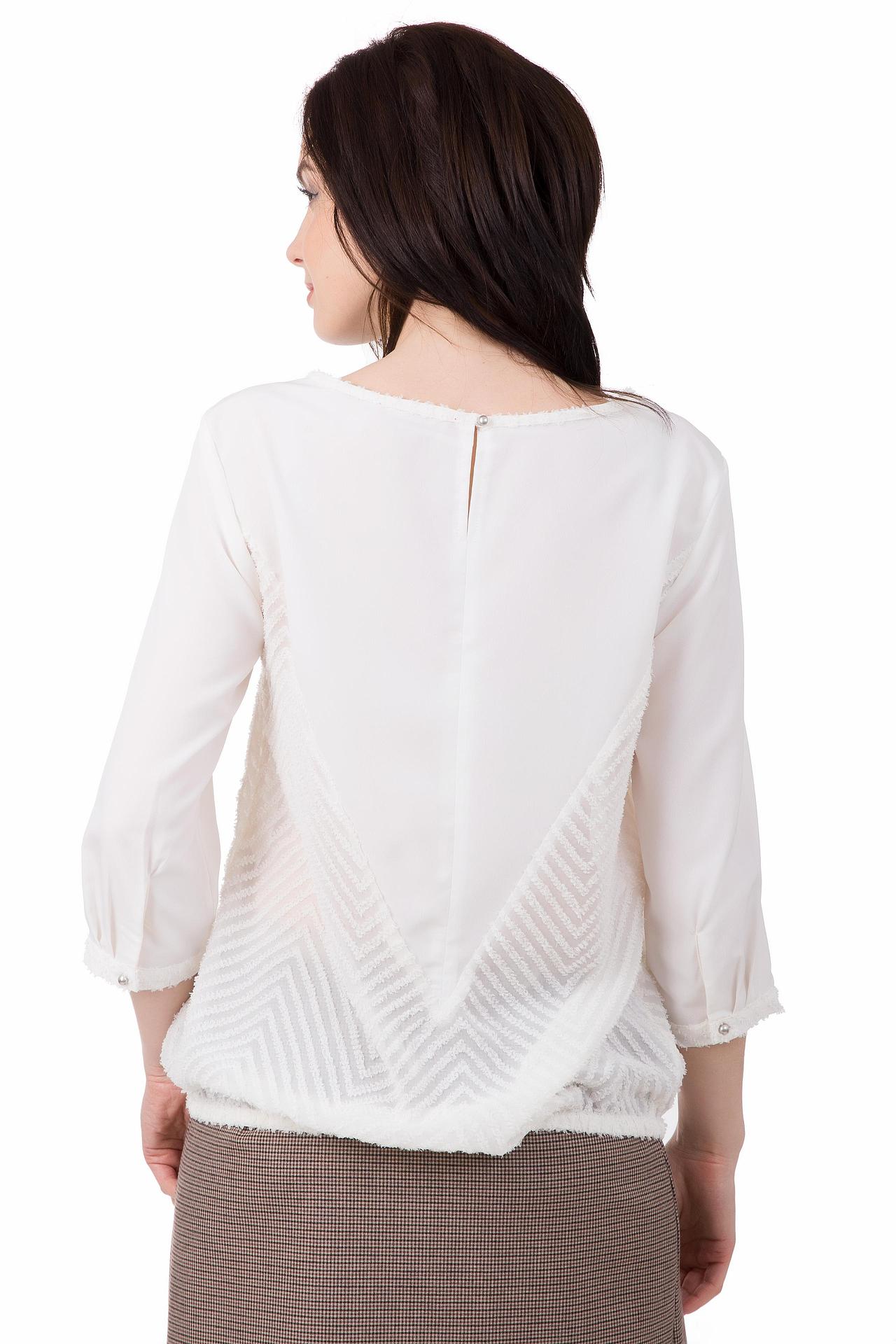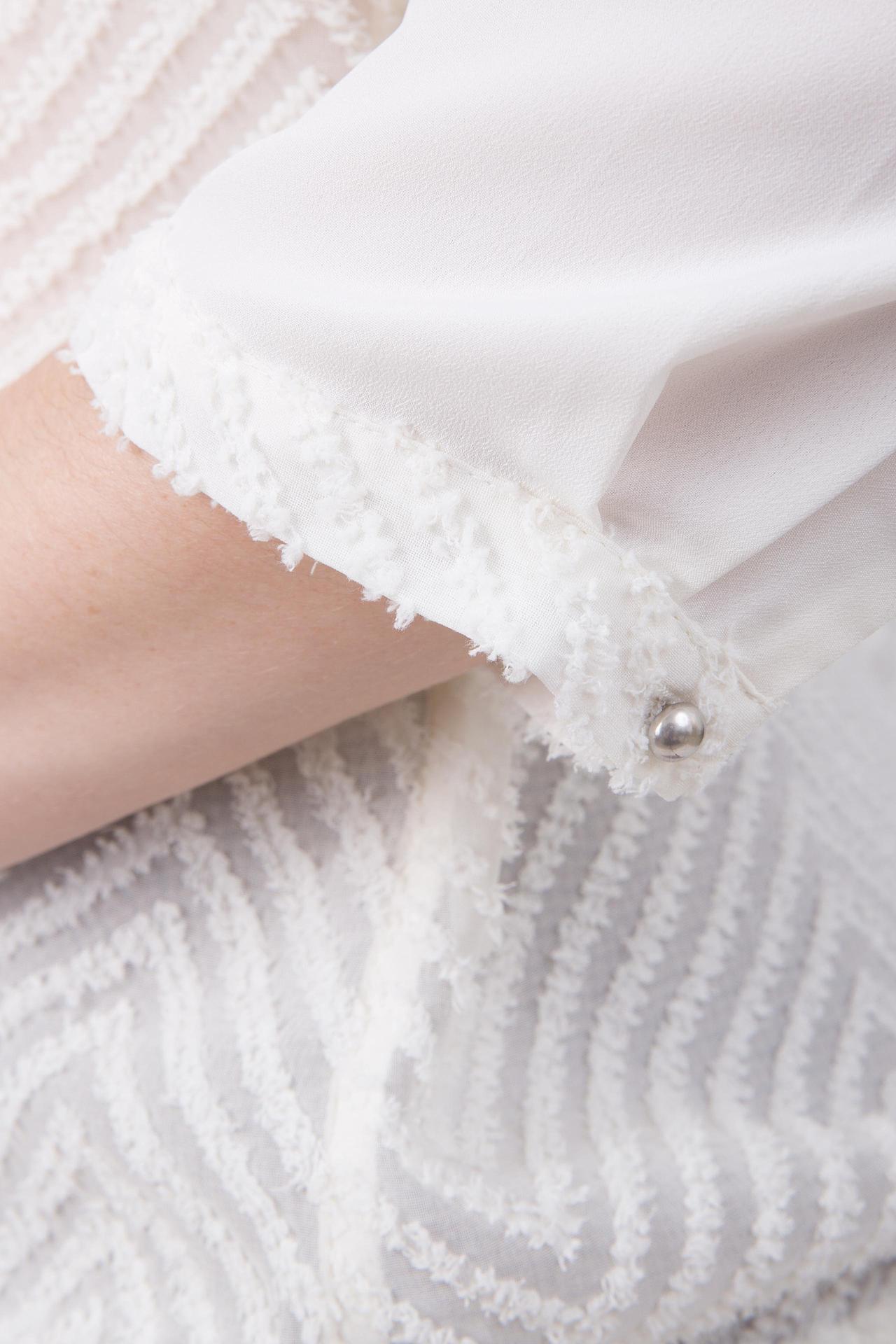Блузa s.Oliver белая. Фантазийный рисунок по лифу модели в «елочку» из диагональных полос выглядит очень стильно: рисунок белым по белому – неизменно изысканно и неординарно. Кокетка и рукава модели однотонные, без узора, что оттеняет основной узор. Превосходная модель для самых женственных и элегантных. Состав:100%-ный полиэстер.