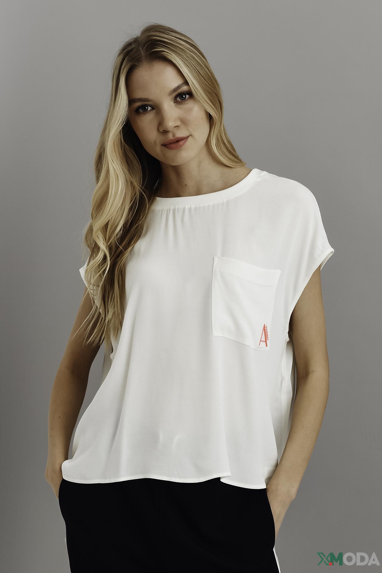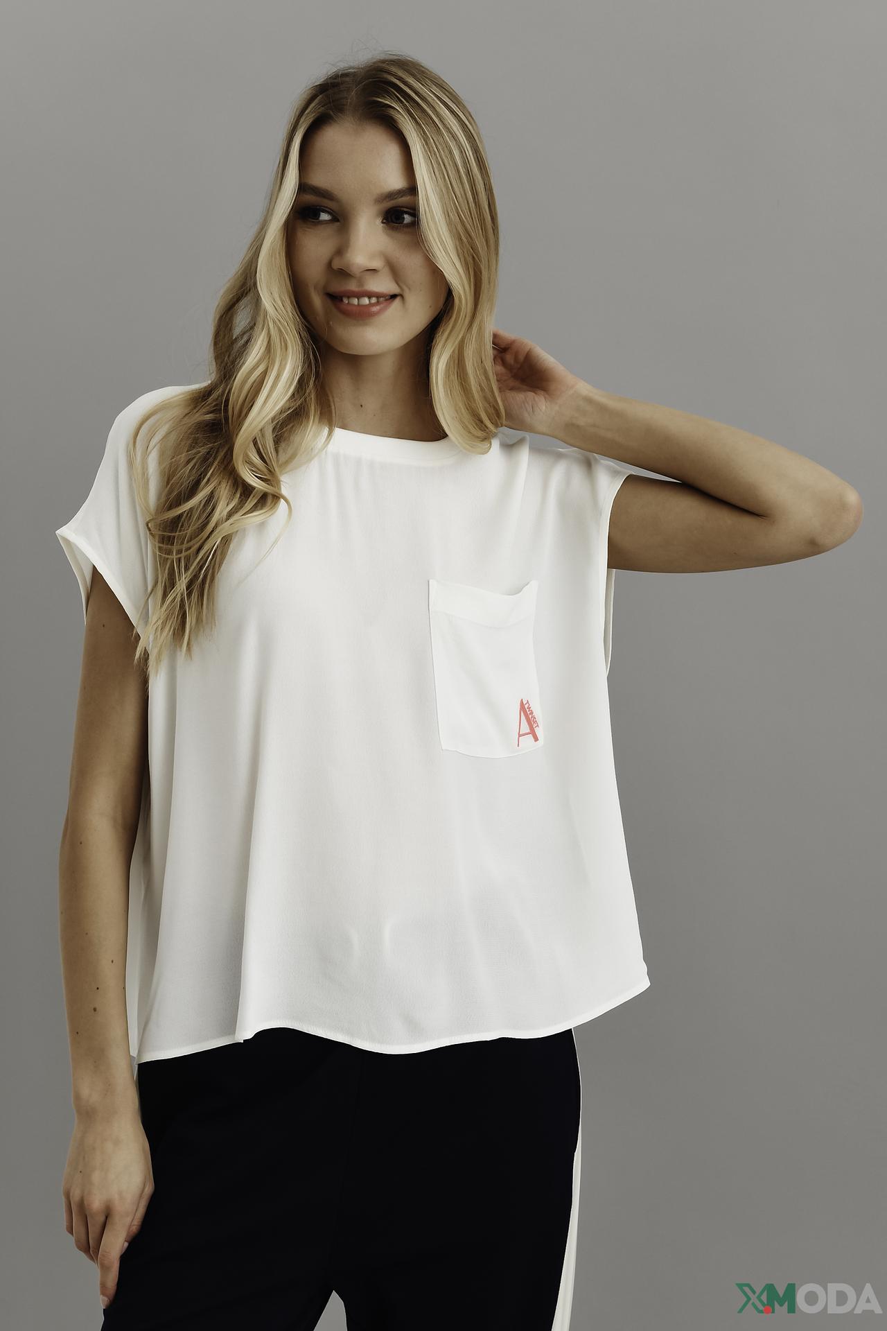 Блуза Twin Set белая с накладным карманом и контрастным принтом