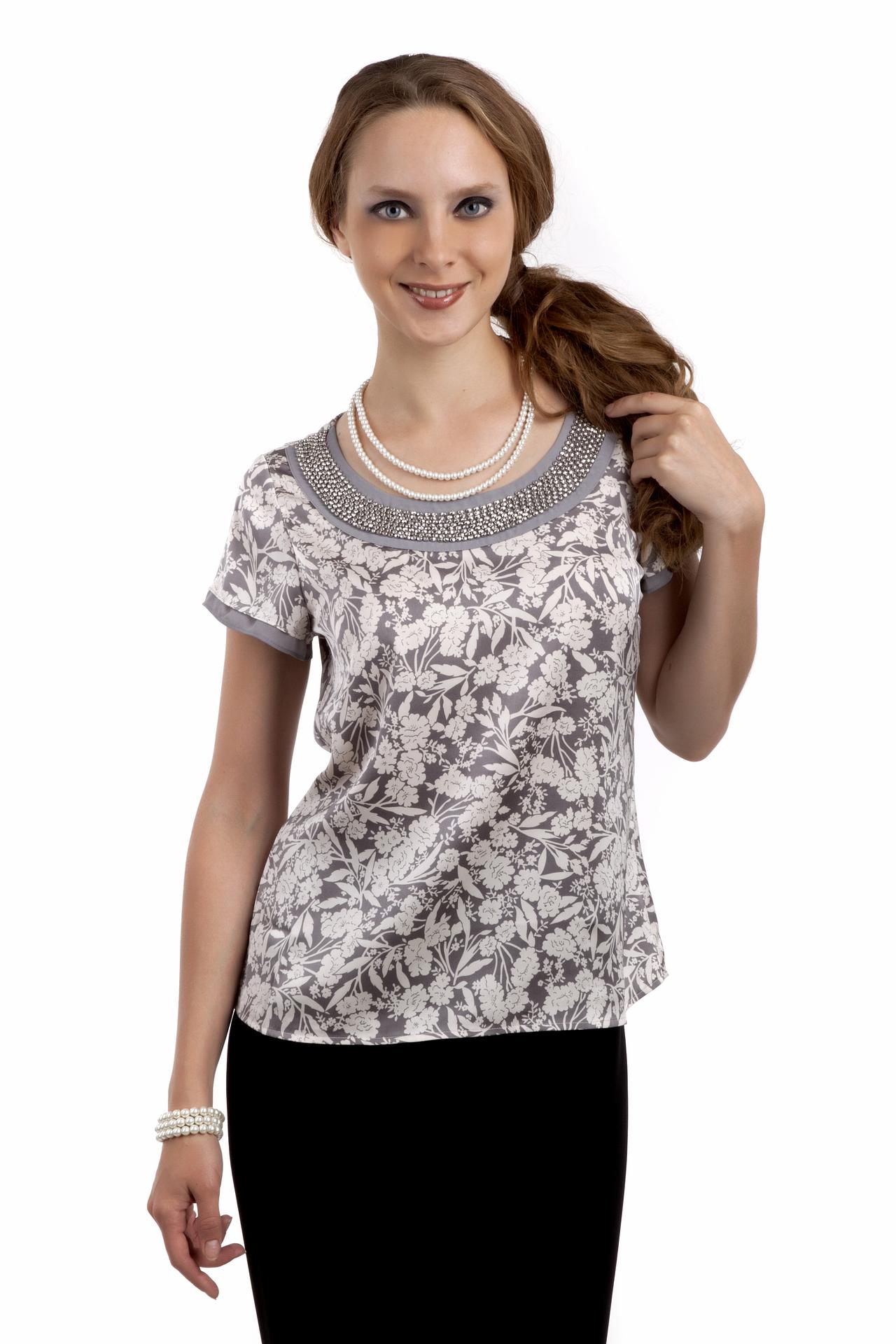 Блуза Pezzo Серая с цветочным принтом и декором