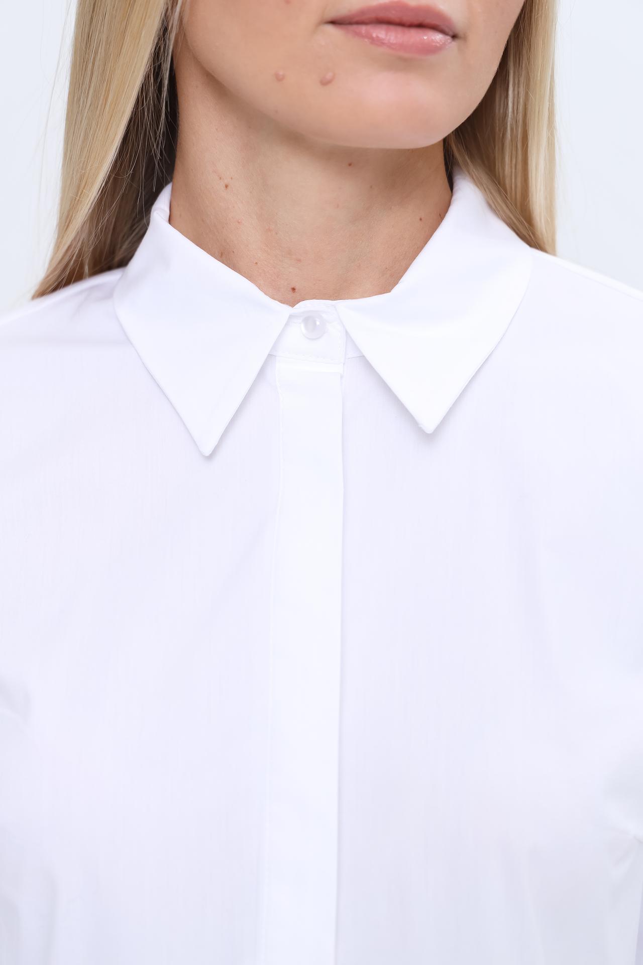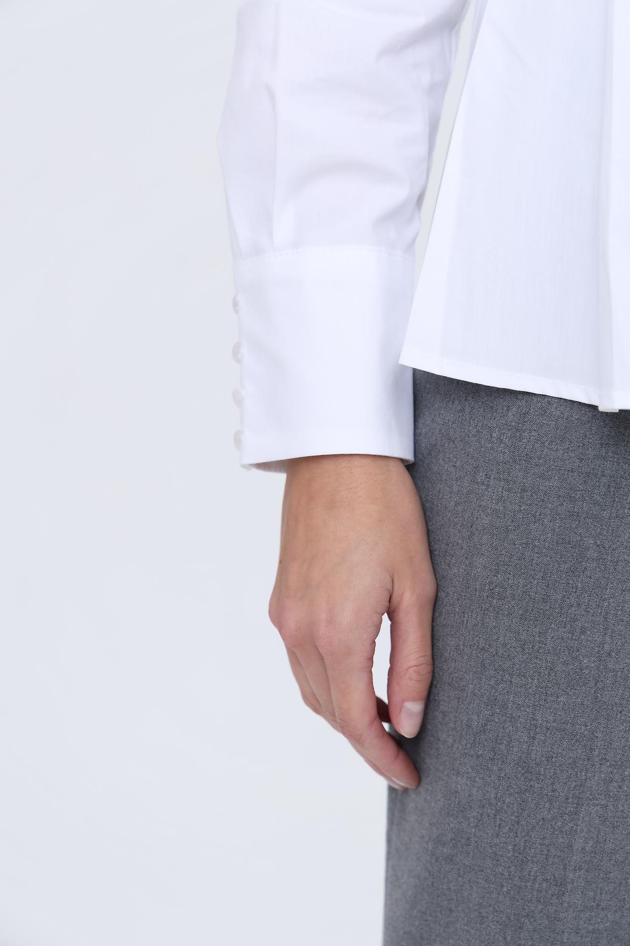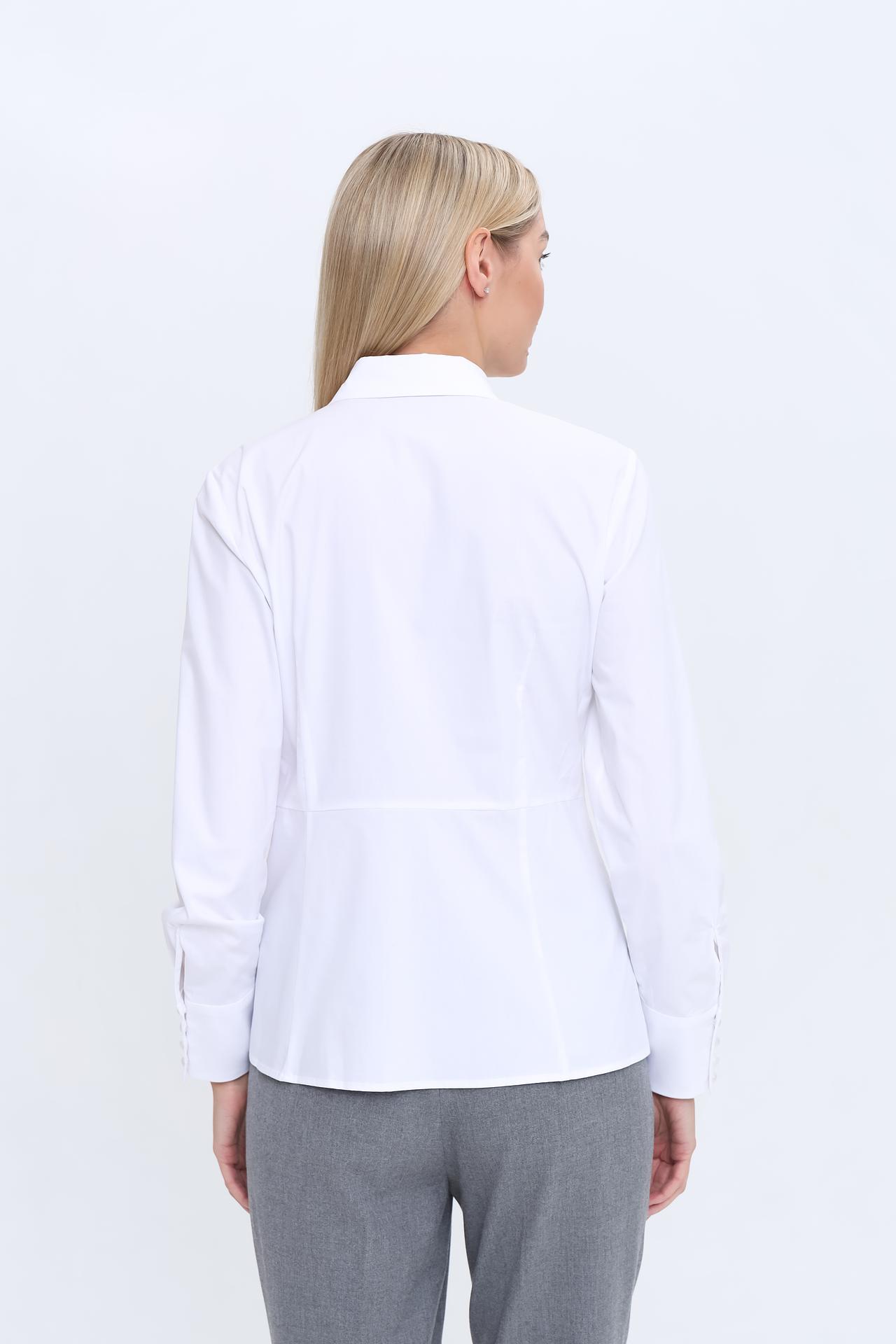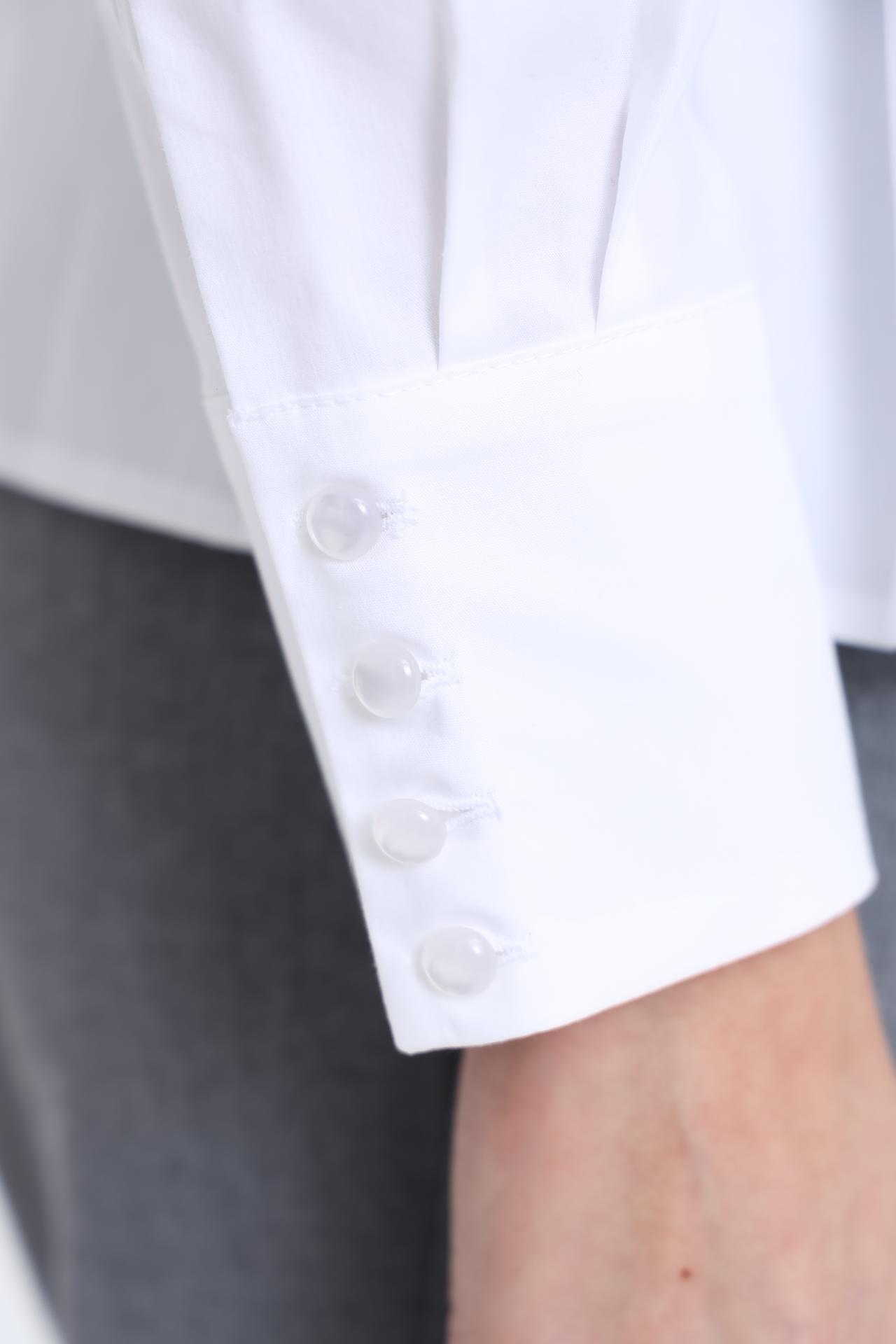 • Классический воротник: Придает образу строгость и элегантность, что делает блузку подходящей для деловых встреч.