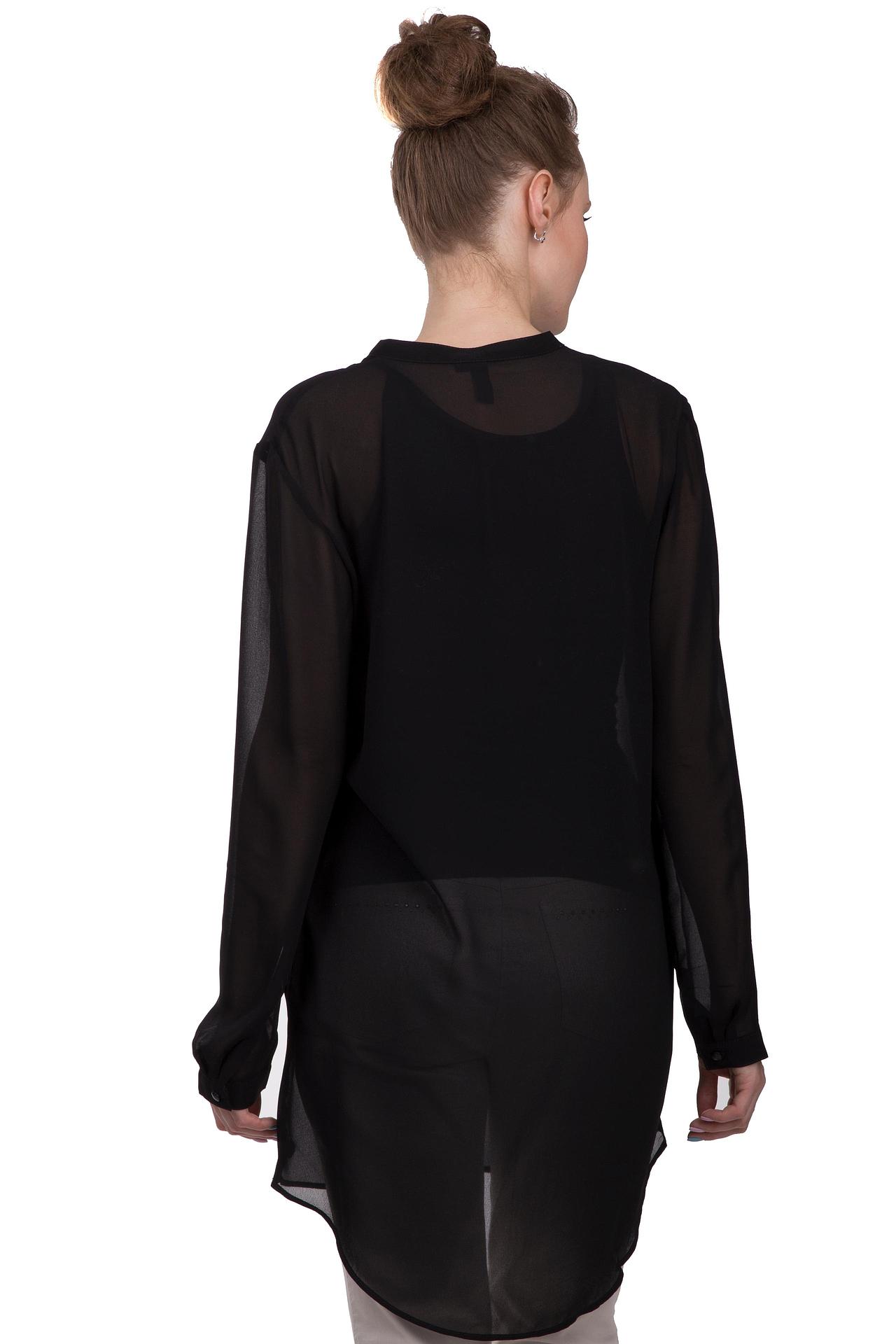 Элегантная удлиненная блуза s.Oliver DENIM чёрного цвета из полупрозрачной ткани. Модель прямого кроя, напоминающая тунику, выполнена из лёгкого и воздушного полиэстера, который красиво драпируется и обеспечивает комфорт в течение всего дня. Эта универсальная блуза-рубашка станет основой как для деловых, так и для повседневных образов, легко сочетаясь с брюками, джинсами или юбками.