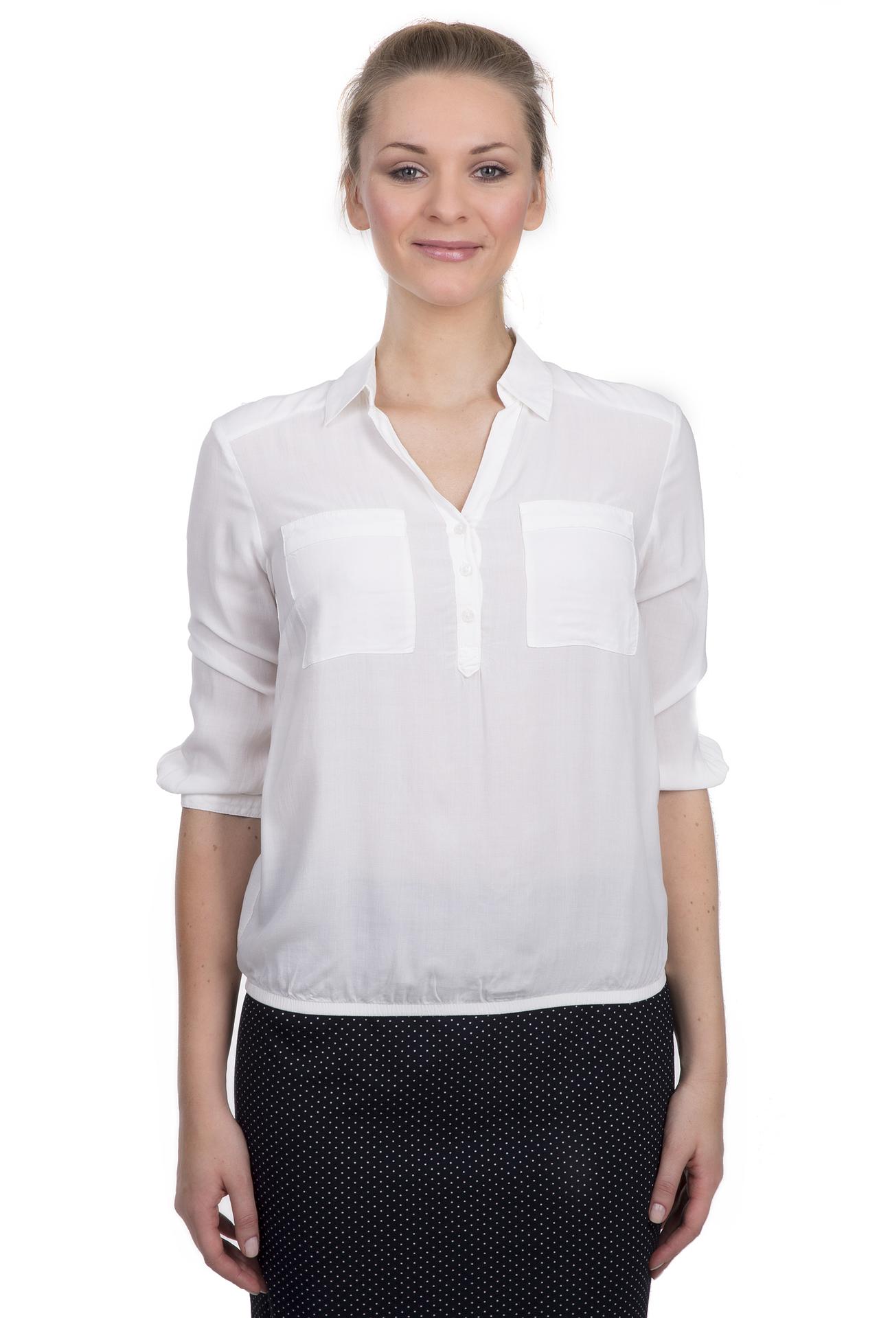 Однотонная женская блуза бренда s.Oliver. Это блуза простого покроя, выполненная из полупрозрачного материала белого цвета, в состав которого входит 100% вискоза. Изделие дополнено нагрудными карманами, отложным воротником с v-образным вырезом, и рукавом длиной до середины локтя.