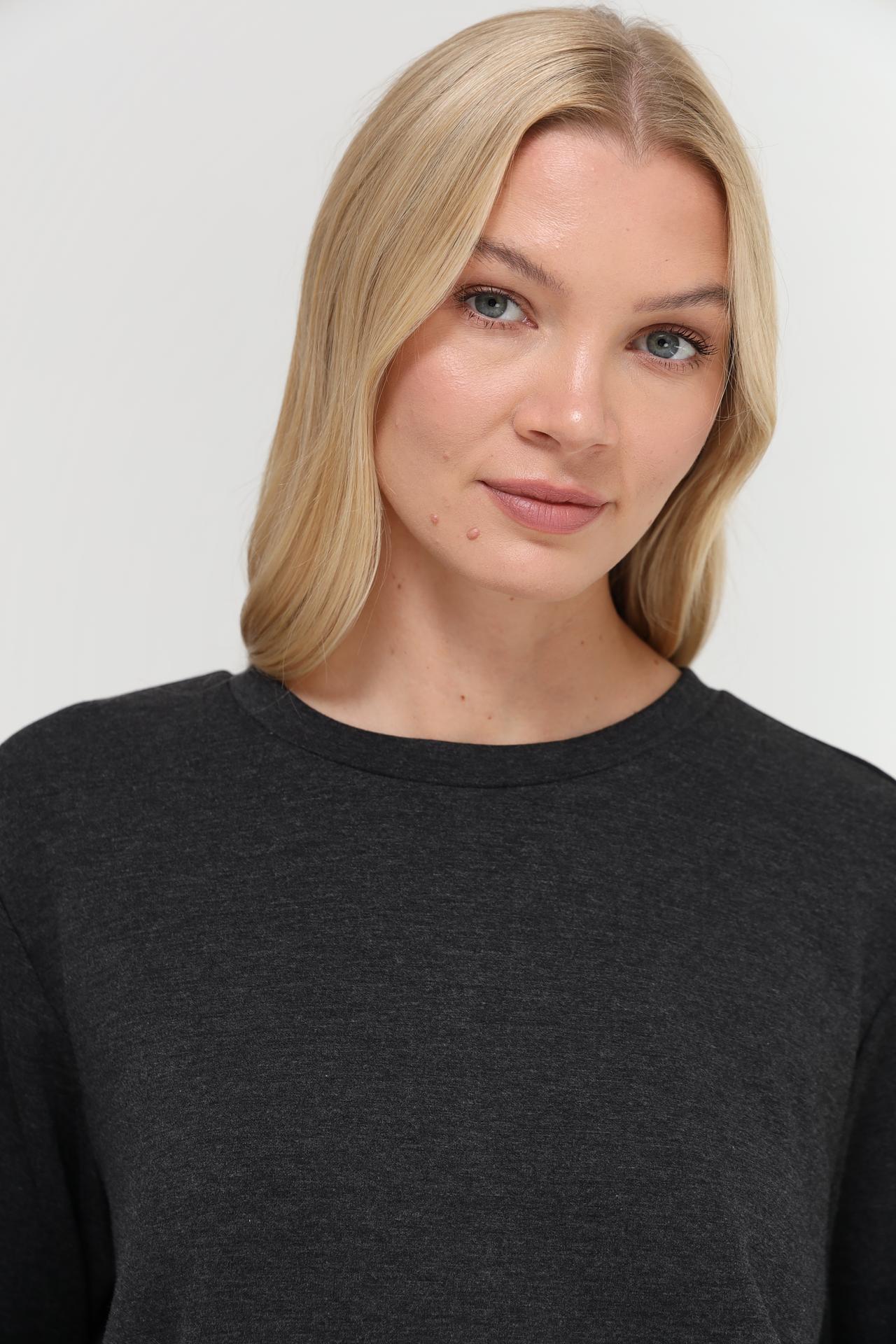 - Крой: Свободный, но не мешковатый крой обеспечивает комфорт и непринужденность. Блуза имеет классический круглый вырез и длинные рукава, что делает ее актуальной в любое время года.