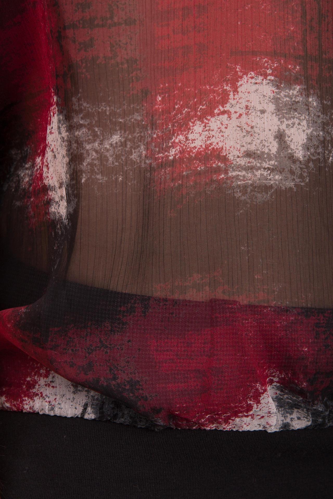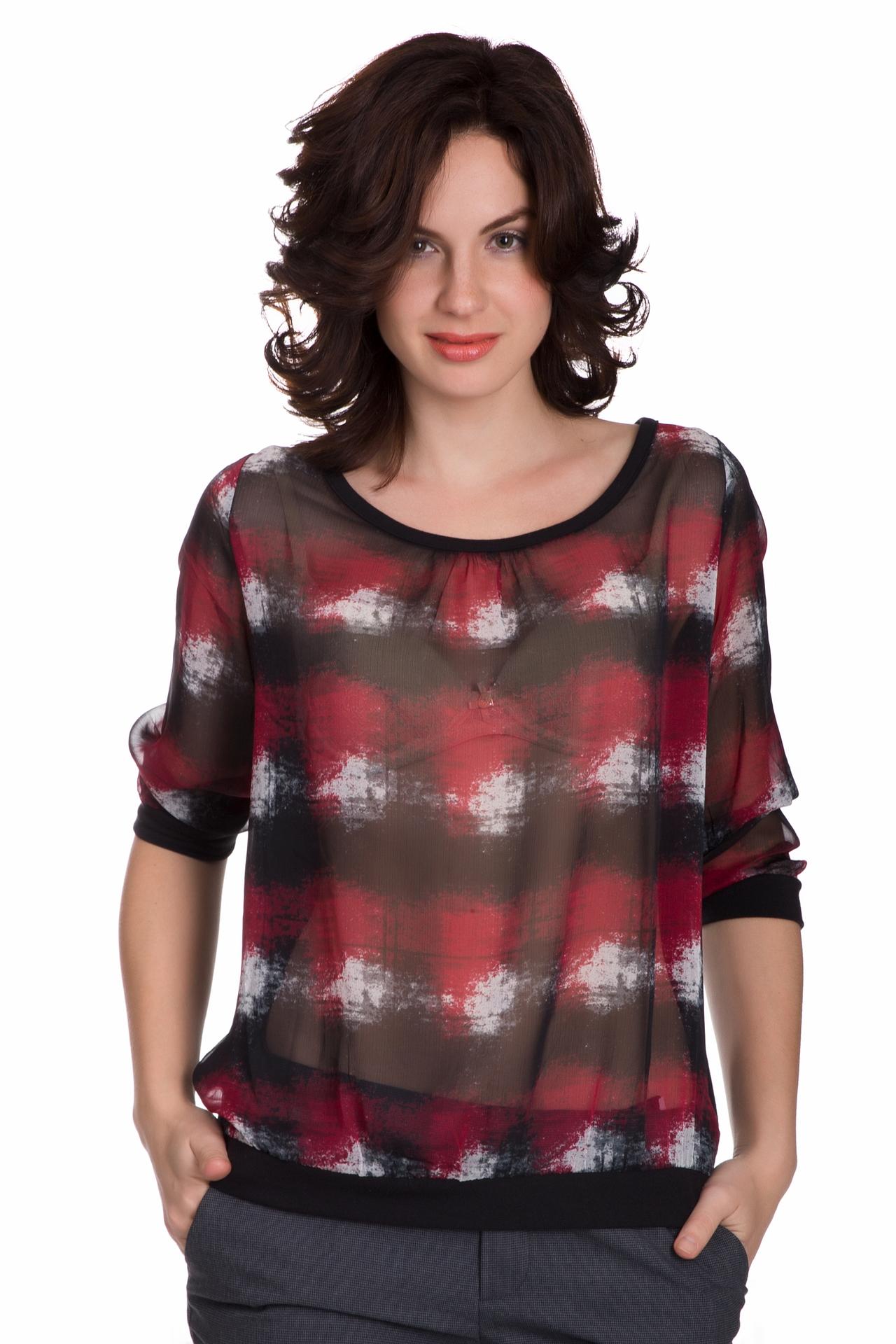 Утонченная женская блуза Comma черного цвета с белыми и бордовыми деталями. Это изделие состоит полностью из полиэстера. Блуза свободного кроя. Дополнено резинкой снизу. Рукава укороченные. Украшена разноцветным рисунком в большую клетку. Идеально смотрится с узкими брюками или юбками темных тонов.