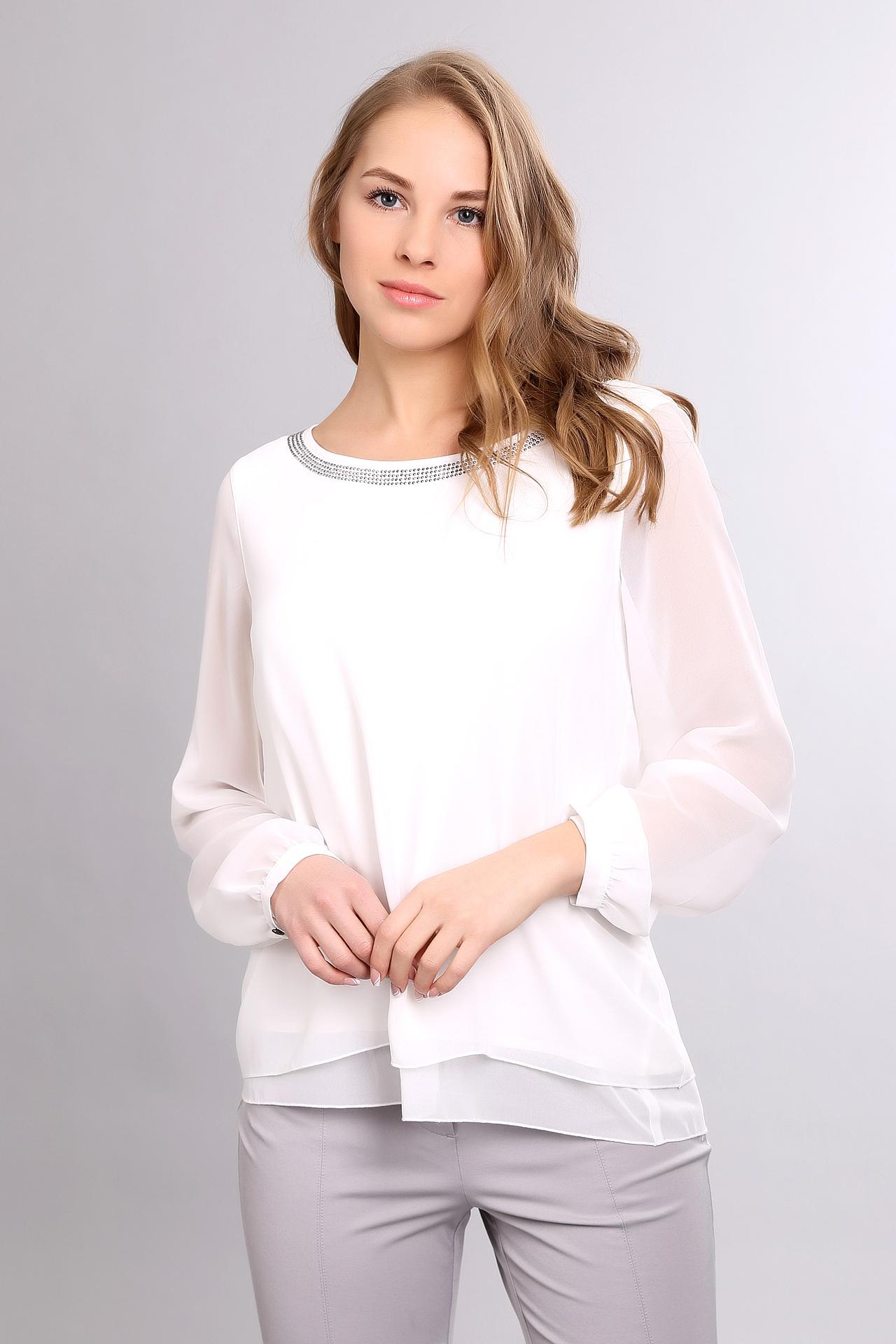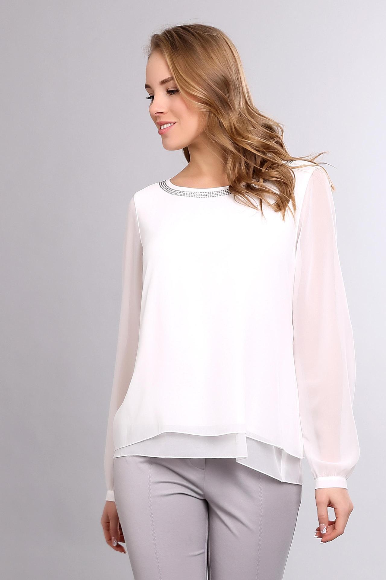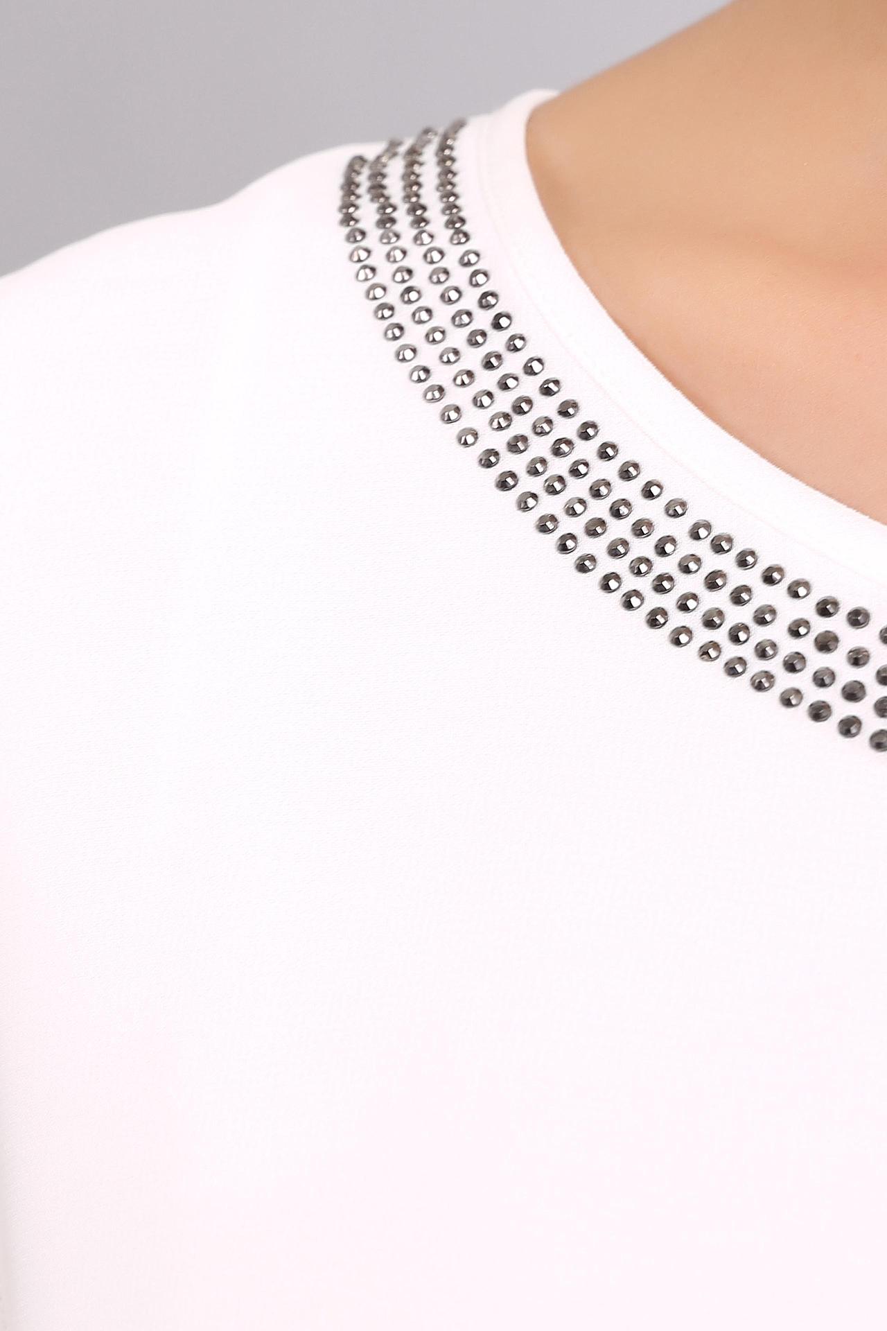 - Элегантный декор. Горловина украшена рядом мелких металлических элементов, добавляющих изделию современный шик и нотку блеска. Этот акцент делает блузу идеальной для вечерних выходов и торжественных мероприятий.