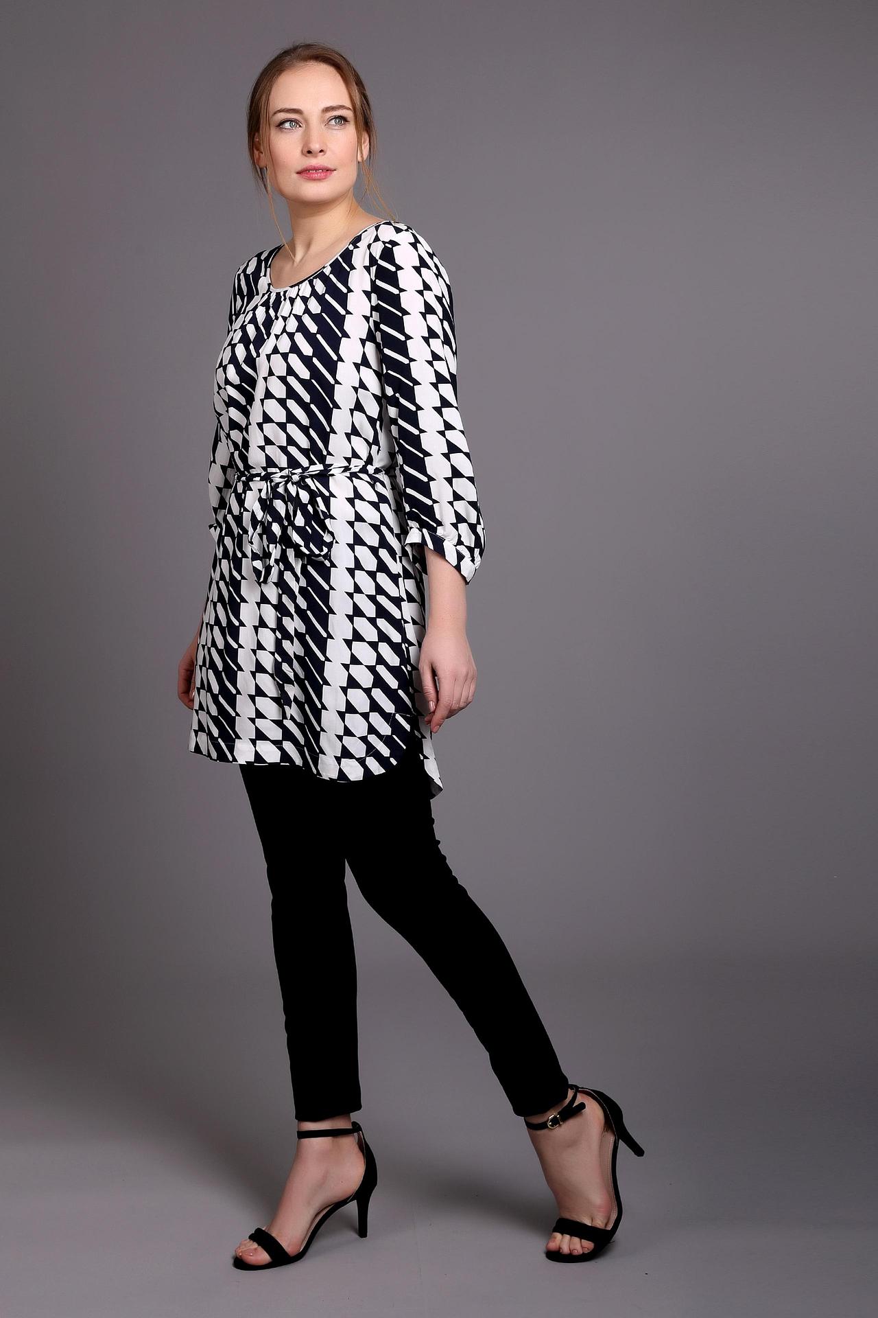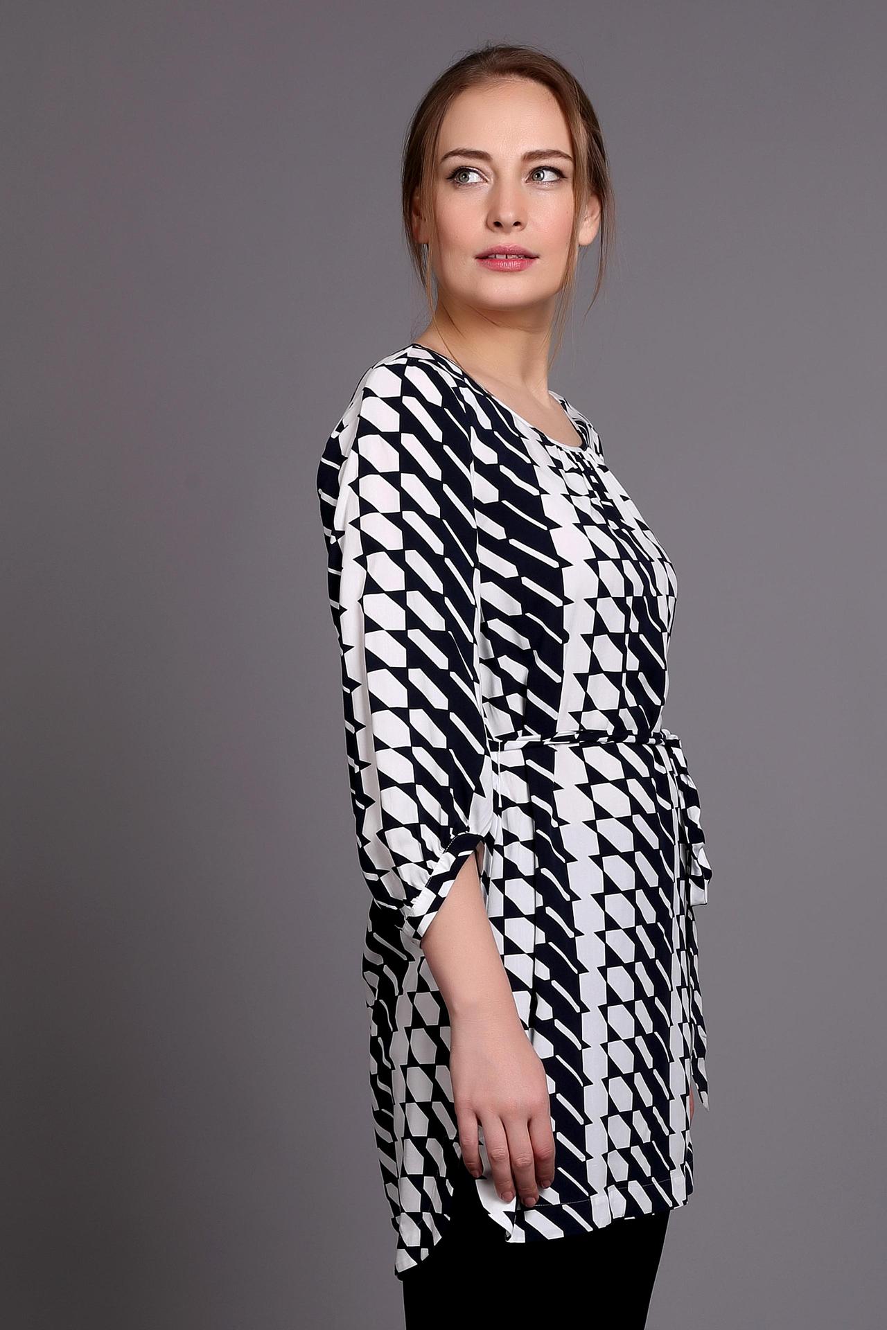 - Свободный крой с поясом. Прямой силуэт блузы-туники можно легко трансформировать с помощью съемного пояса, подчеркивая талию и создавая женственный акцент. Это позволяет адаптировать блузку под различные фигуры и стили.