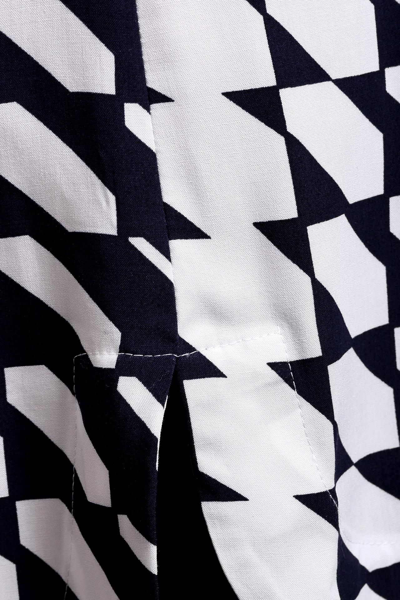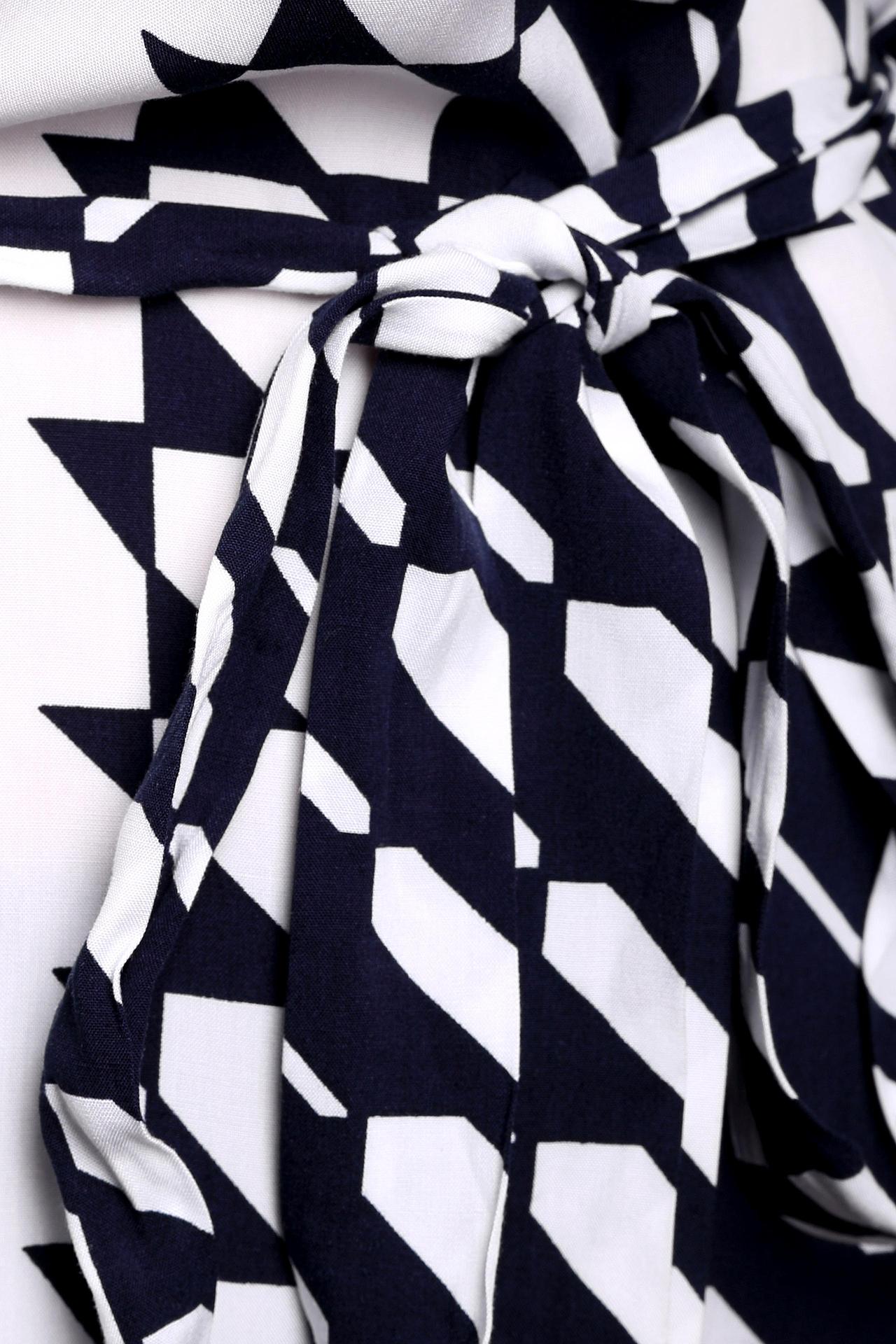 - Оригинальный геометрический принт. Контрастный узор из ломаных линий и ромбов привлекает внимание, добавляет уникальности изделию и делает блузу стильным акцентом вашего гардероба.