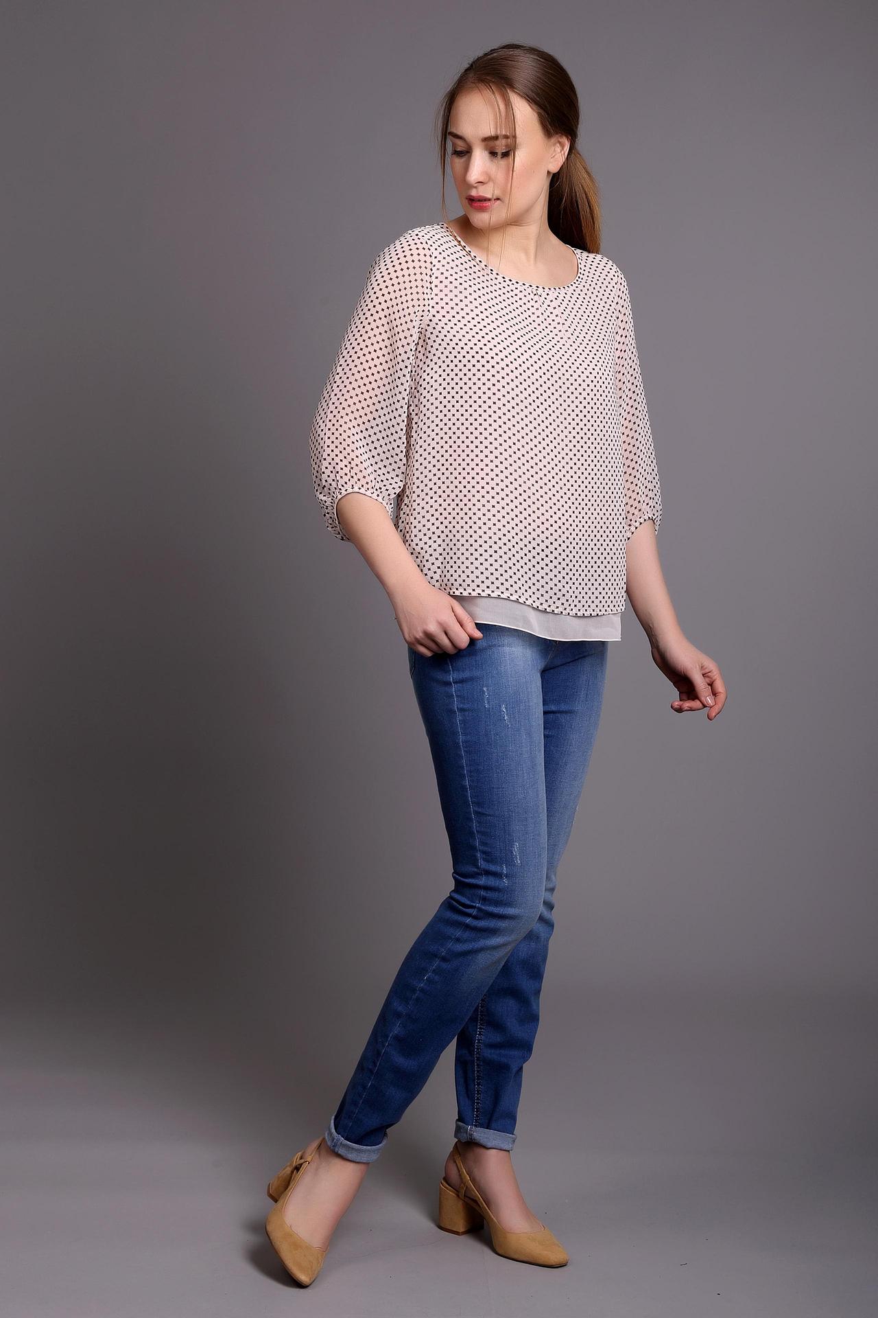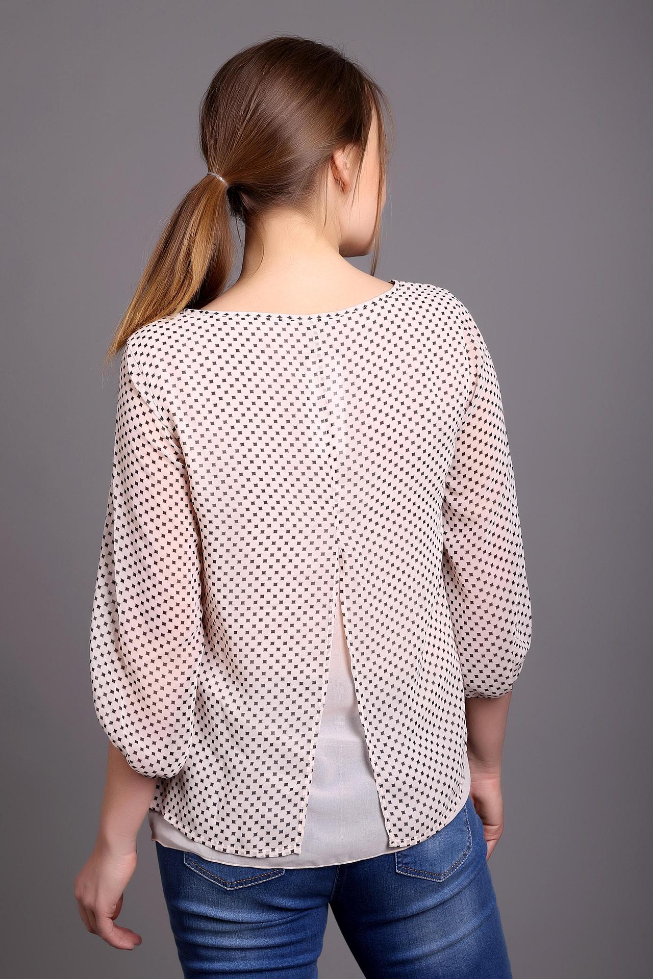 - Двухслойность: Блуза имеет двухслойную конструкцию, где верхний слой выполнен из принтованной ткани, а нижний – из однотонной, создавая интересный визуальный эффект и обеспечивая комфорт.