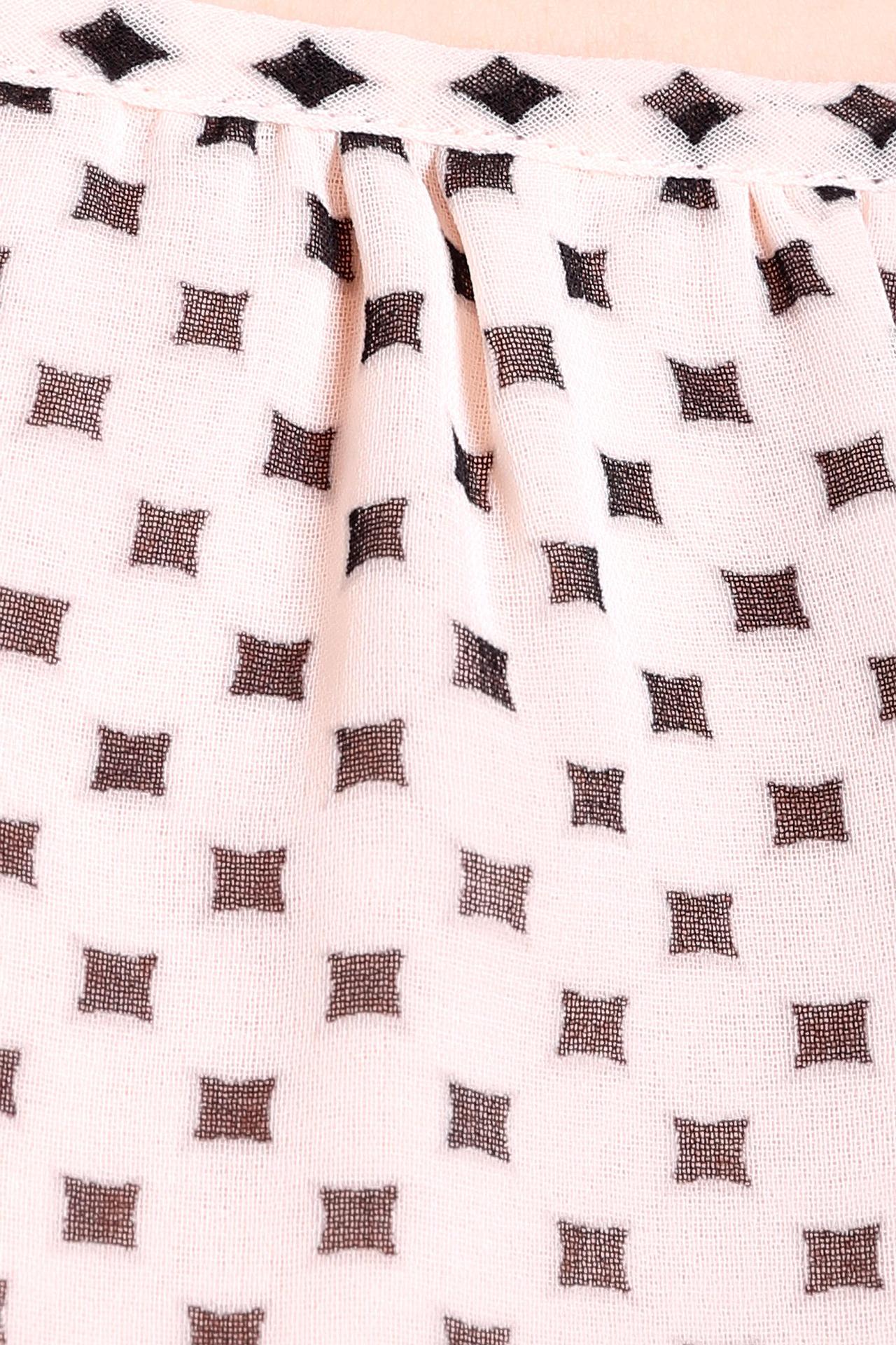 - Дизайн: Свободный крой и рукава длиной 3/4 придают образу непринужденность. Оригинальный принт в виде мелких ромбов добавляет изюминку и привлекает внимание.