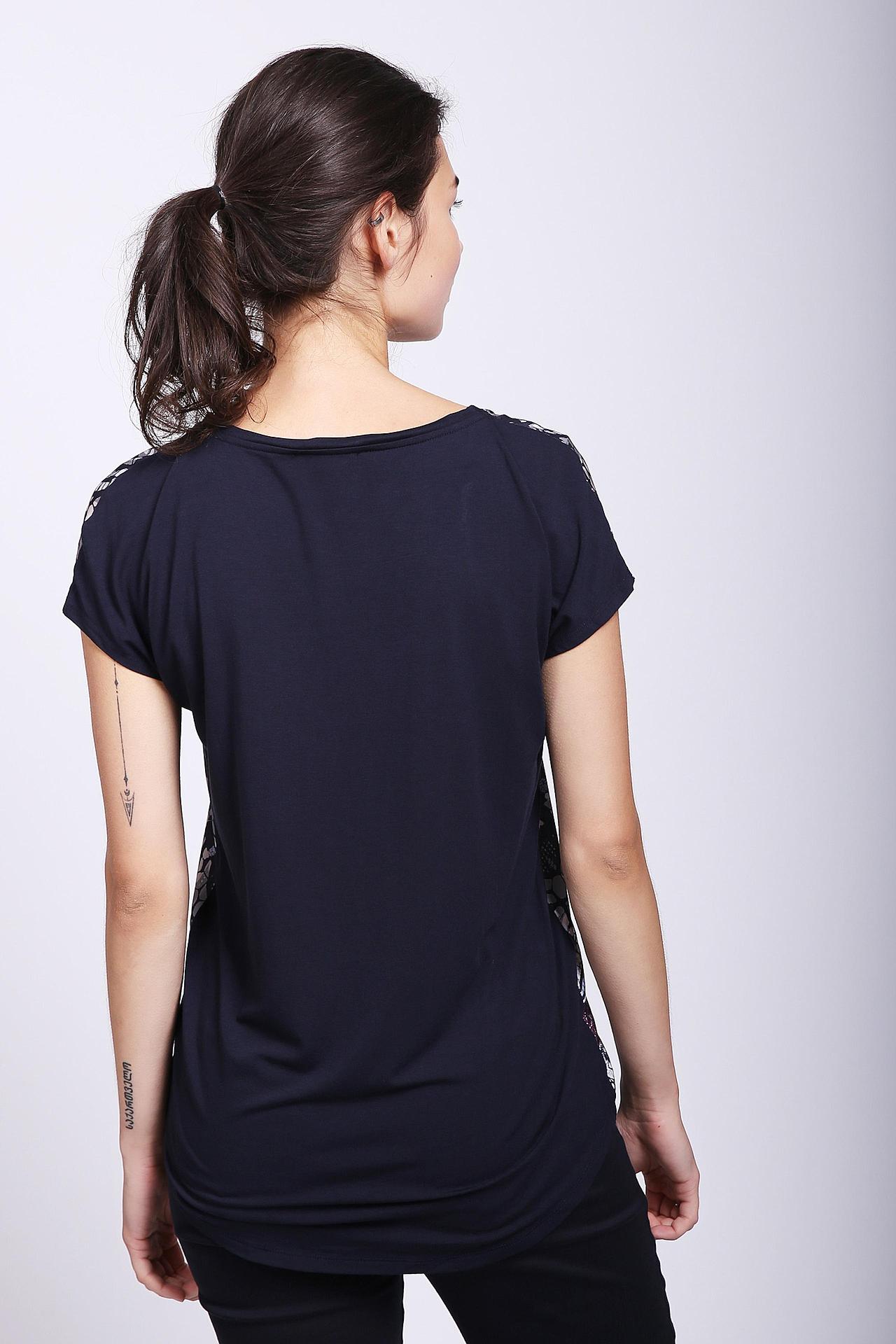 Блуза Comma тёмно-синяя с абстрактным принтом и узором