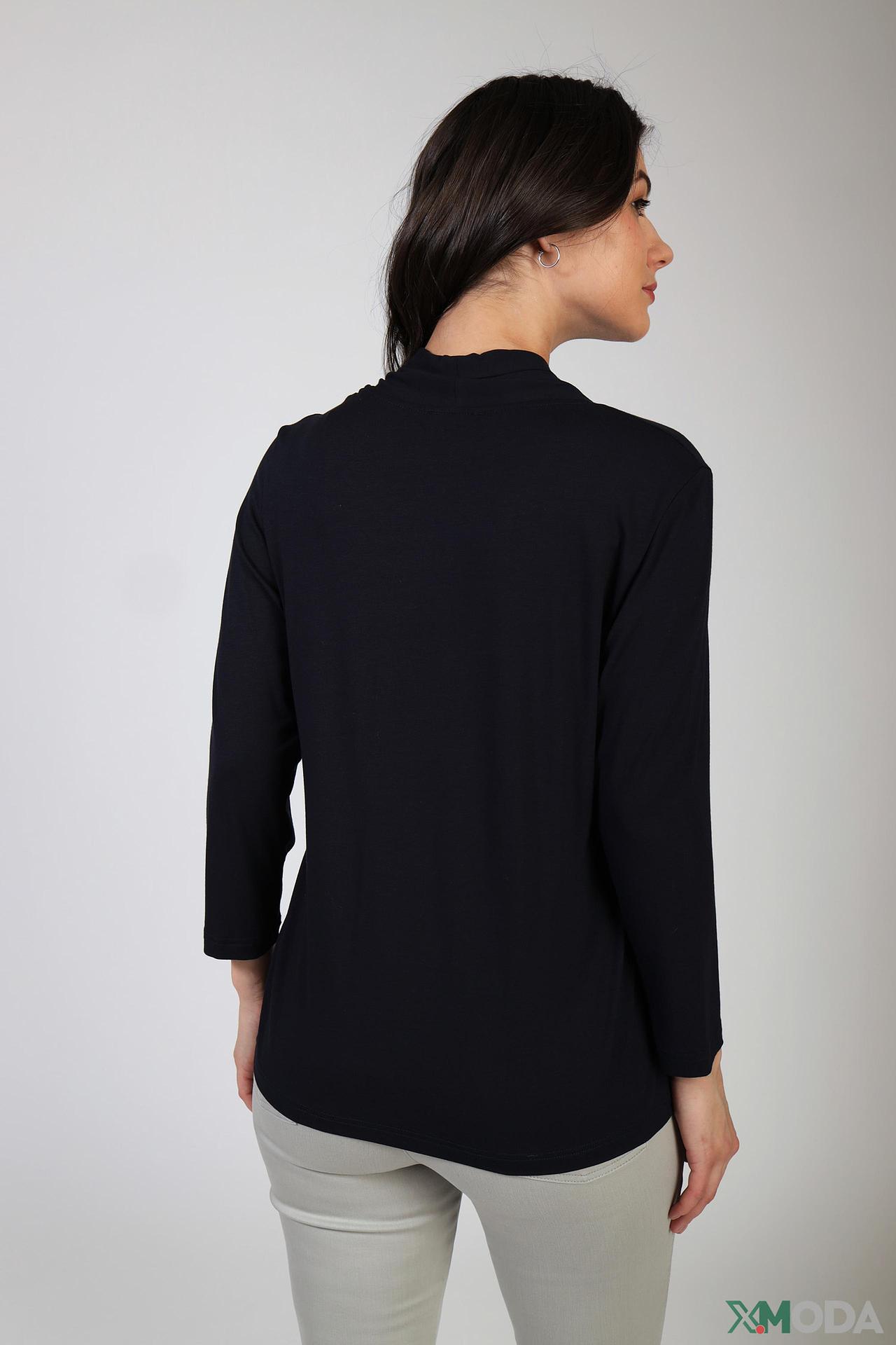 Элегантная блуза от бренда Erfo – идеальное дополнение к вашему повседневному и деловому гардеробу. Модель выполнена в классическом черном цвете, что делает ее универсальной и легко сочетаемой с различными предметами одежды. Глубокий V-образный вырез с небольшими драпировками и акцентным декором из страз у горловины придает изделию изысканность и женственность. Эта блуза станет основой для множества стильных образов.