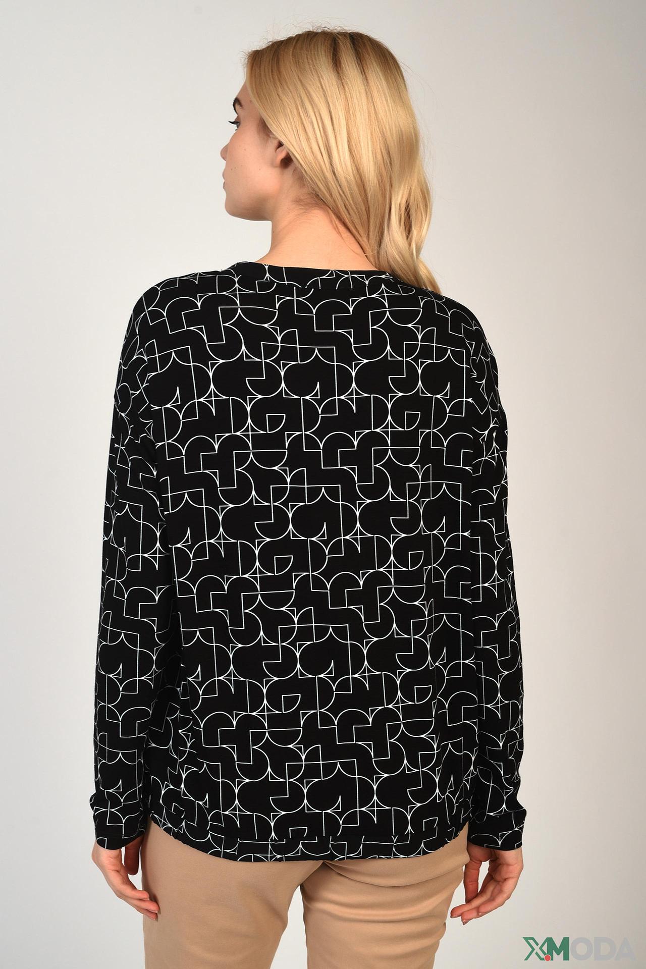 - Дизайн: Классический крой с длинным рукавом и V-образным вырезом. Привлекательный геометрический принт в черно-белых тонах.