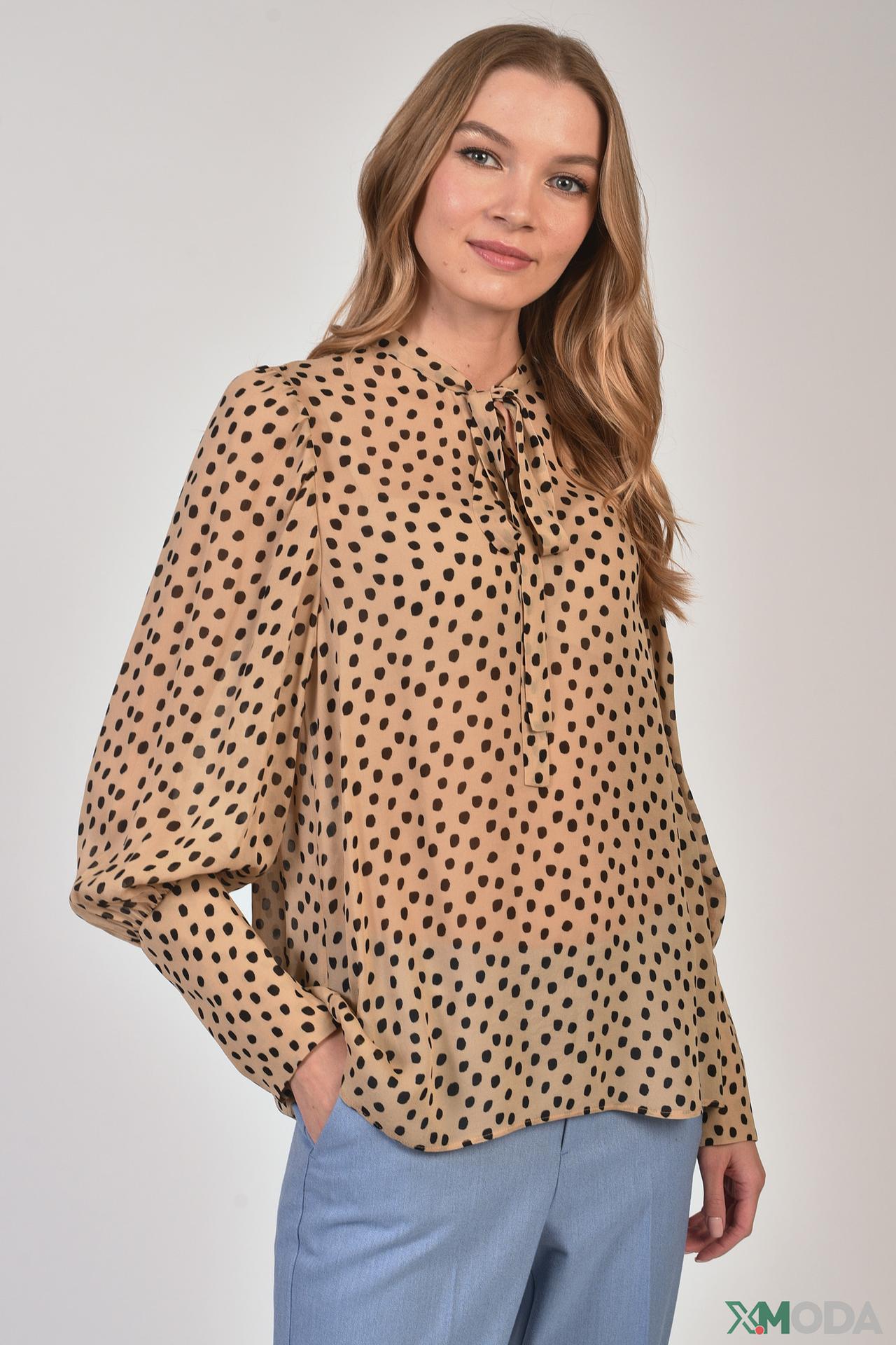 Элегантная женская блуза Luisa Cerano выполнена из 100% вискозы, обеспечивая легкую и приятную к телу текстуру. Бежевый оттенок с классическим черным горошком придает изделию универсальность и изысканный вид, идеально подходящий для создания как деловых, так и повседневных образов.