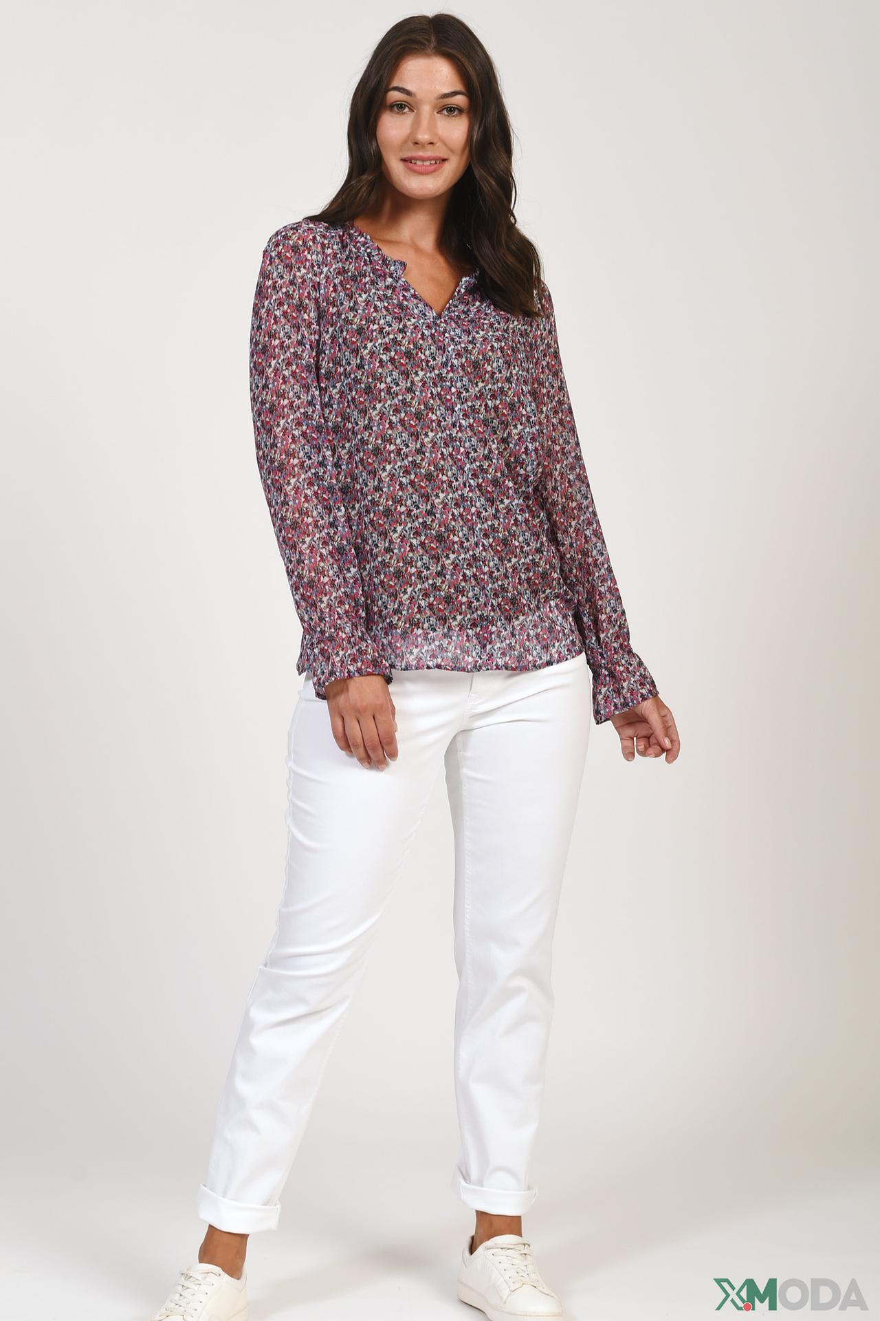 - Универсальный дизайн: Цветочный принт и классический крой позволяют носить блузу как с юбками, так и с брюками.