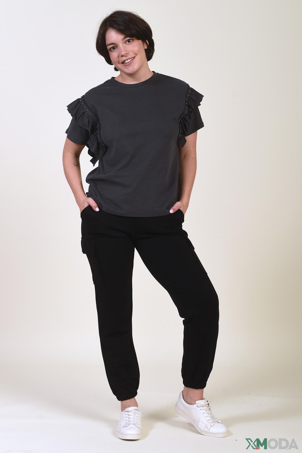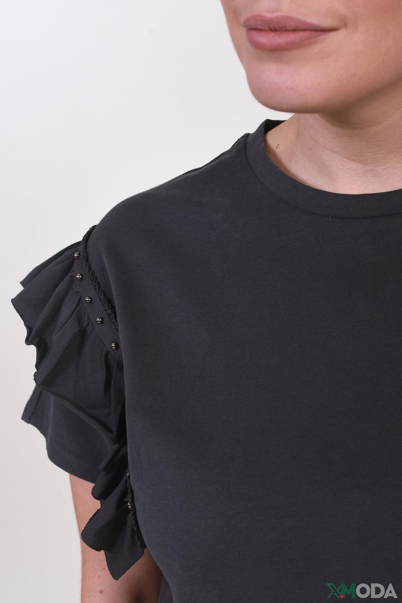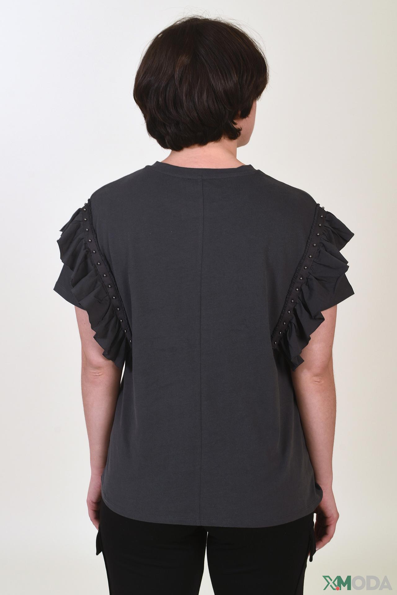 - Дизайн рукавов: Оригинальные рюши с декоративными заклепками добавляют изюминку и делают образ более женственным и трендовым.