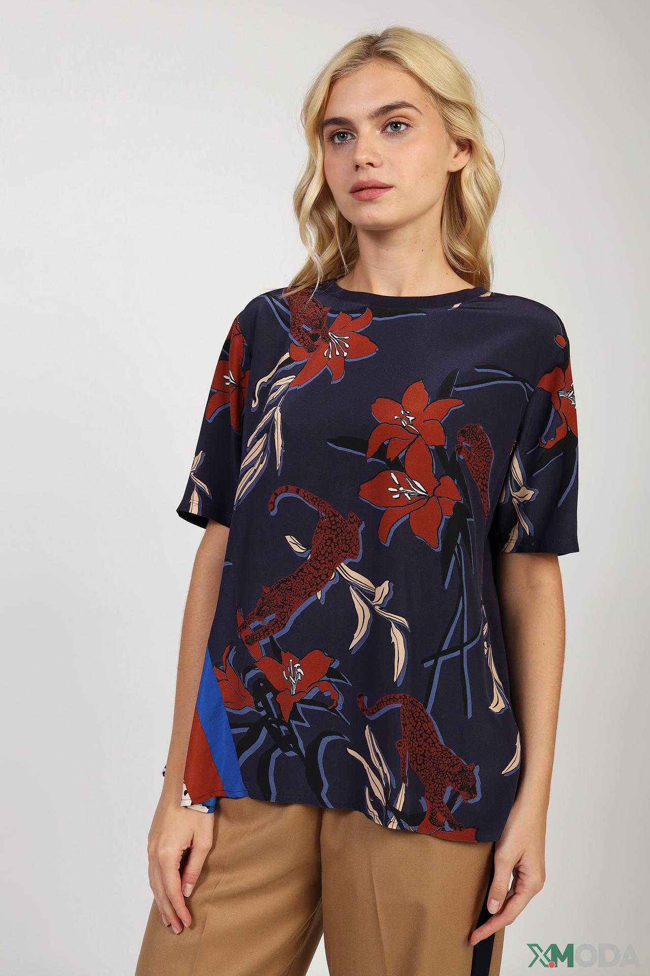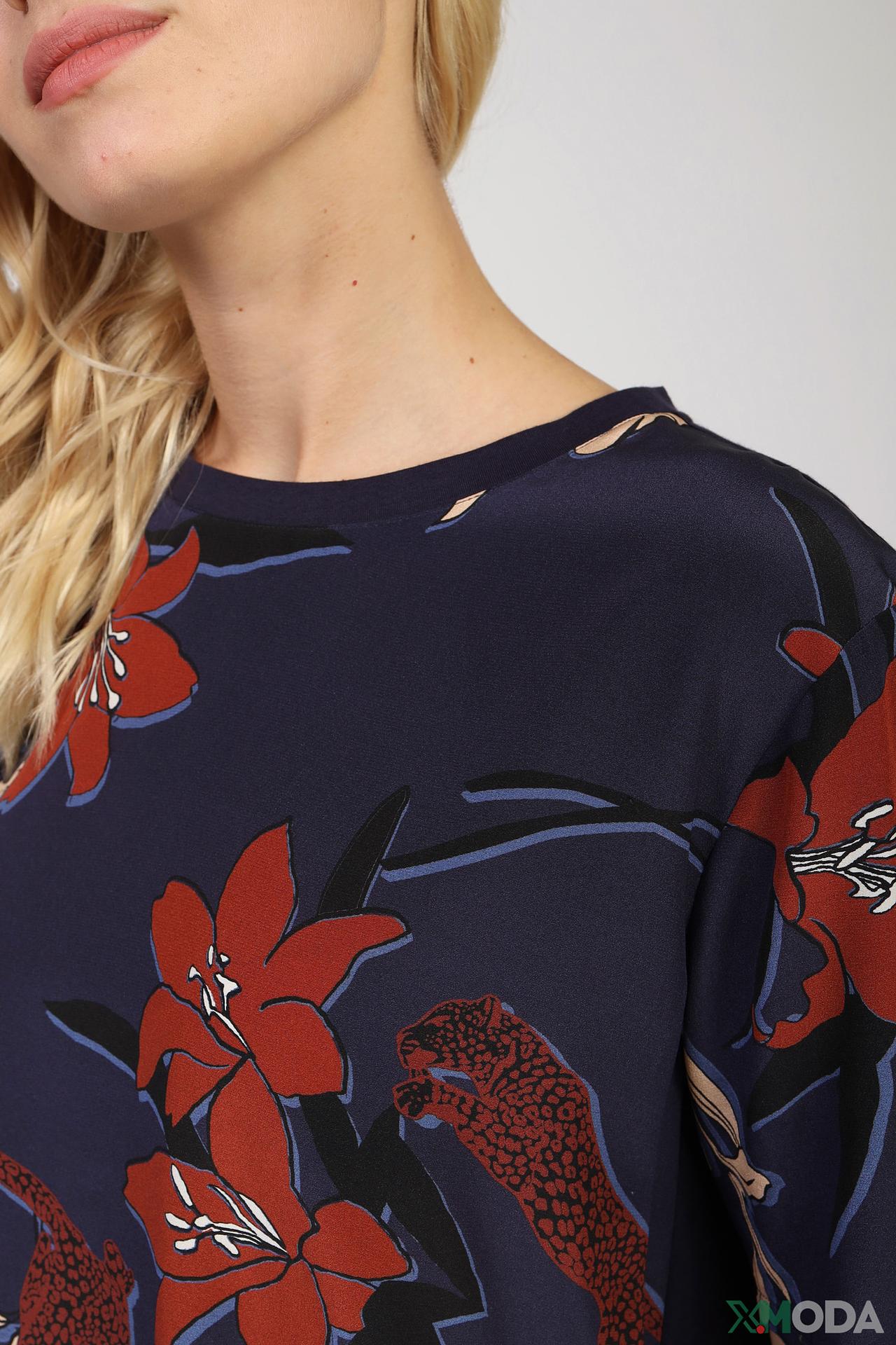 - Уникальный дизайн: Оригинальный цветочный принт с анималистичными мотивами придает блузе неповторимый и запоминающийся вид.