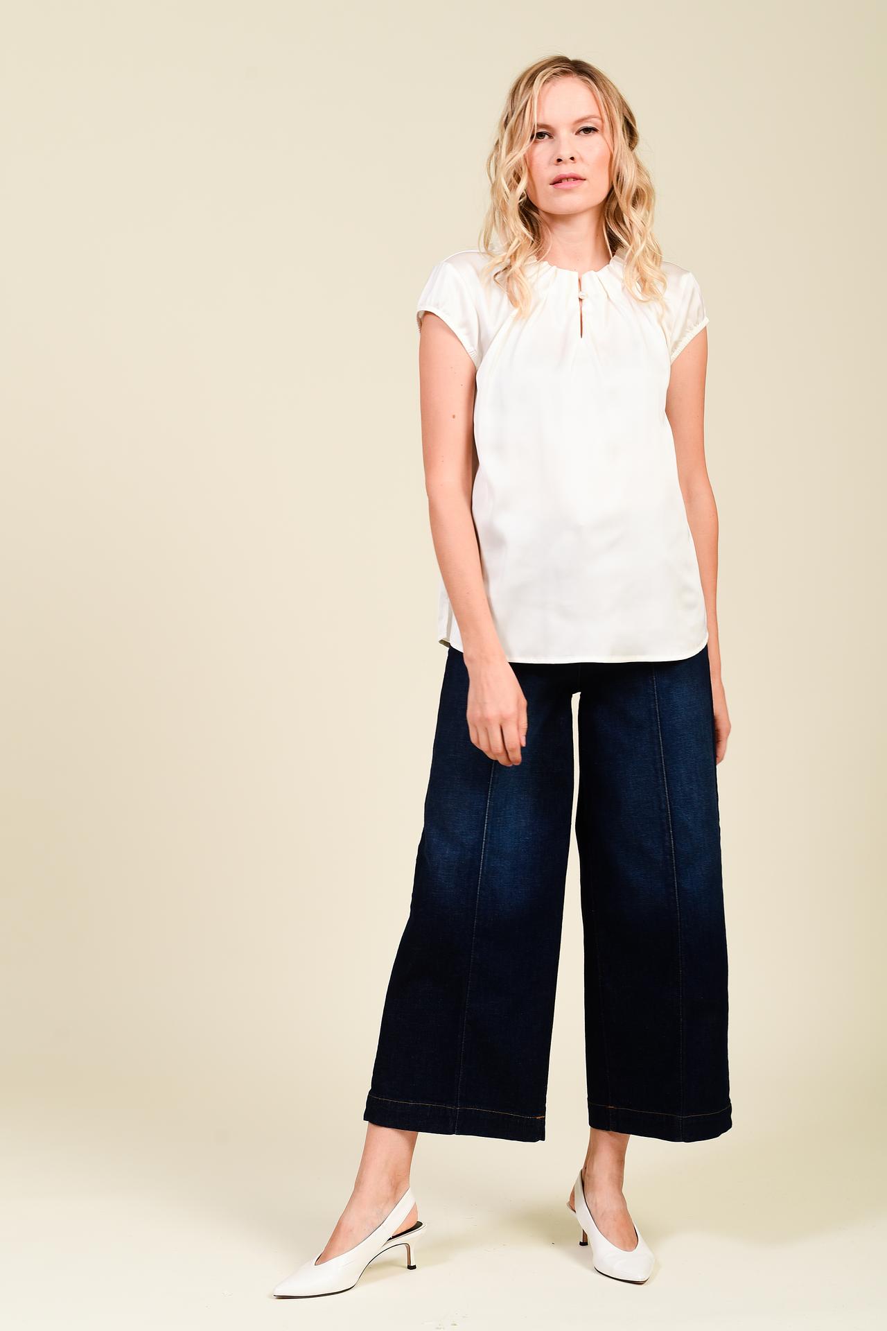 Блуза Pezzo белая с жемчужной пуговицей у ворота