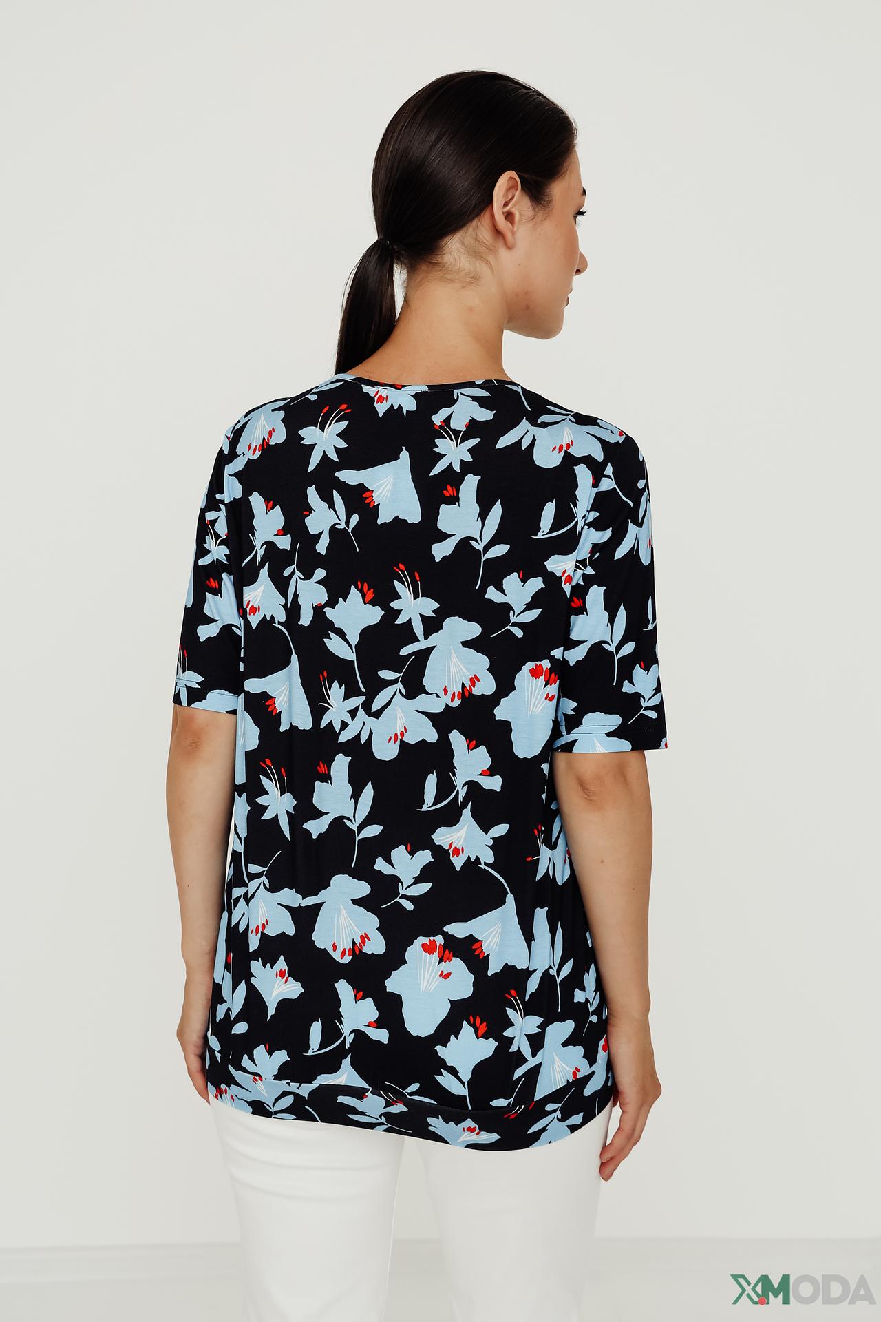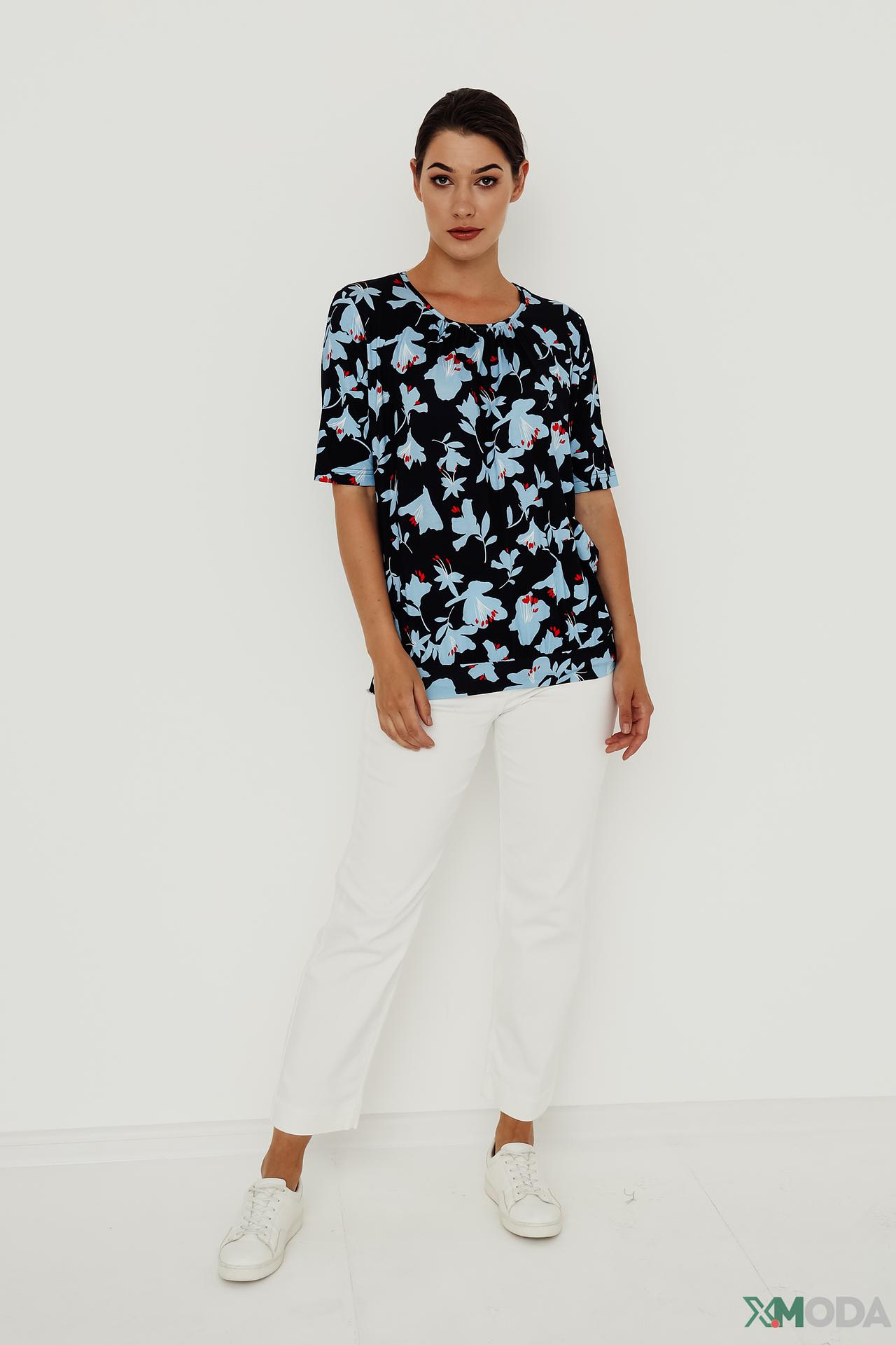 Изысканная блуза от Erfo, выполненная из 100% вискозы, станет прекрасным дополнением вашего гардероба. Лёгкая и приятная к телу ткань обеспечит комфорт в течение всего дня, а стильный цветочный принт добавит образу женственности и очарования. Эта блуза идеально подходит для создания как повседневных, так и более элегантных образов. Блузка женская с коротким рукавом и круглым вырезом горловины.
