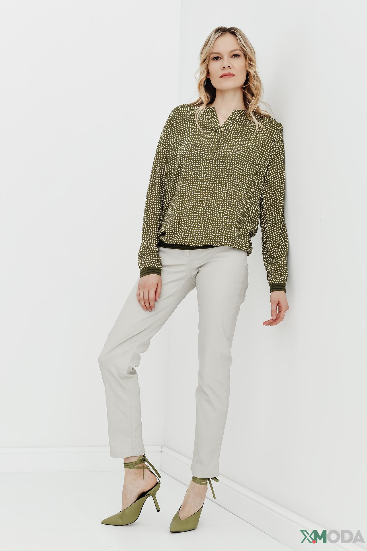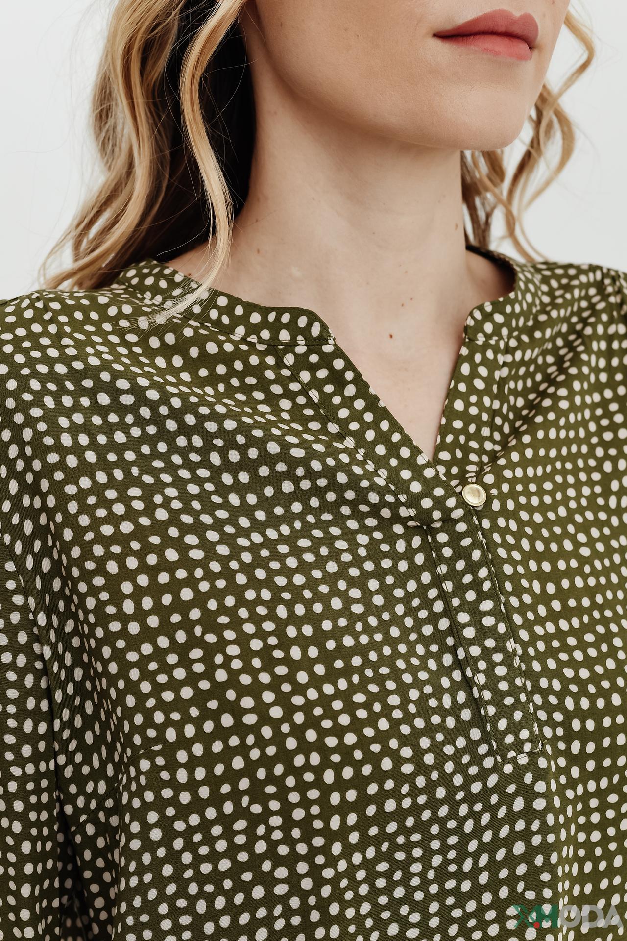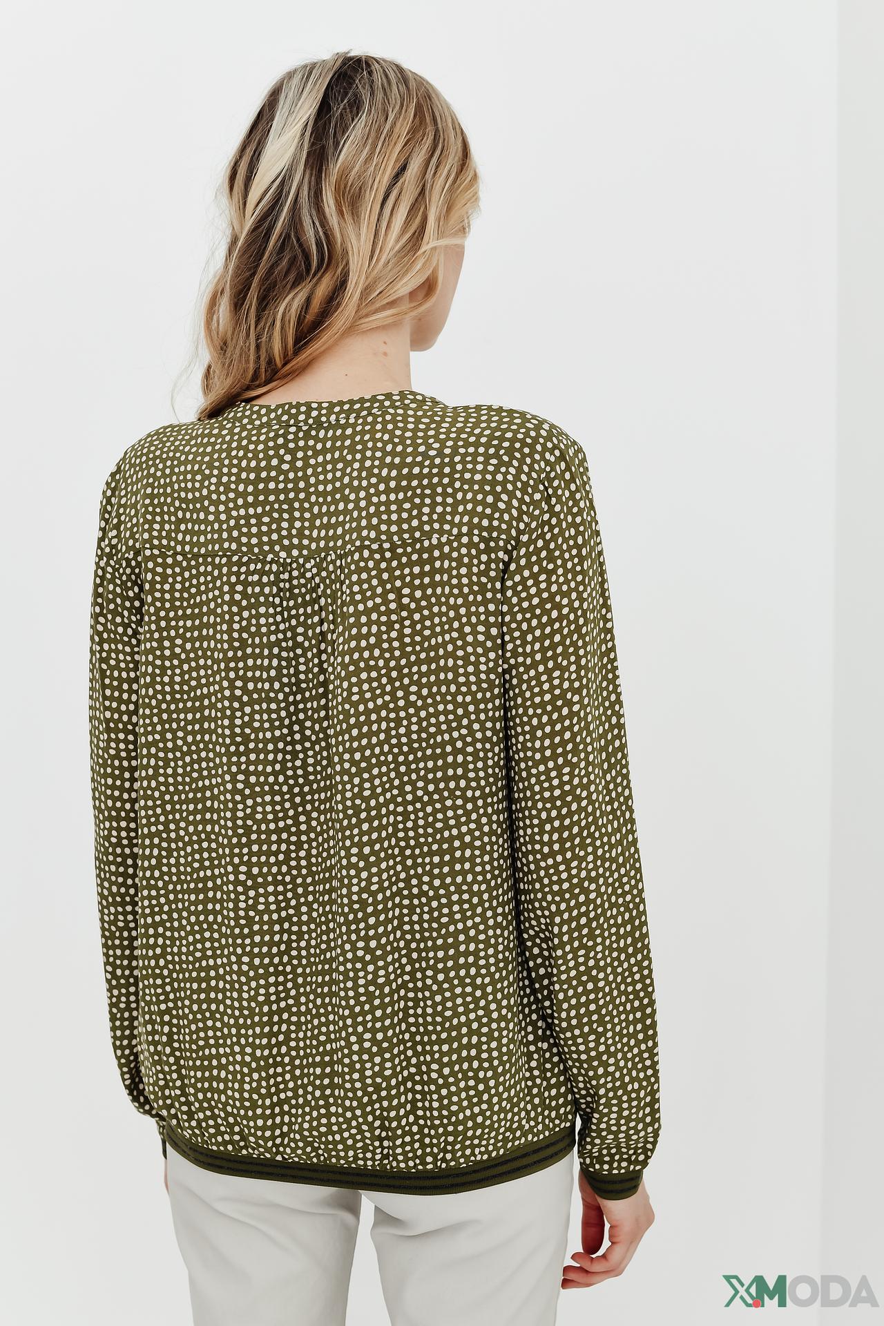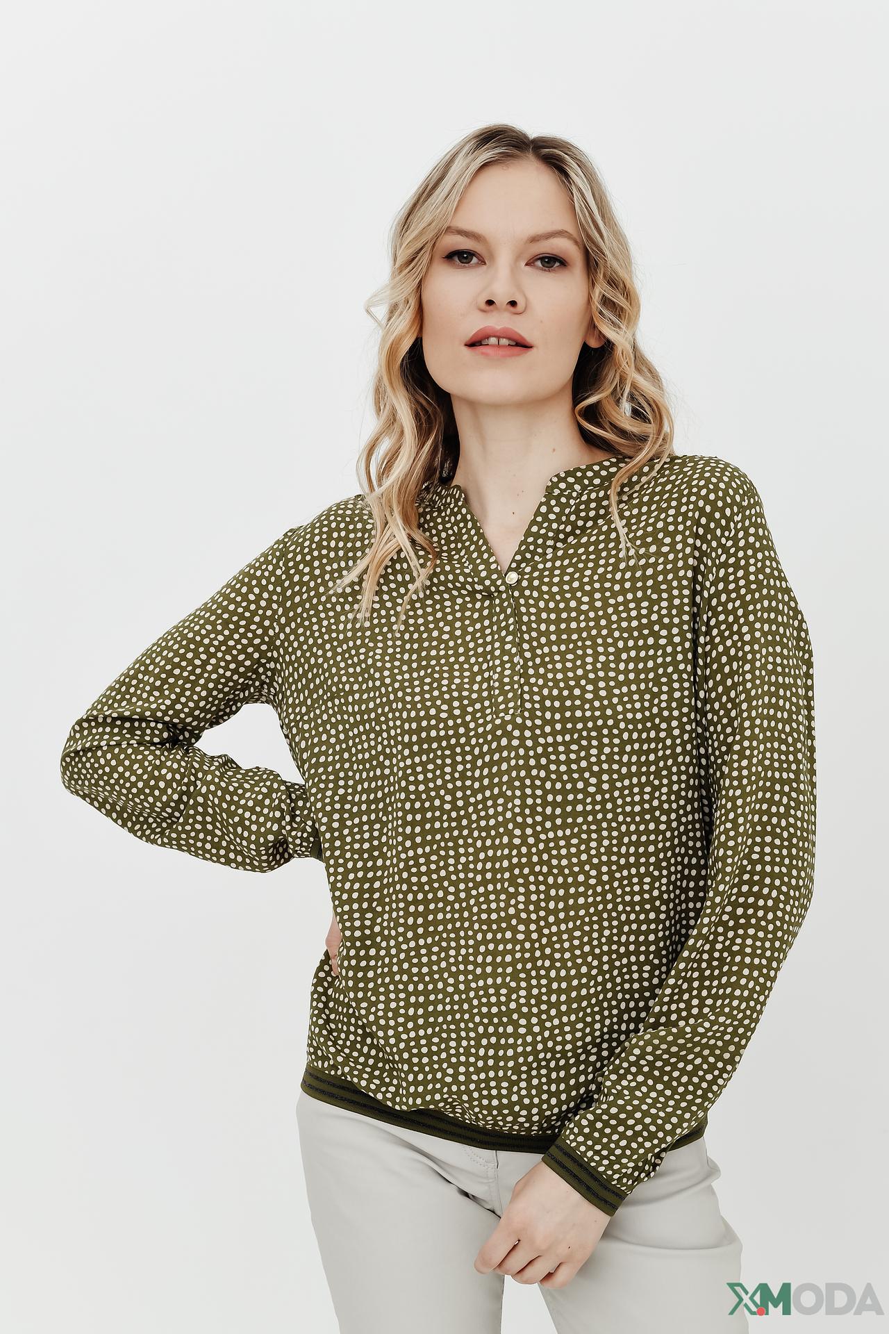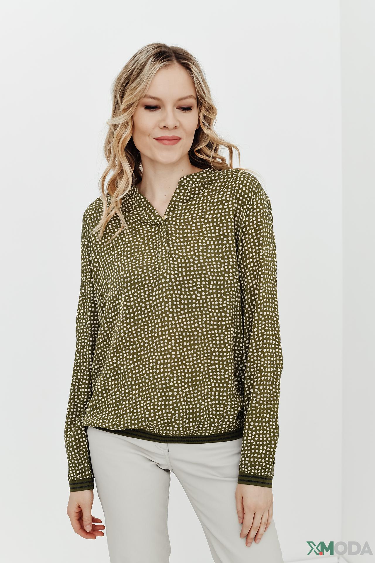 Блуза женская зеленого цвета от бренда Betty Barclay. Модель выполнена прямым фасоном. Изделие дополнено округлым воротом с V - образным вырезам, застежка на пуговицу, втачными, длинными рукавами, задней кокеткой. Рукава и низ блузы обшиты эластичной лентой. Ткань блузы имеет разноцветный принт. Состав: 100% вискозы. Комбинировать можно с различными брюками.
