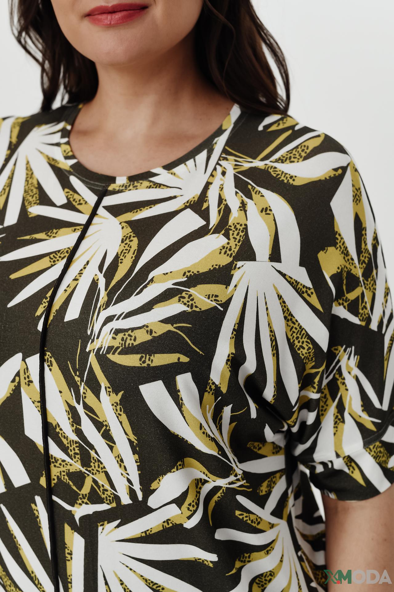 - Привлекательный дизайн: Блуза украшена эффектным тропическим принтом, который приковывает взгляды и подчеркивает индивидуальность. Чёткие линии и гармоничные цветовые сочетания делают эту модель по-настоящему стильной.