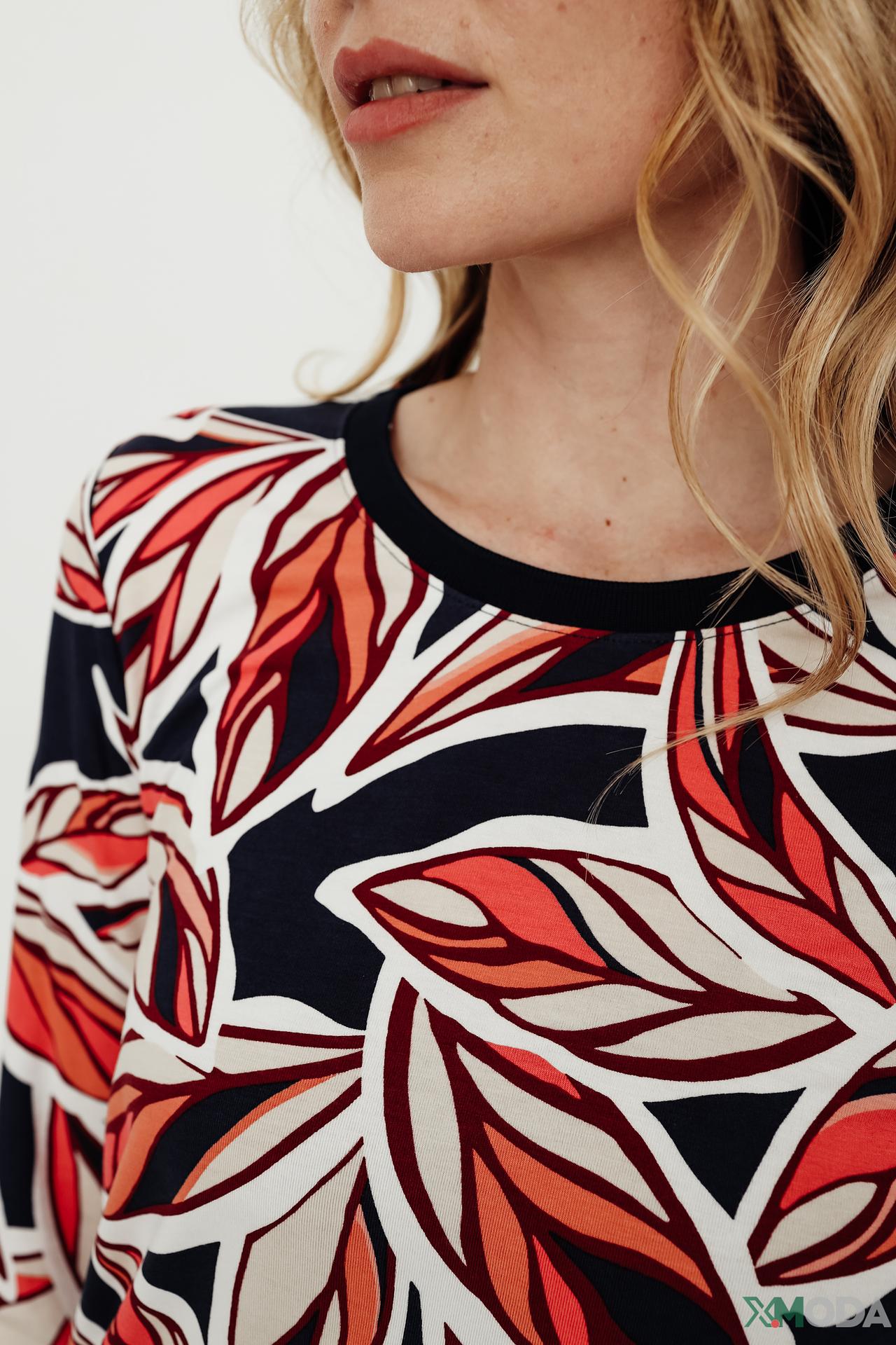 - Универсальный дизайн. Яркий принт делает лонгслив интересным акцентом в образе, при этом легко сочетается с другой одеждой.