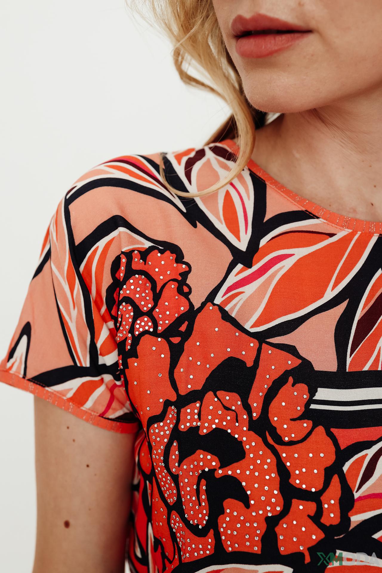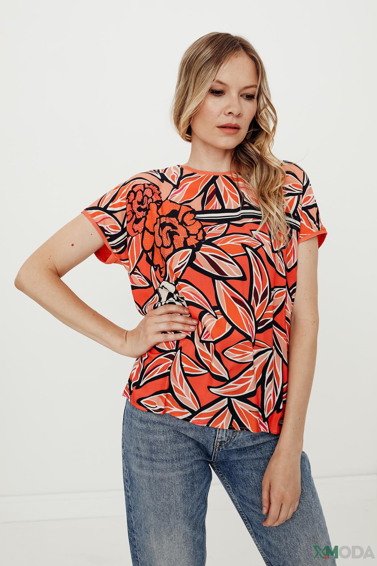 - Яркий дизайн. Блузка с цветочным принтом выглядит модно и привлекательно, подчеркивая вашу индивидуальность.