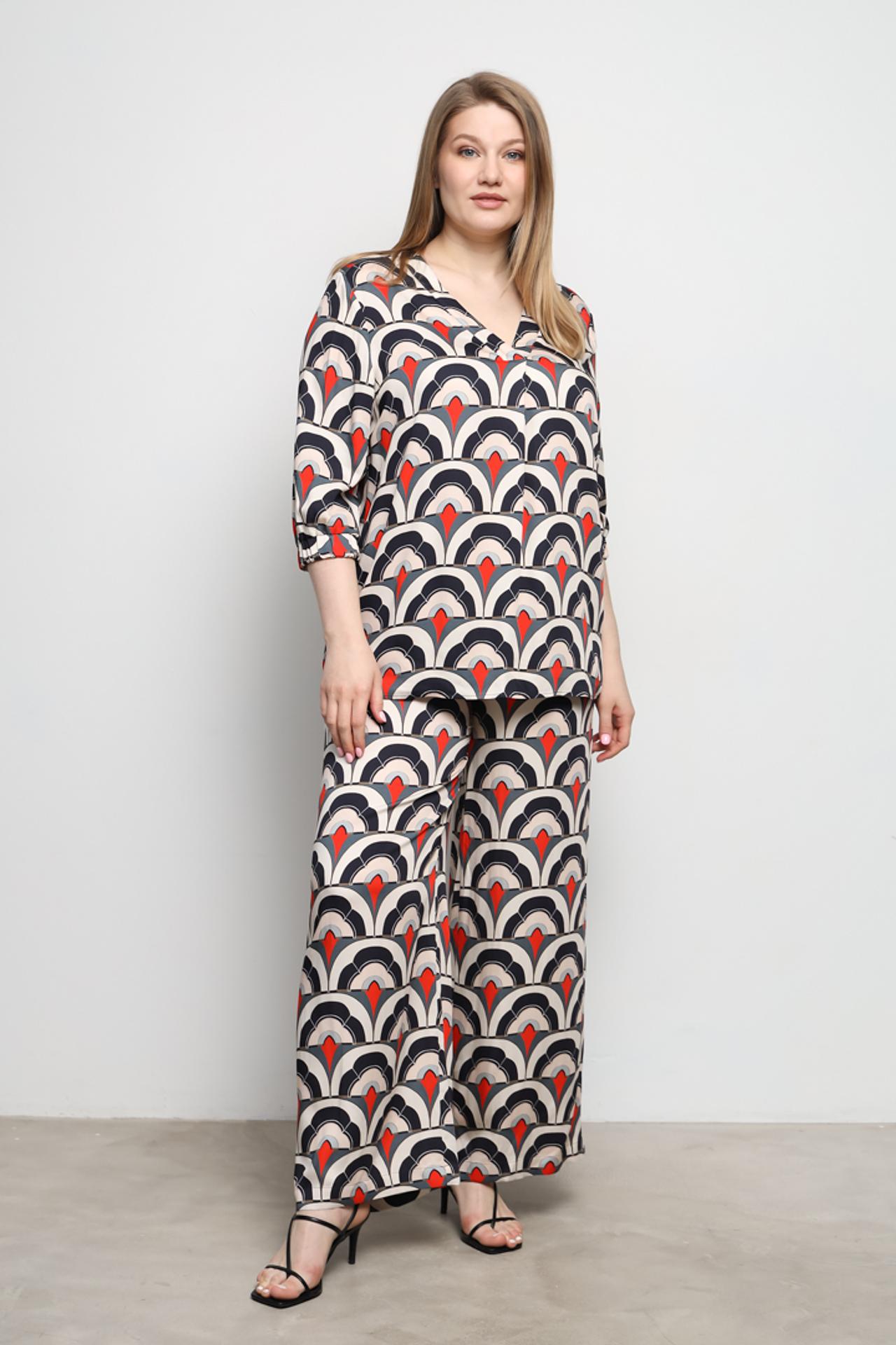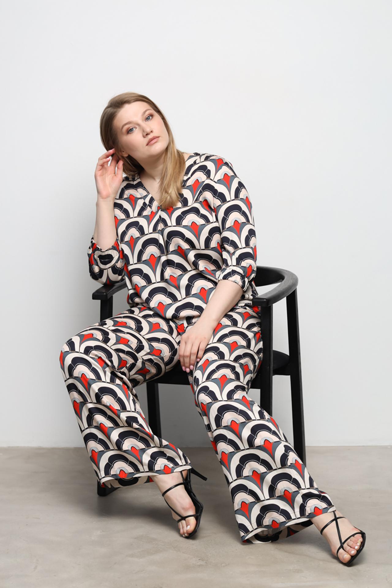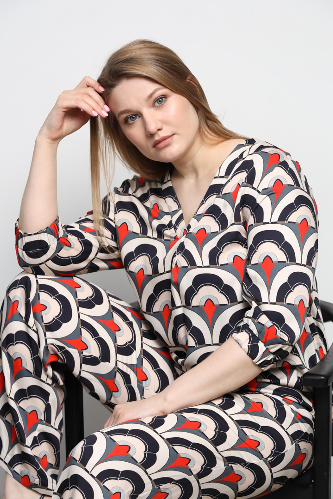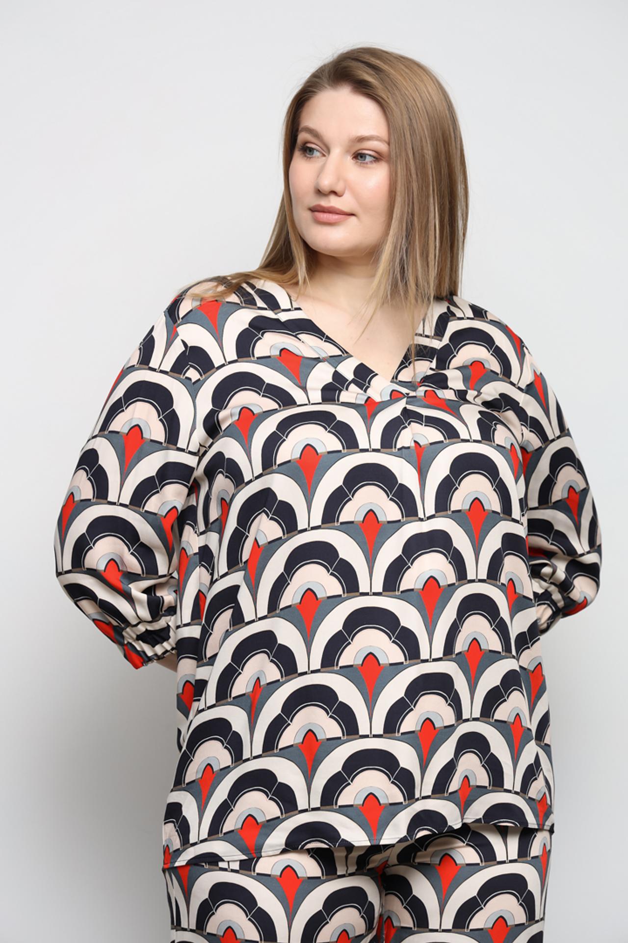- Универсальный принт. Оригинальный геометрический узор позволяет легко сочетать блузу с различными элементами гардероба.