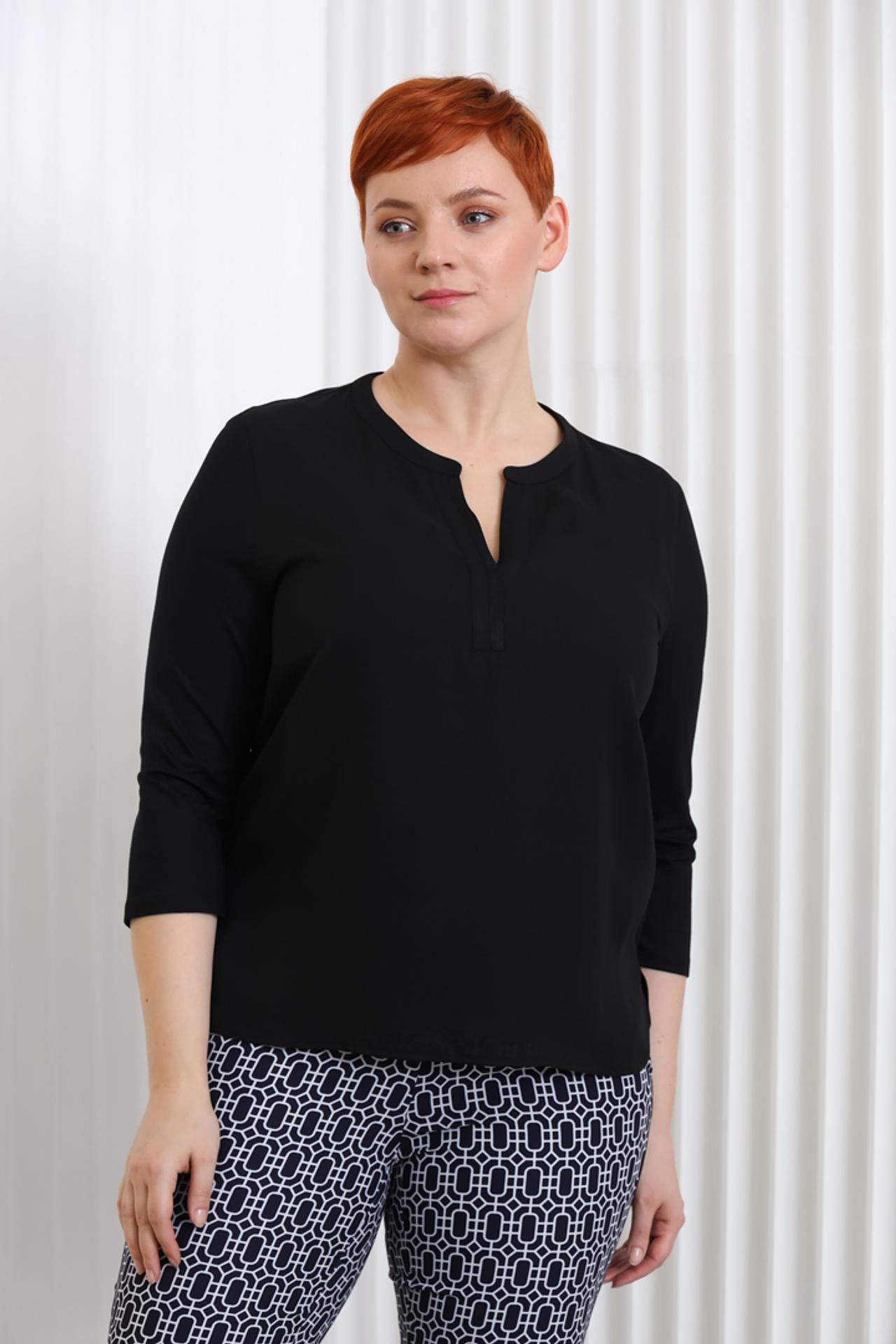 - Дизайн: Классический крой с V-образным вырезом и рукавами три четверти. Лаконичный дизайн блузы делает ее универсальной, легко сочетающейся с различными элементами одежды.
