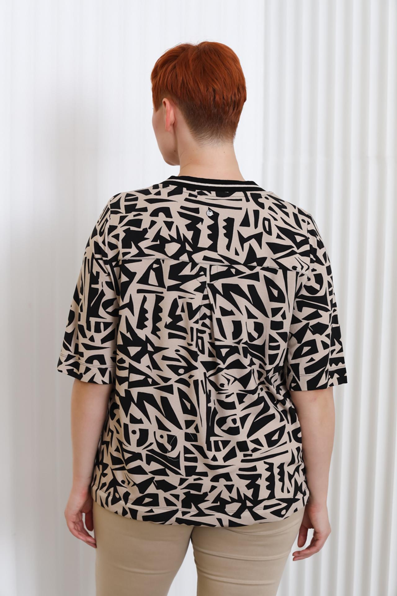 - Оригинальный принт: Привлекательный и современный принт делает блузу выразительной и запоминающейся.