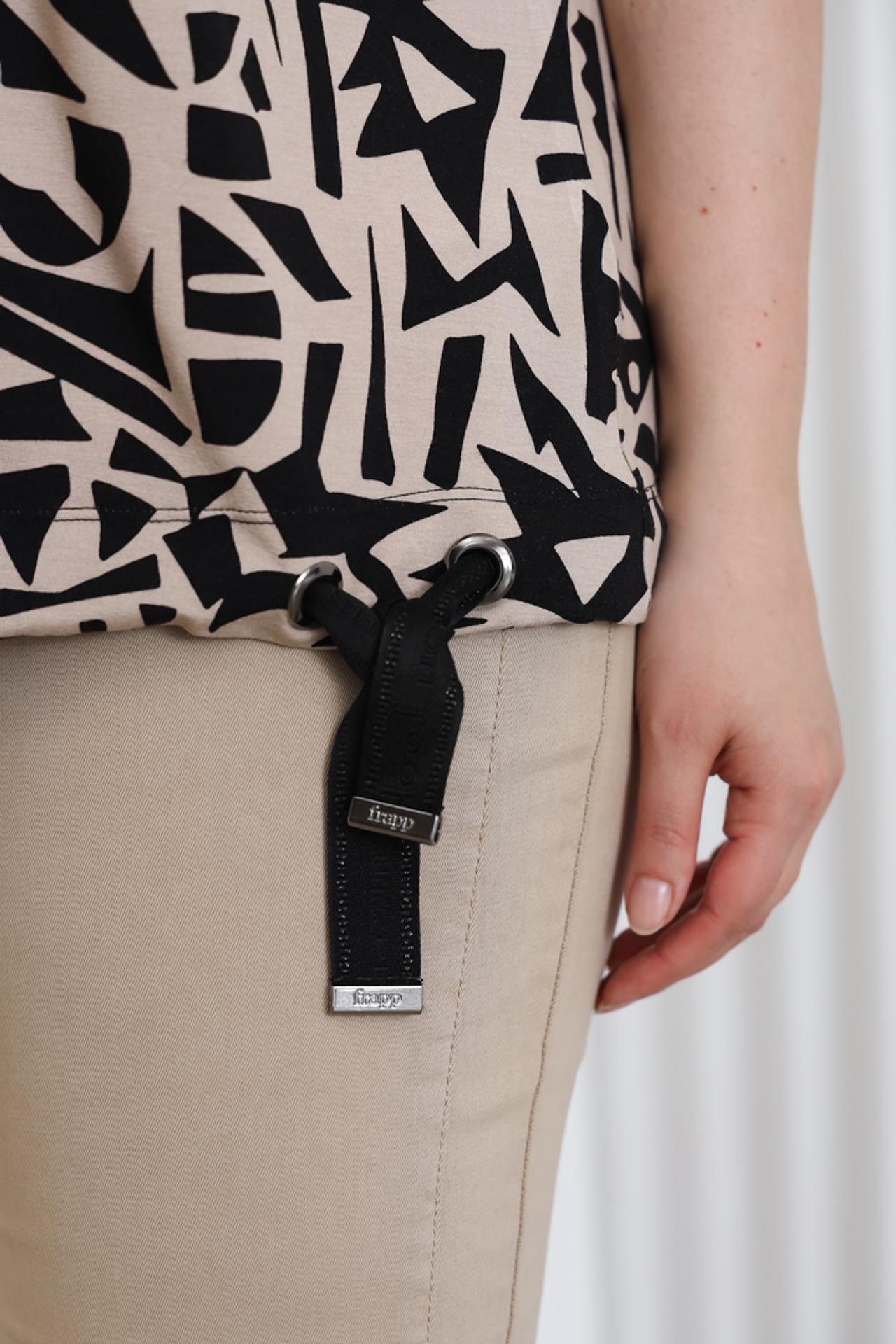 Эта стильная блуза от Frapp станет ярким акцентом в вашем гардеробе. Изготовленная из мягкой и приятной к телу ткани с составом 90% вискозы и 10% эластана, она обеспечит комфорт и свободу движений в течение всего дня. Оригинальный принт добавляет образу индивидуальности и делает блузу универсальной для различных случаев.