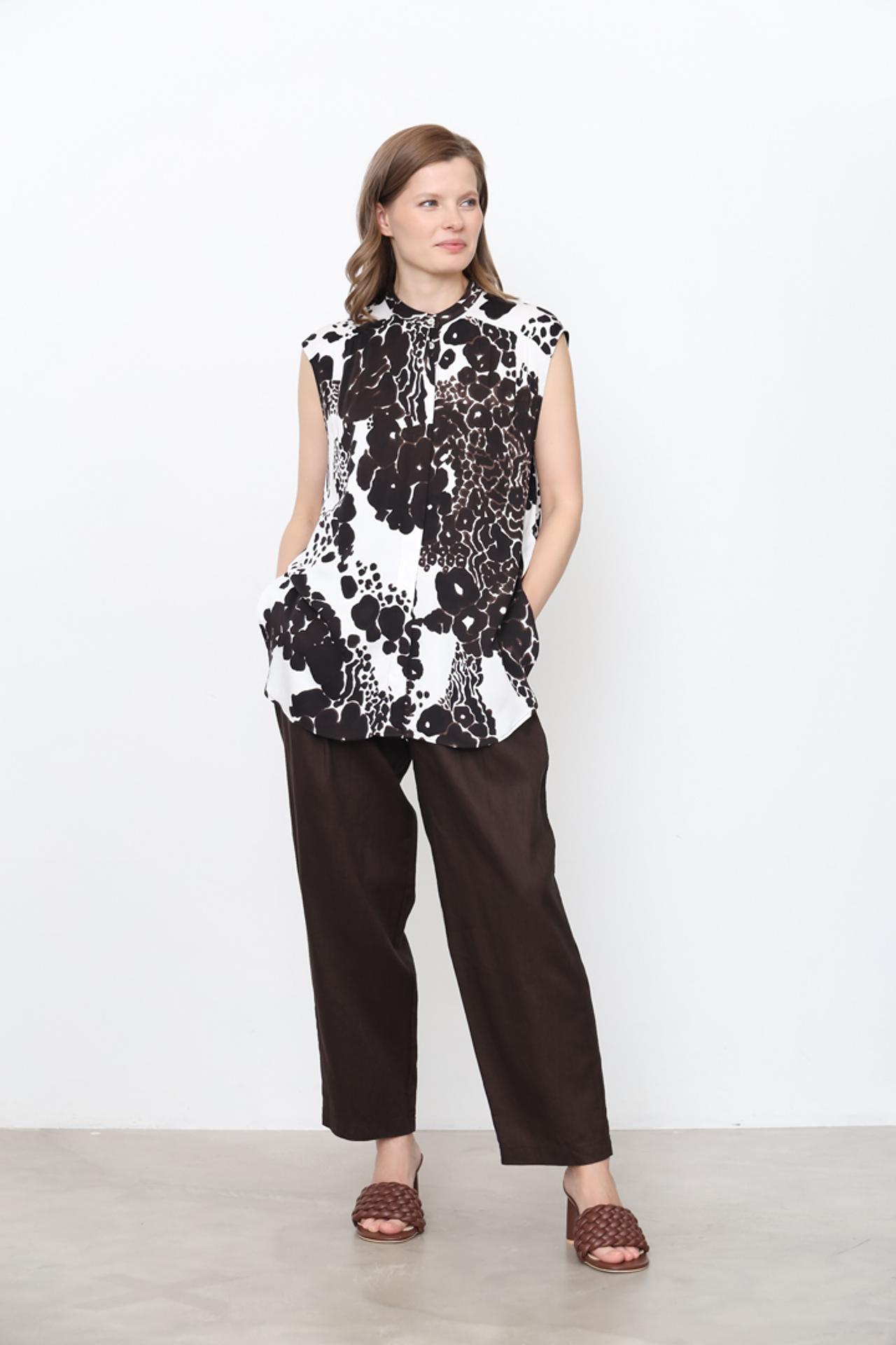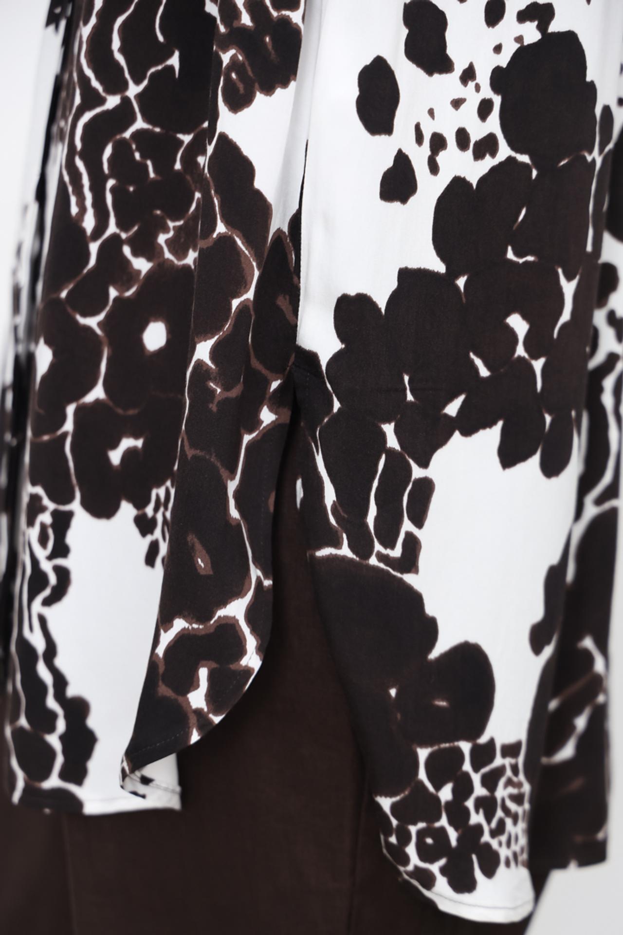 Элегантная блуза Marc Aurel, выполненная из 100% вискозы, станет прекрасным дополнением к вашему гардеробу. Лёгкая и дышащая ткань обеспечивает комфорт в течение всего дня. Оригинальный чёрный принт на белом фоне добавляет образу изысканности и стиля. Эта блуза идеально подходит для создания как деловых, так и повседневных образов.