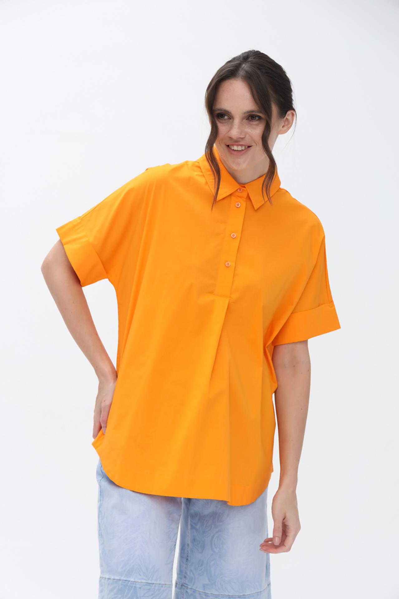 Стильная женская рубашка с коротким рукавом от бренда Oui. Эта рубашка, выполненная из высококачественного материала (95% хлопок, 5% эластан), обеспечивает комфорт и свободу движений. Современный дизайн и яркий оранжевый цвет делают её отличным выбором для создания модного и запоминающегося образа. Идеально подходит для повседневной носки и особых случаев.