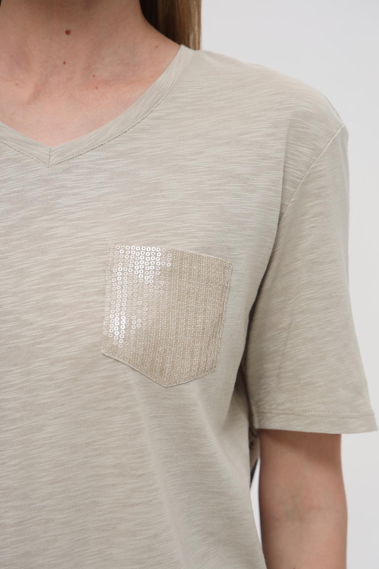 Особый акцент блузе придаёт карман, декорированный пайетками, и оригинальный принт на спине. Идеально подходит для повседневной носки, а также для особых случаев. Подчеркните свой стиль и индивидуальность с этой модной блузой.