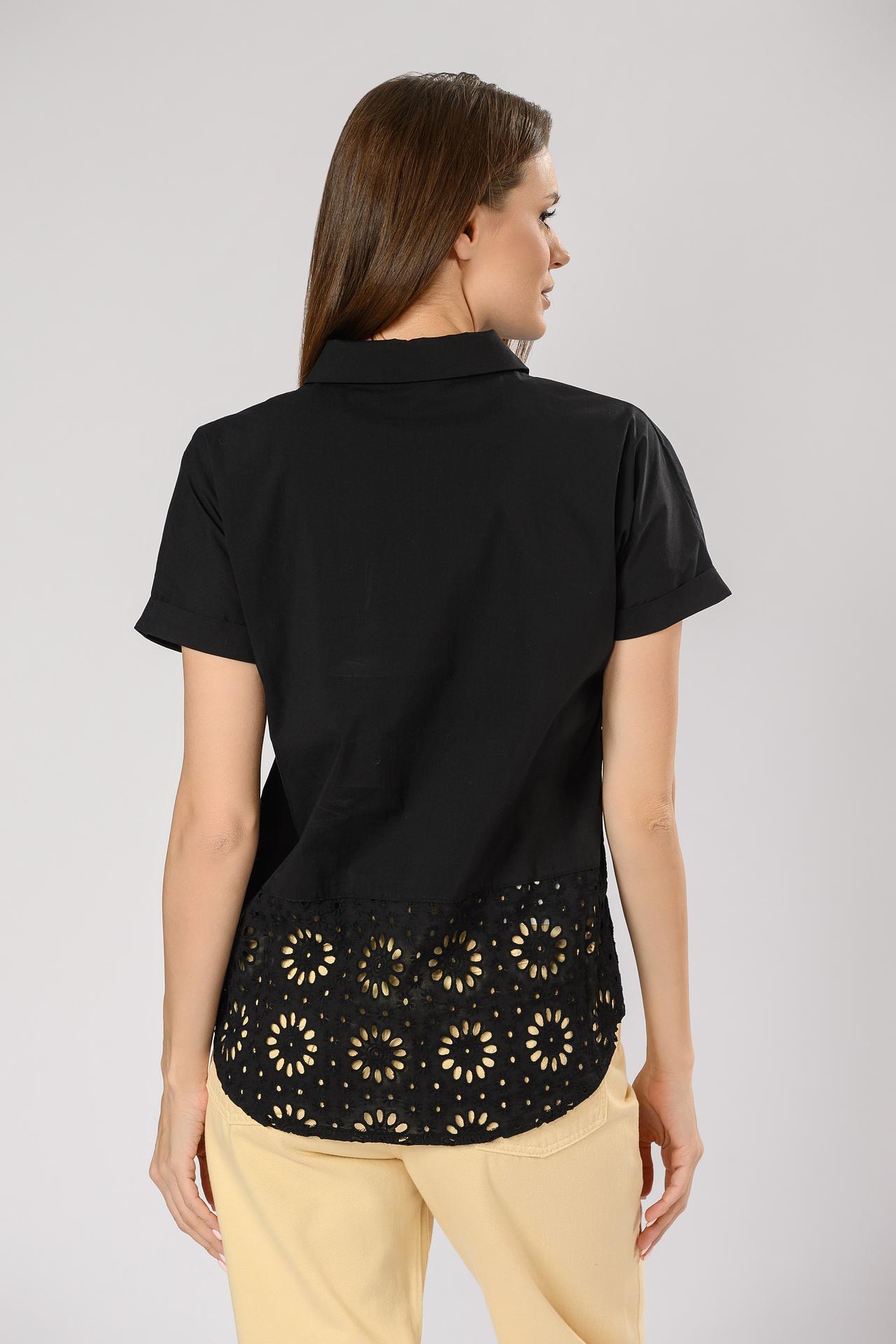 Особое очарование блузе придает ажурная вставка по низу, добавляющая легкости и изысканности. Легкая ткань обеспечивает комфорт в течение всего дня, а прямой силуэт подчеркивает достоинства фигуры, не сковывая движений. Эта женская блуза станет незаменимой вещью в вашем гардеробе, позволяя создавать множество модных комбинаций.
